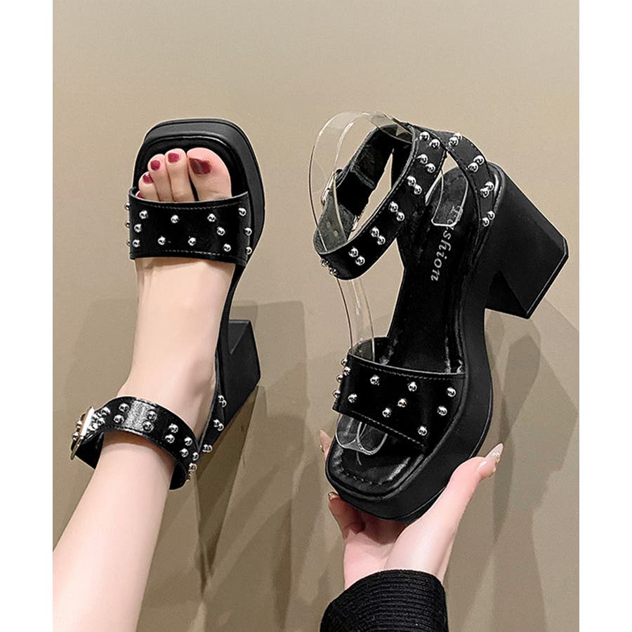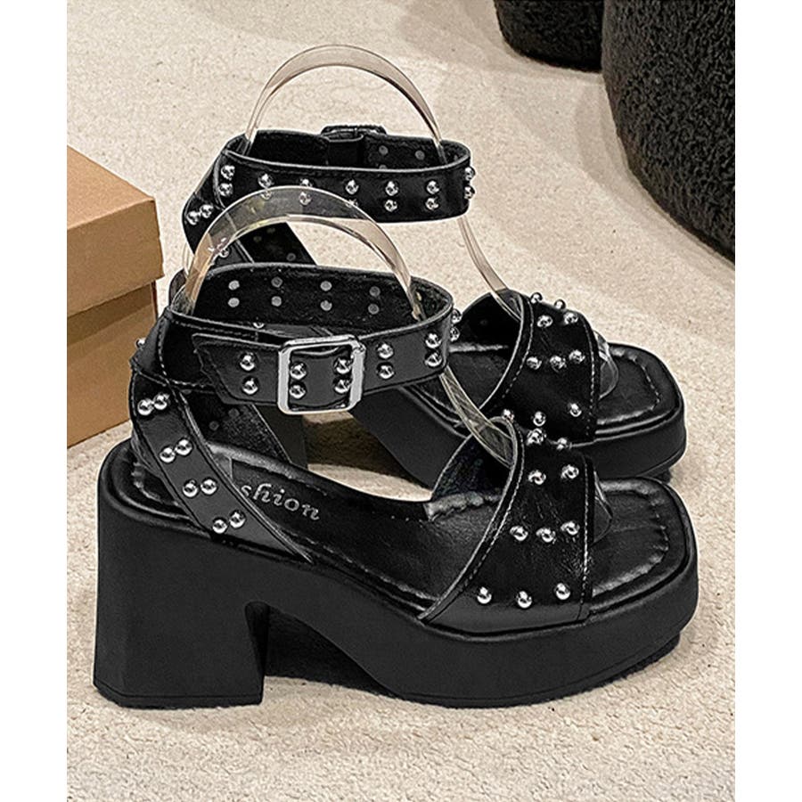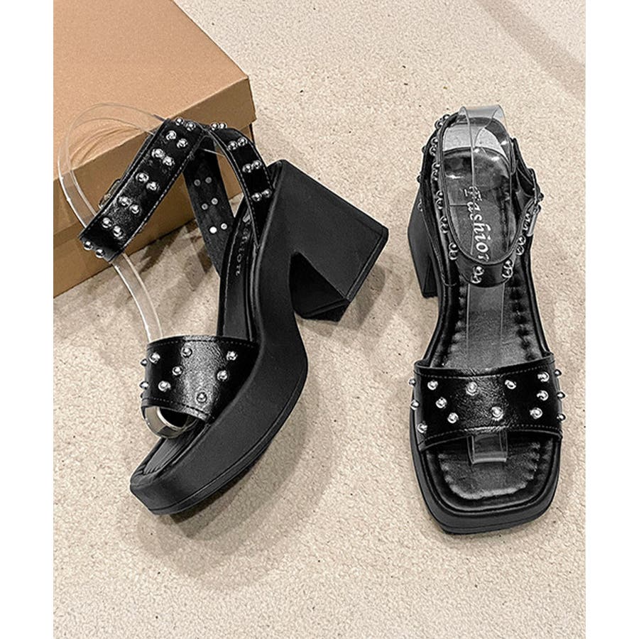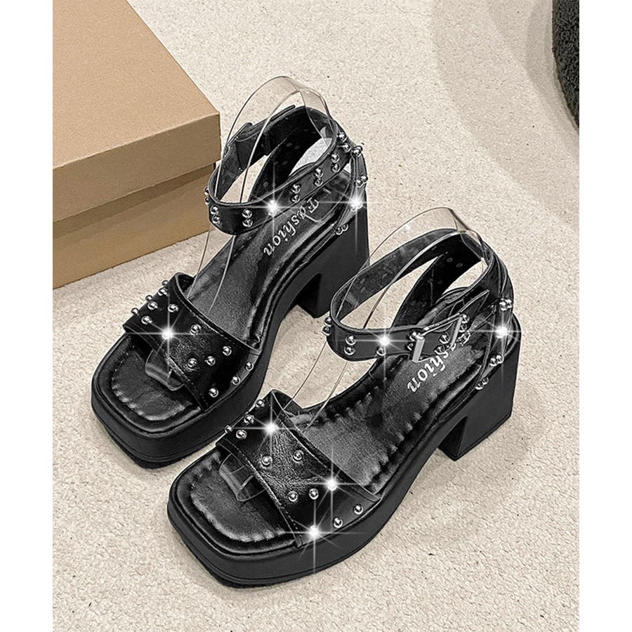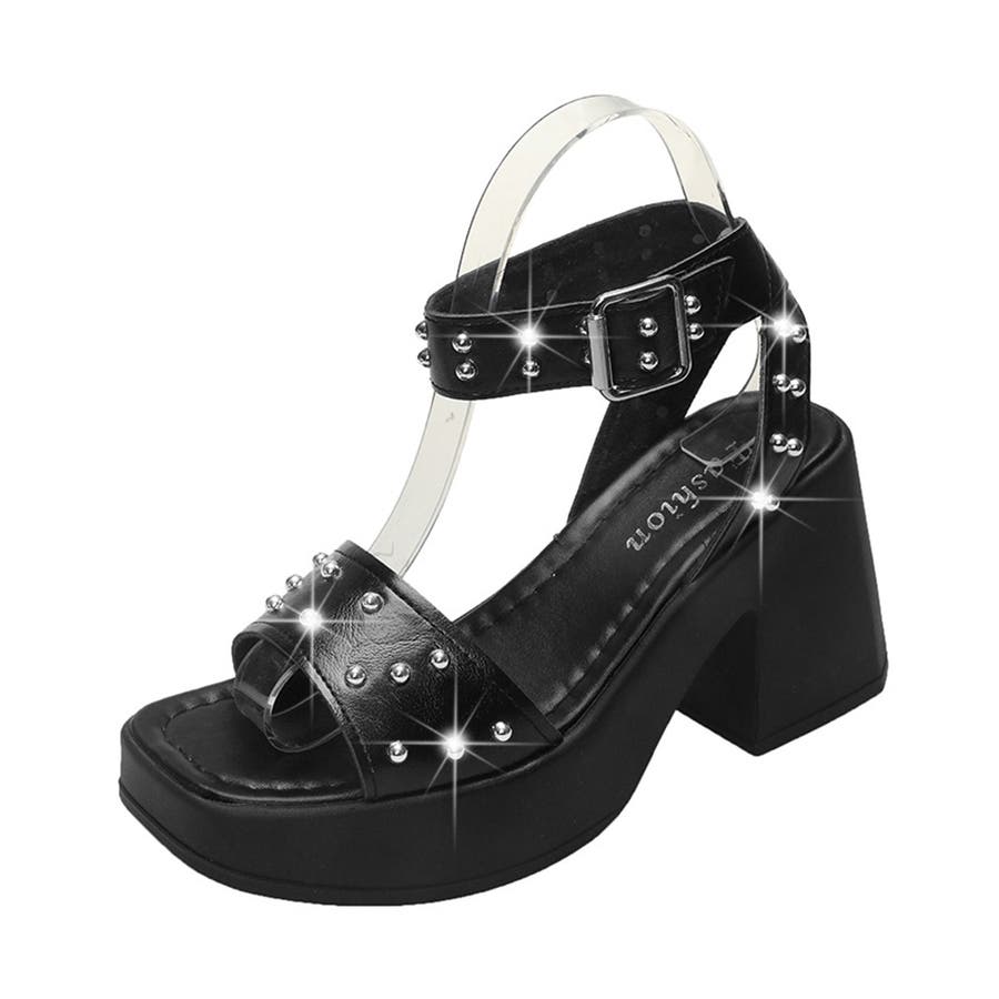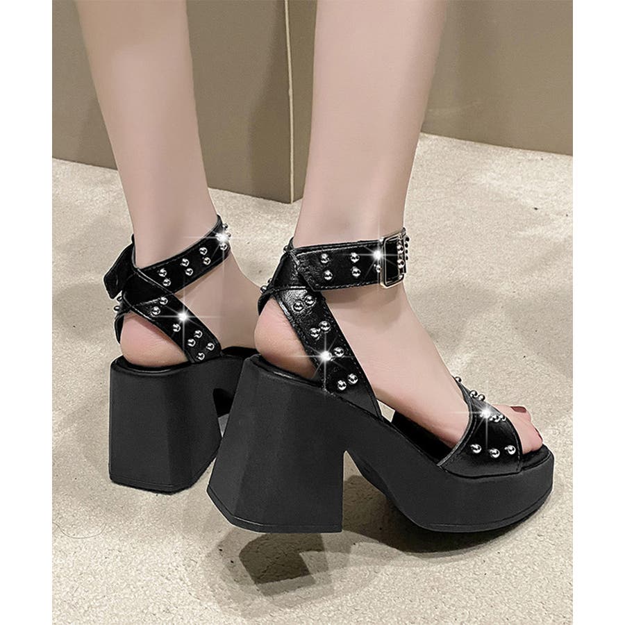 スタッズ 厚底サンダル チャンキーヒール