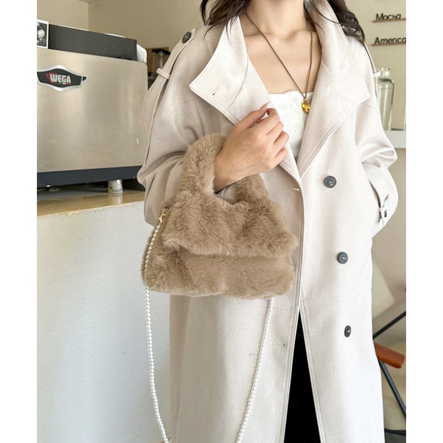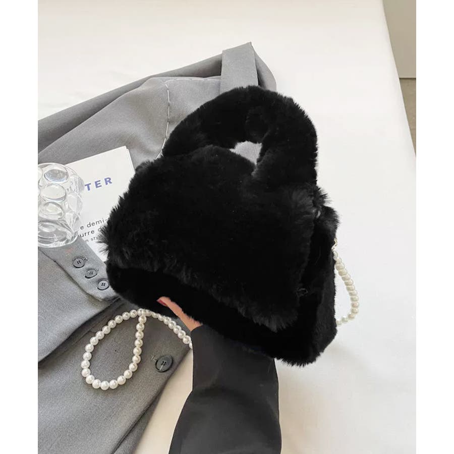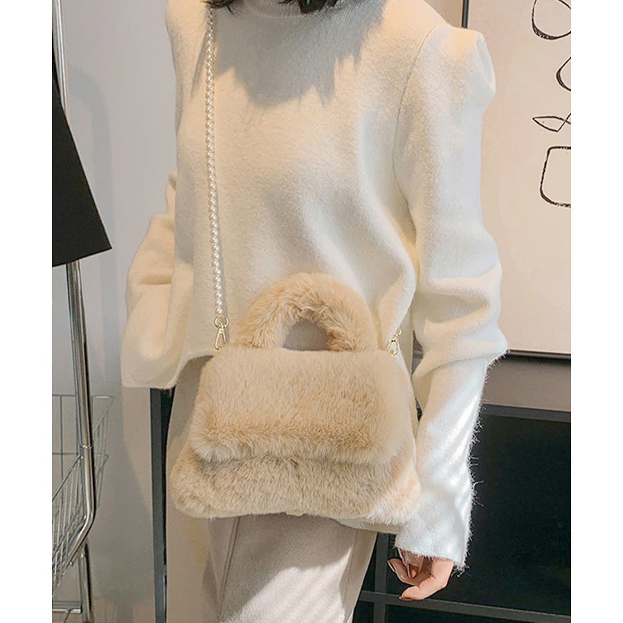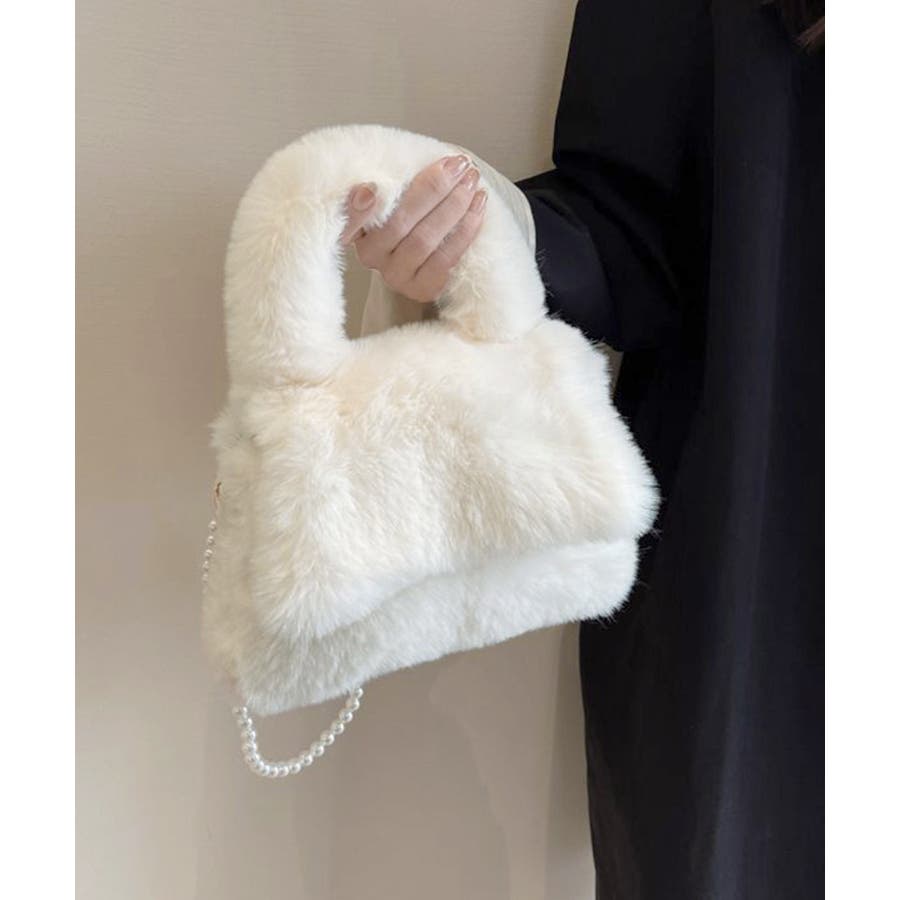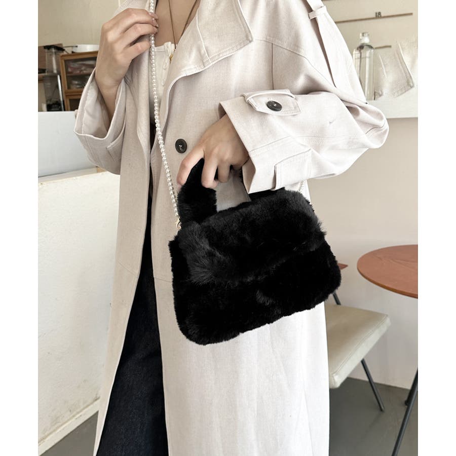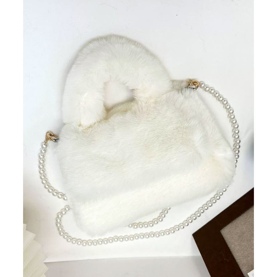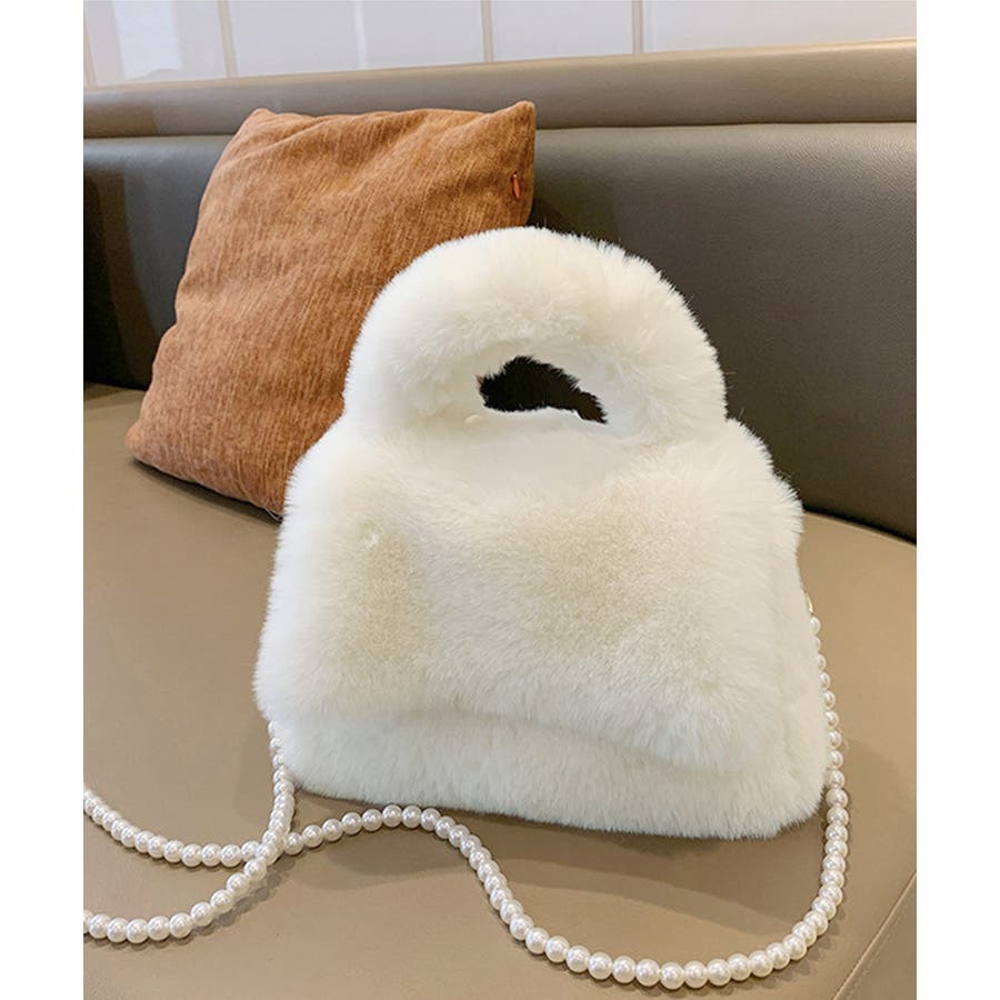 ファーショルダーバッグ パールチェーン鞄