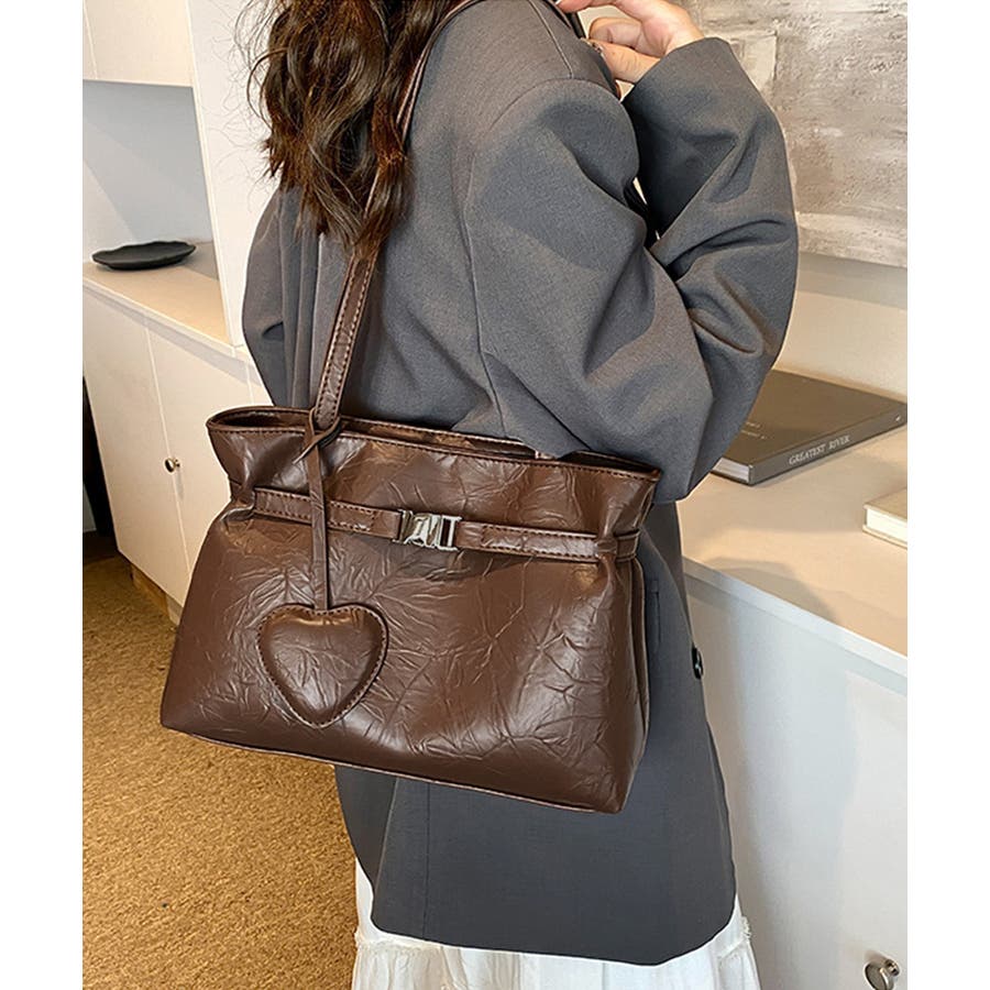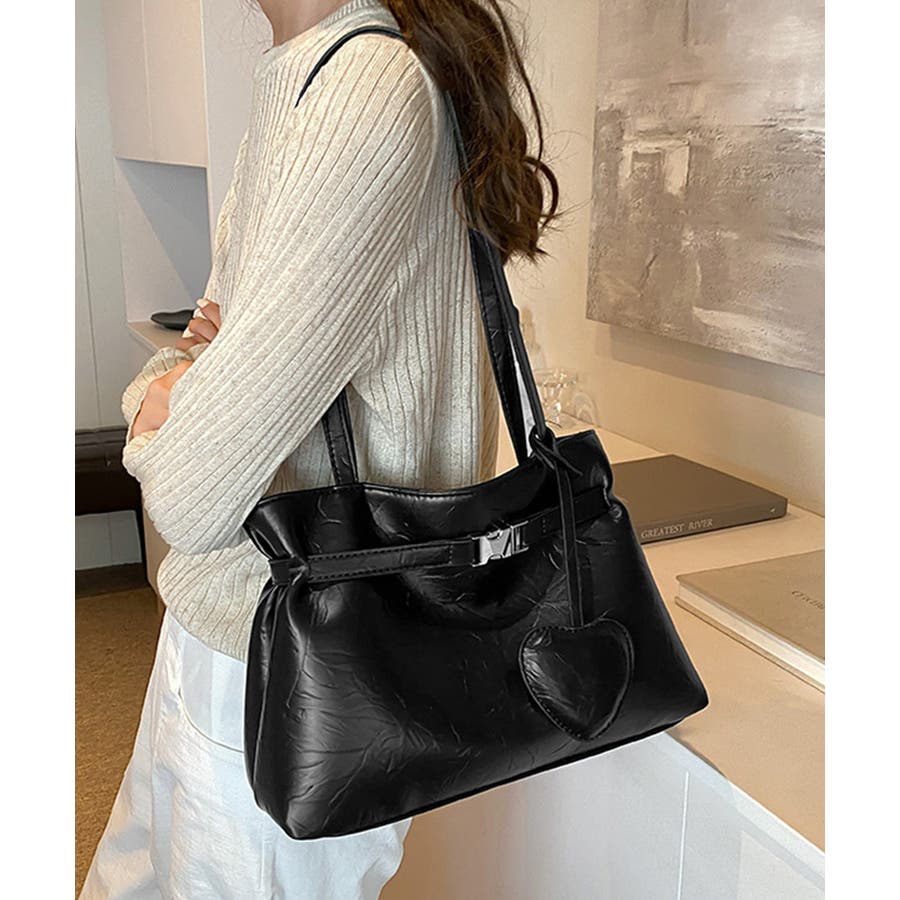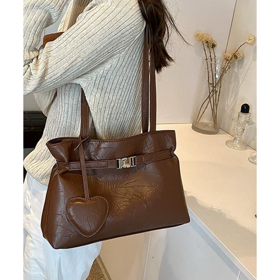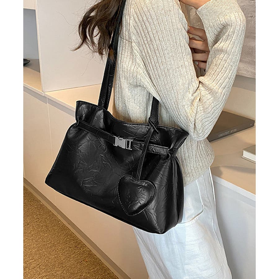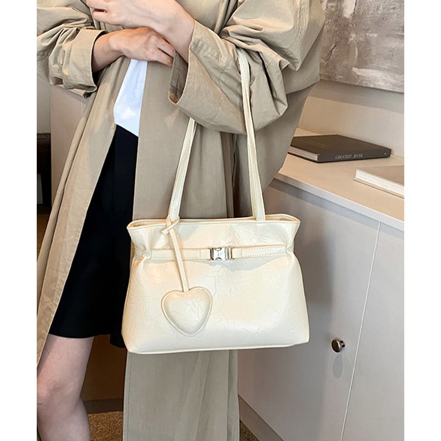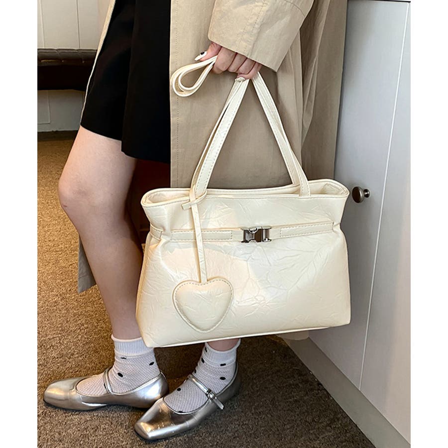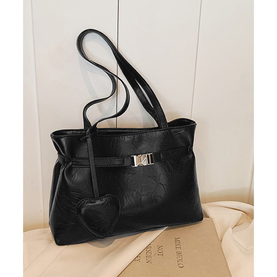 トートバッグ ハートチャーム付き肩掛け鞄
