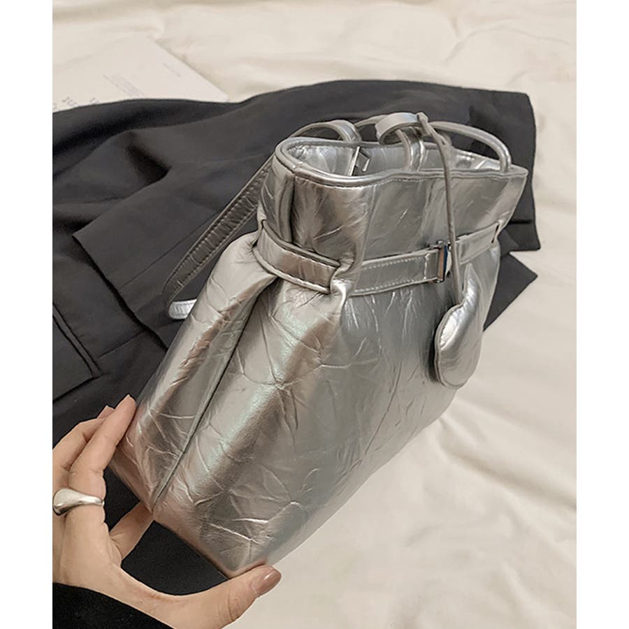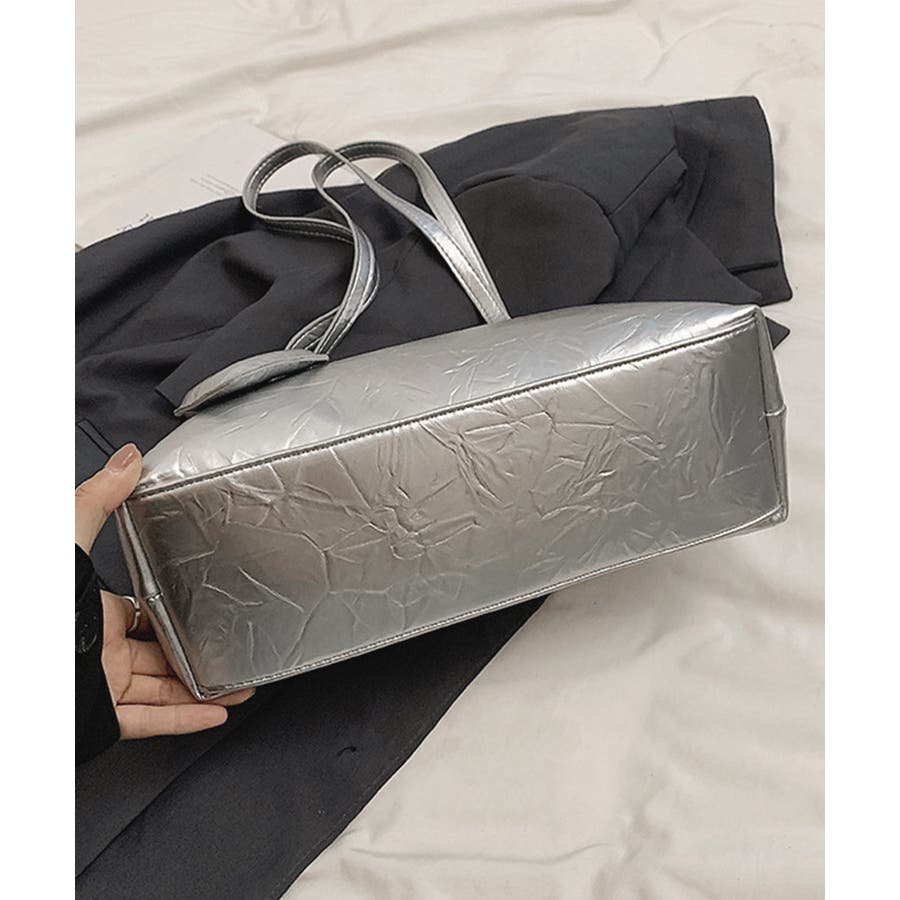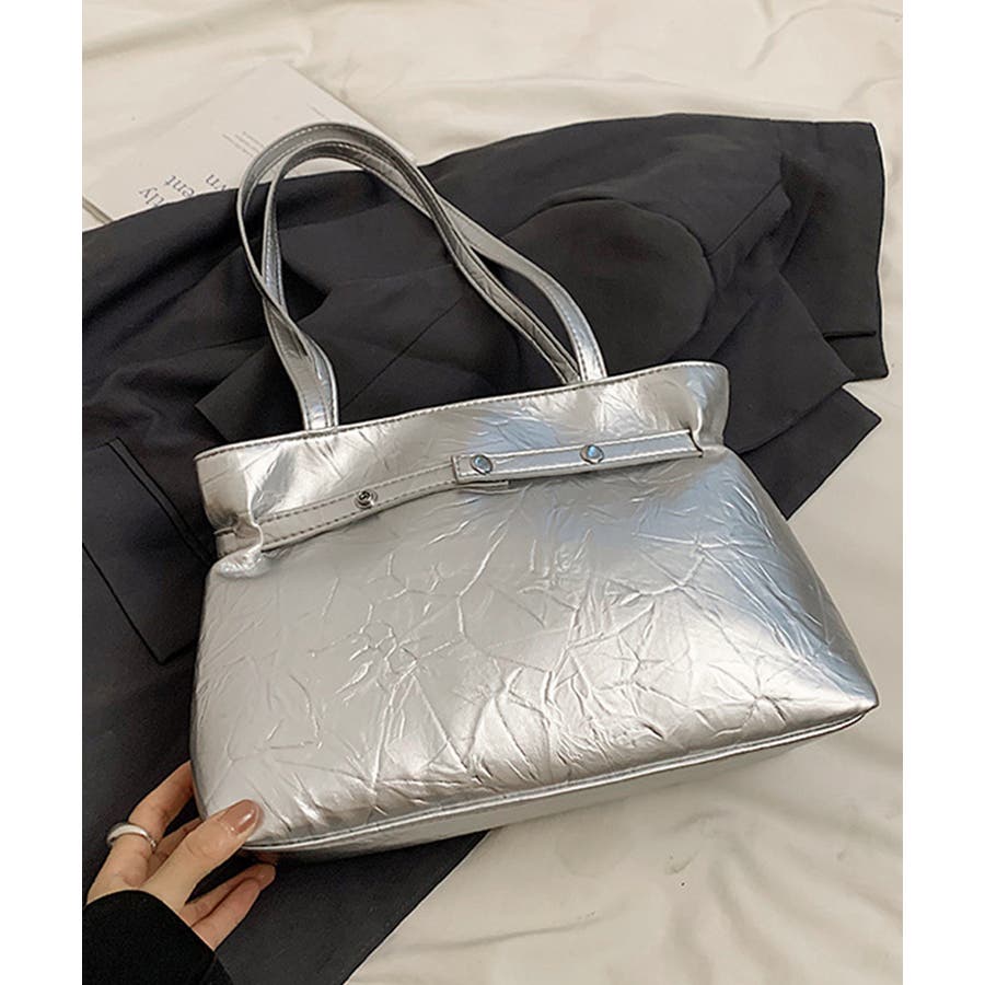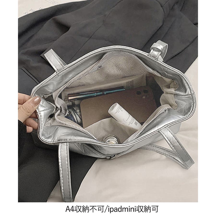 シルバーバッグ人気 メタリックトート おしゃれ 高見え鞄