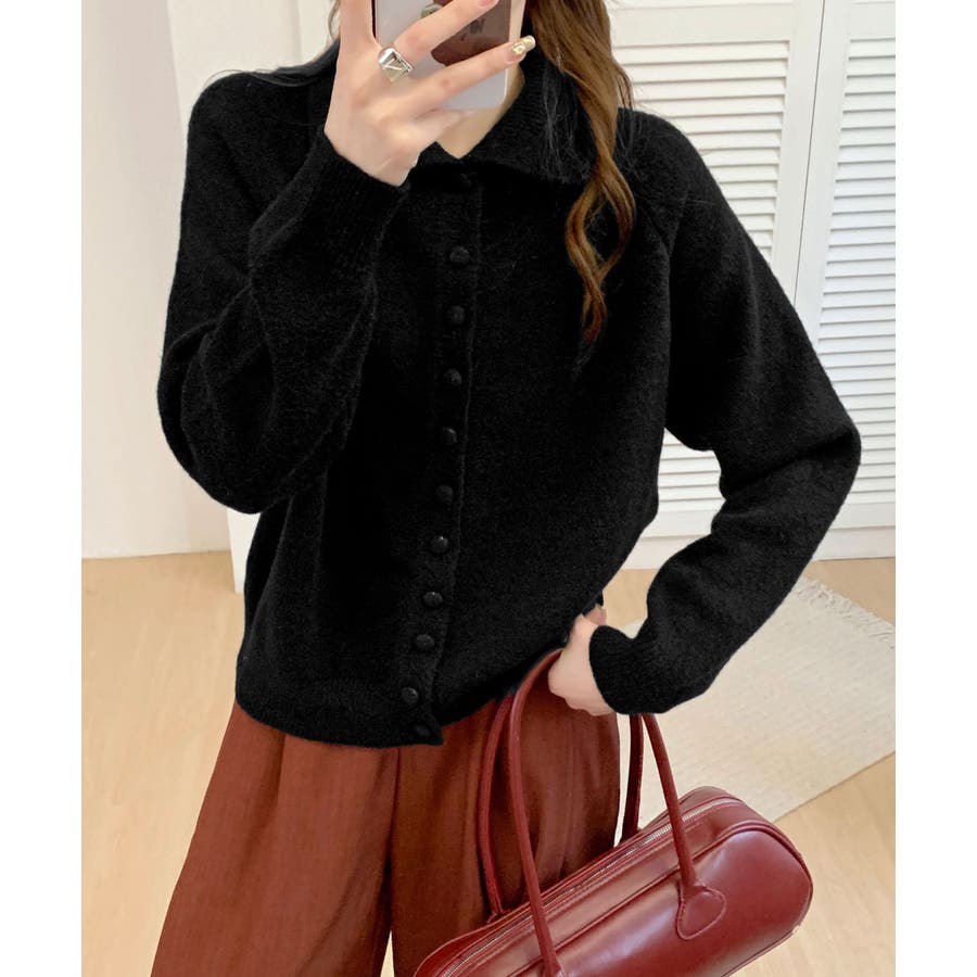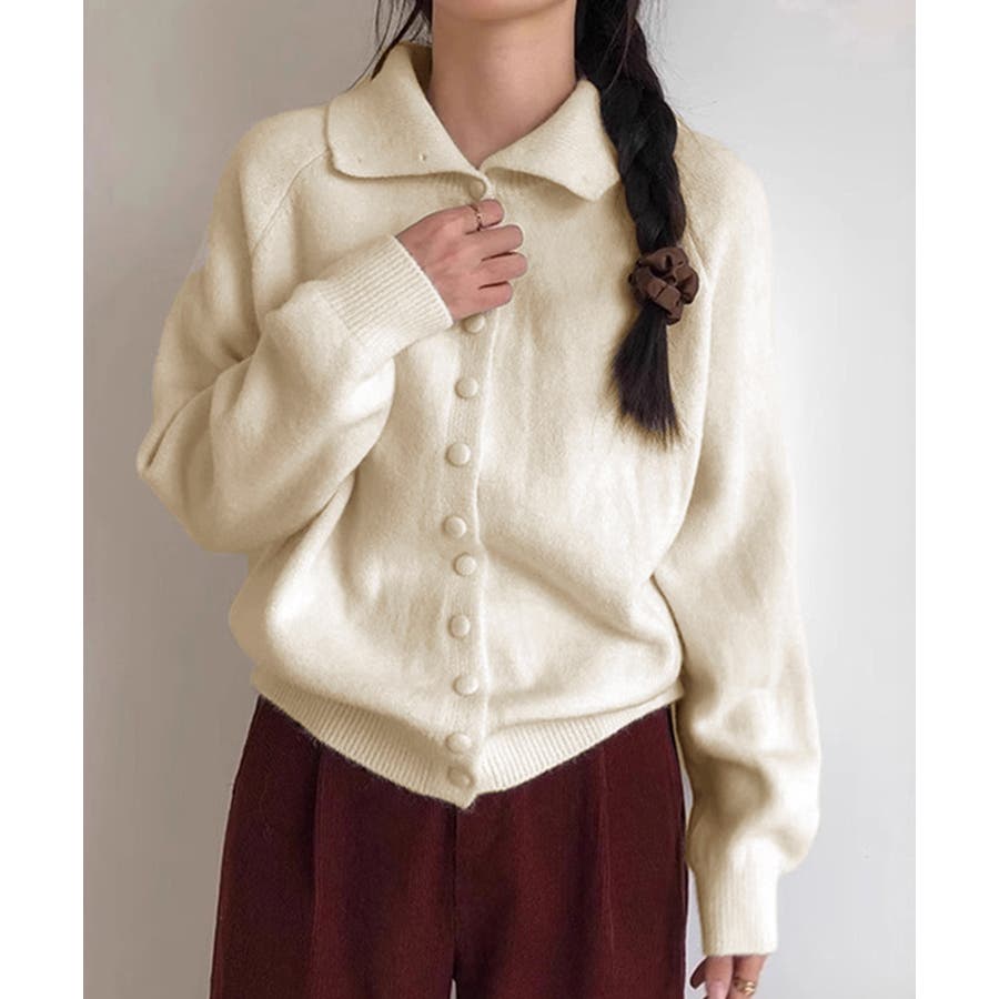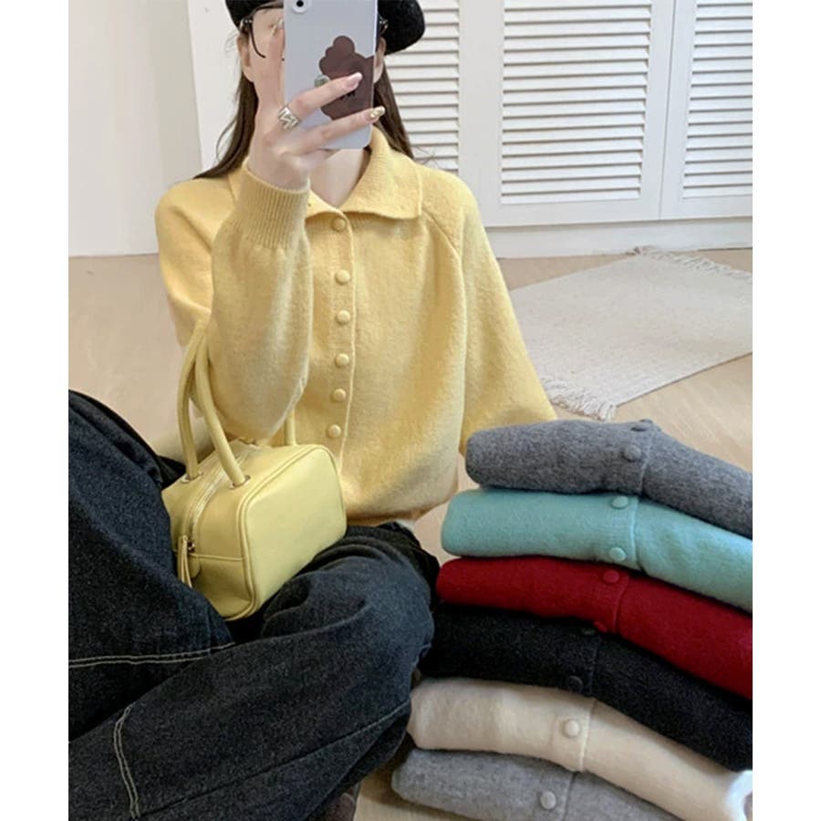 着やせ羽織り韓国風 前開きニット 無地 あったか長袖ニット