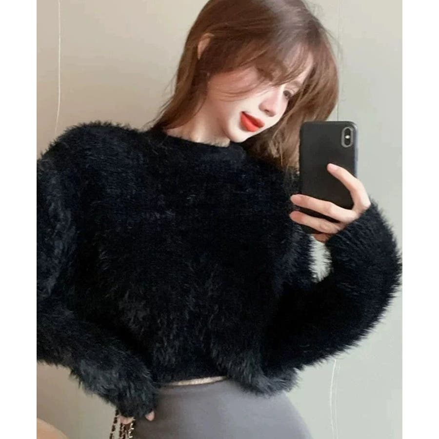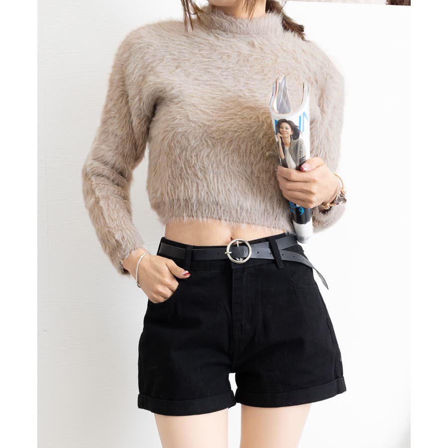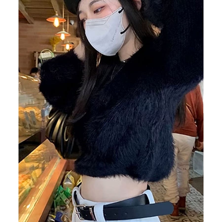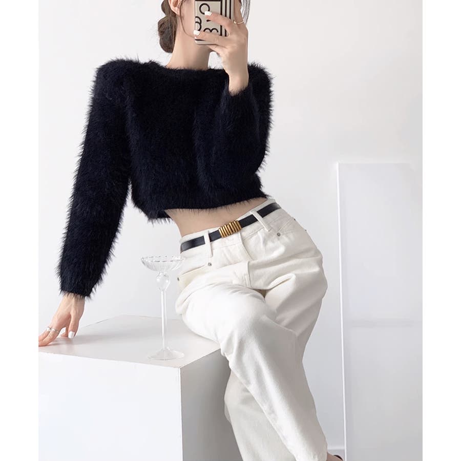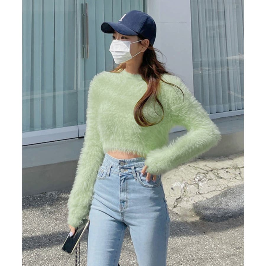 柔らかいニット女子 ふわふわ暖かニット クロップド丈ニット