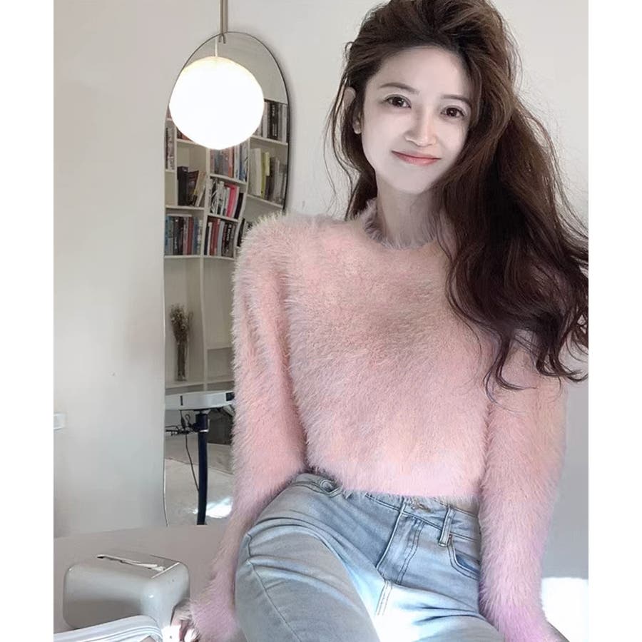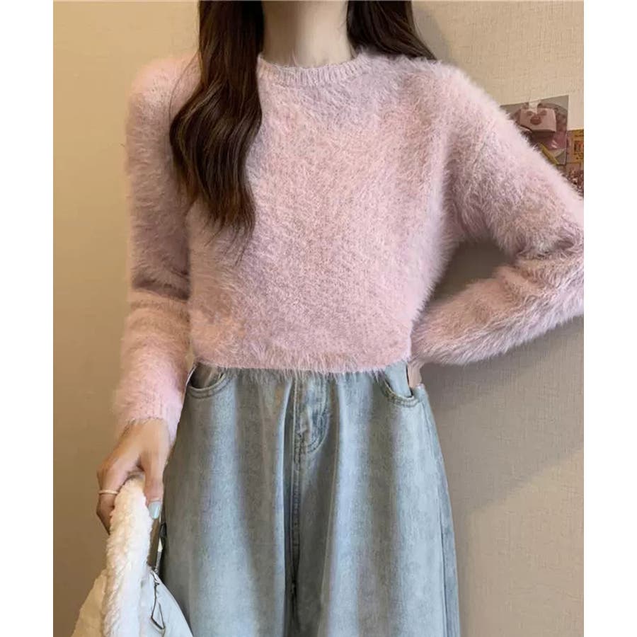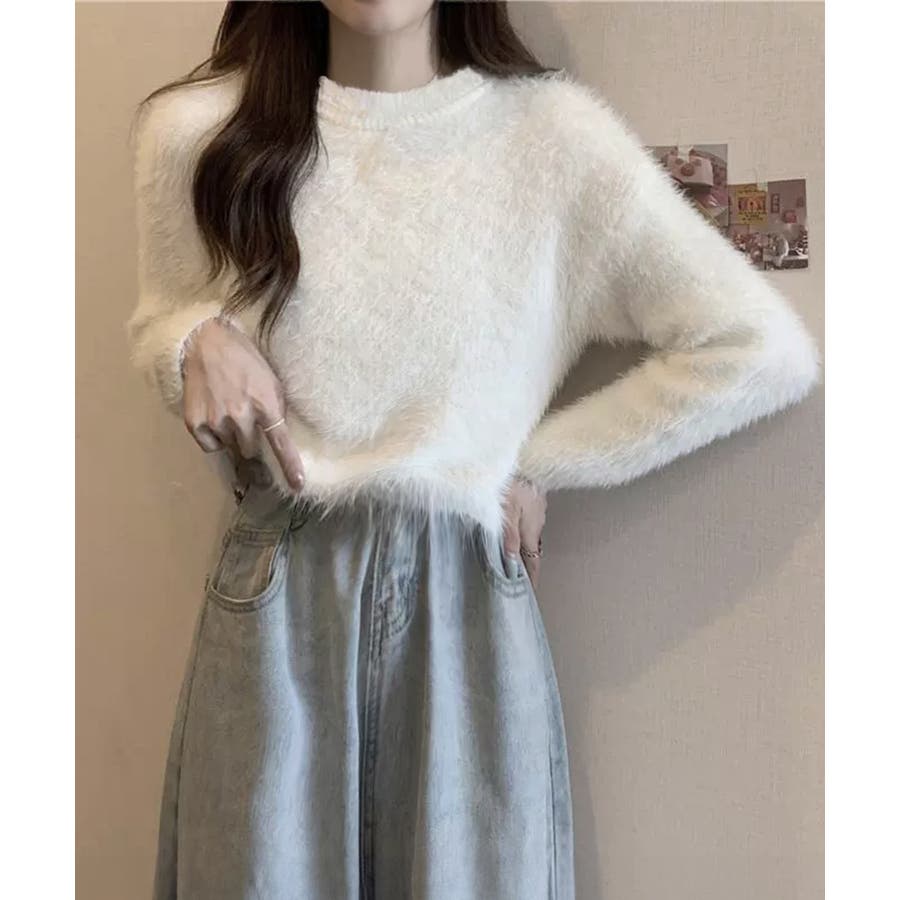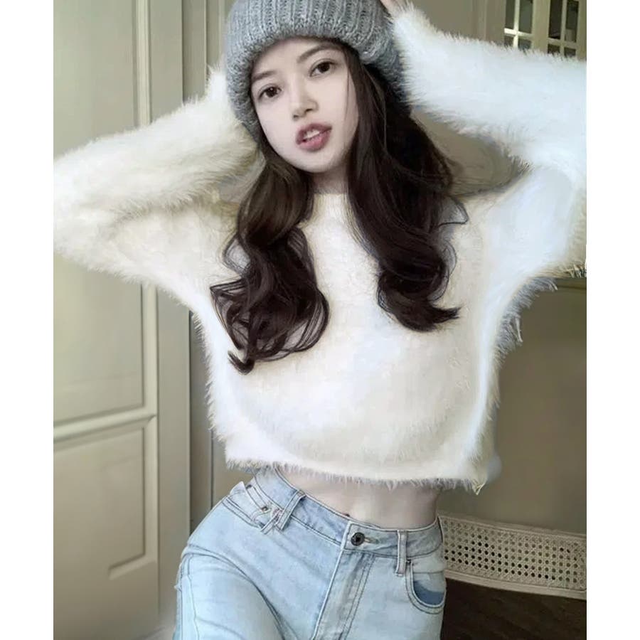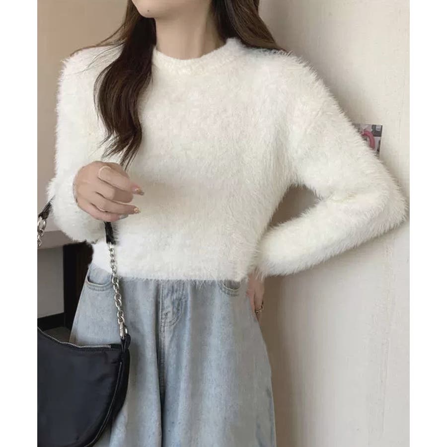 柔らかいニット女子 ふわふわ暖かニット クロップド丈ニット
