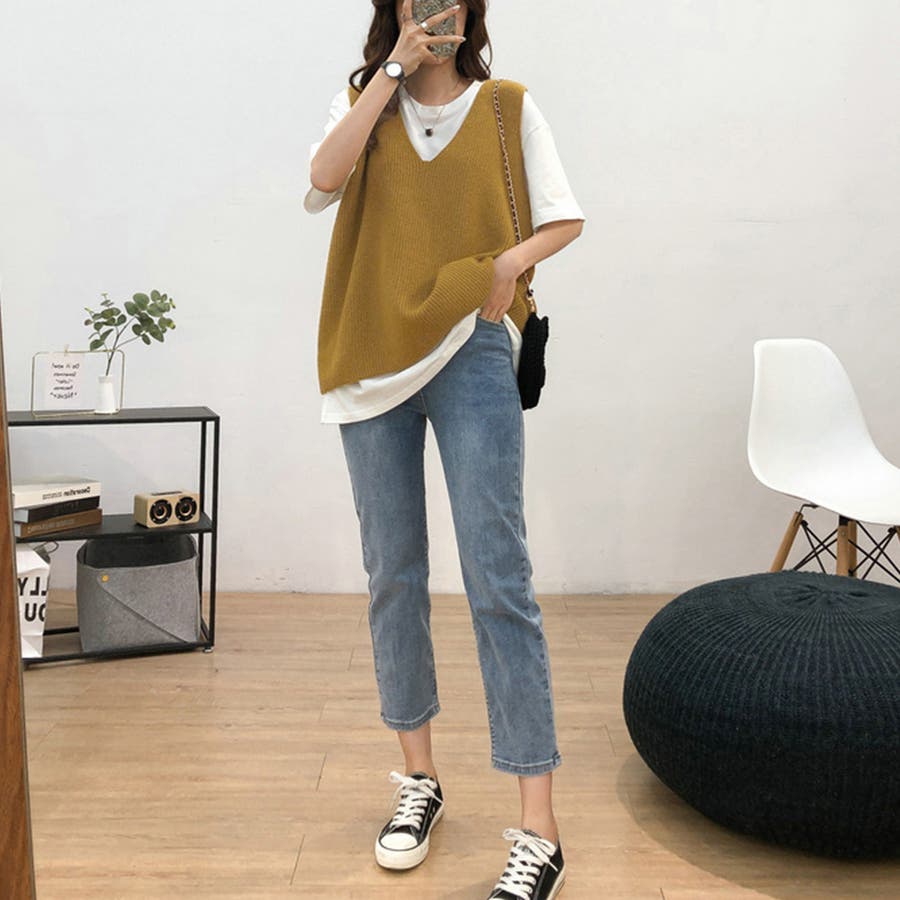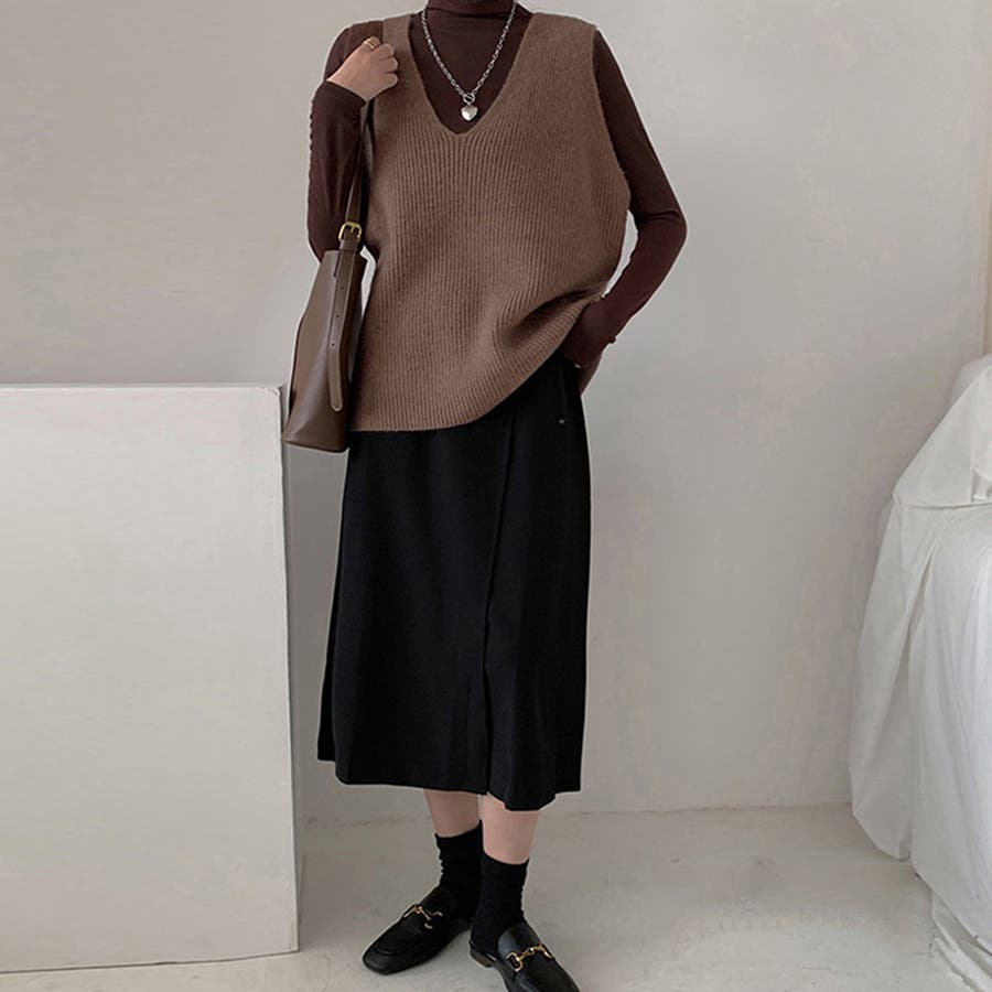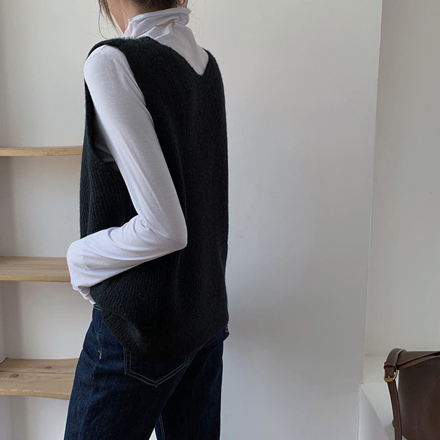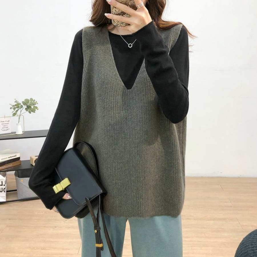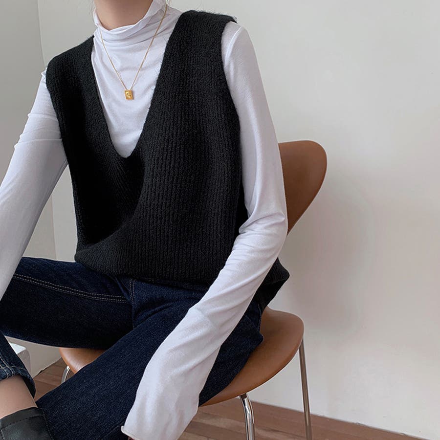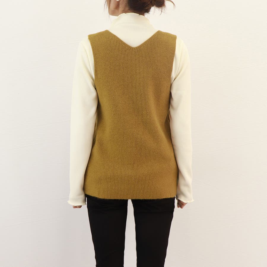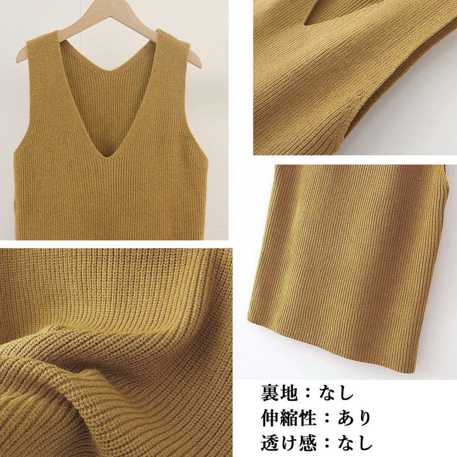リブニットベスト レディース vネック