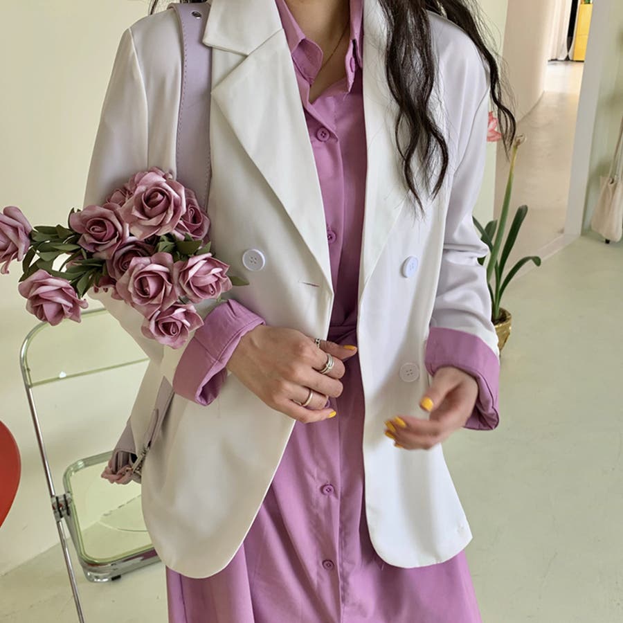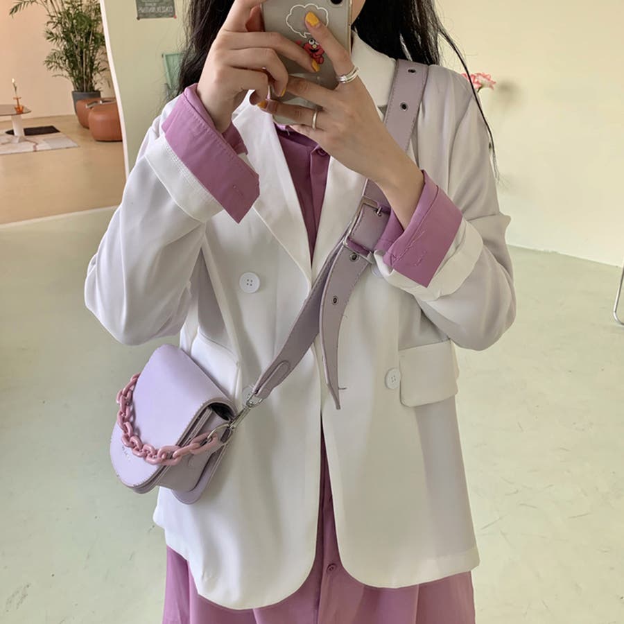 春秋スーツOL無地 サマージャケット白 冷房対策服ゆったり