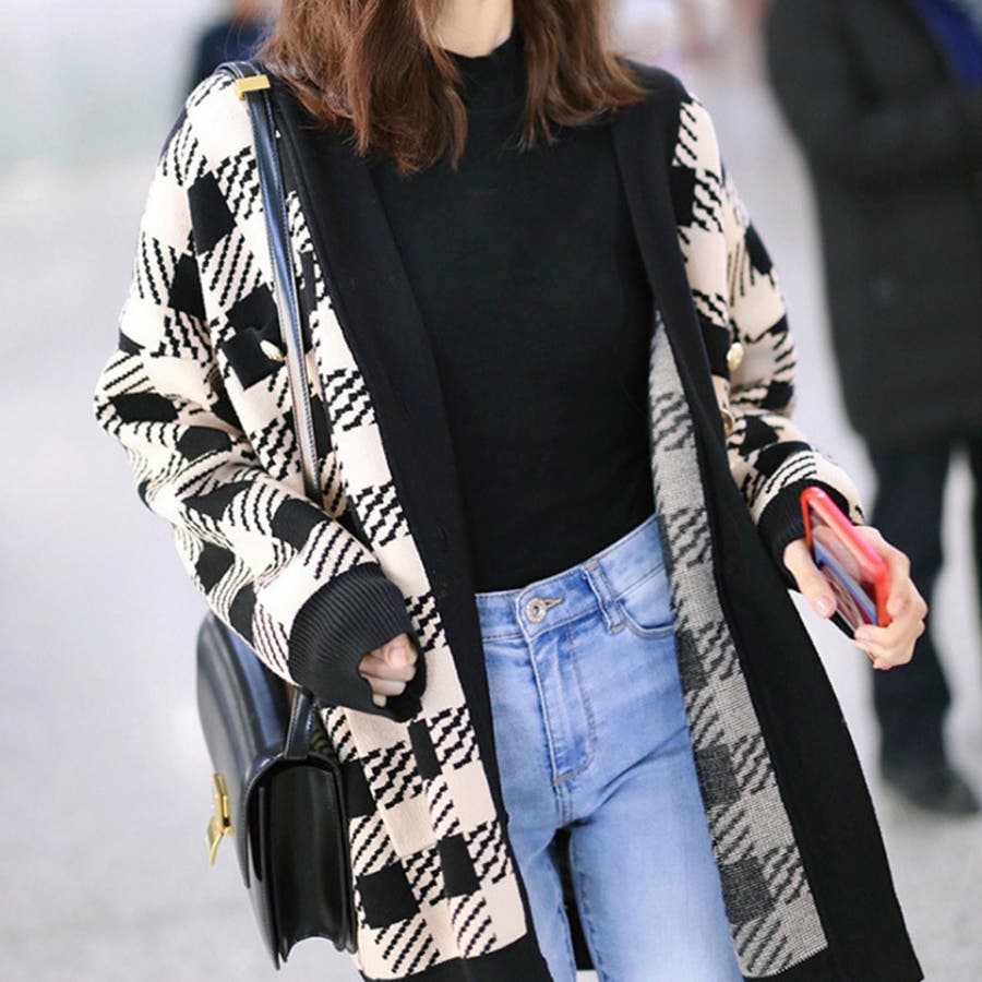 ロングシーズン取り入れることができるチェック柄ニットカーディガン