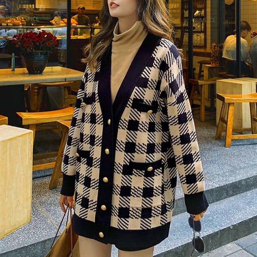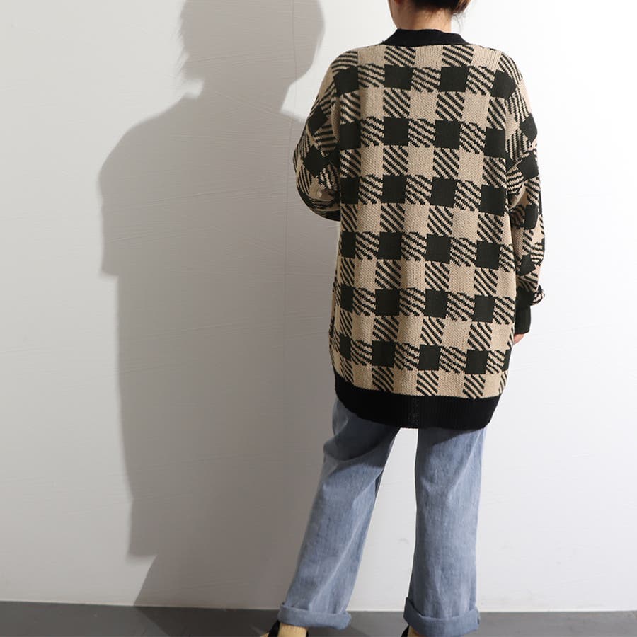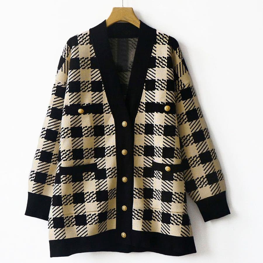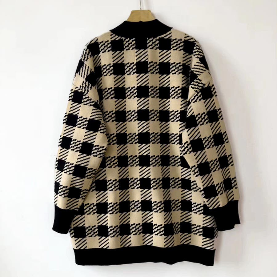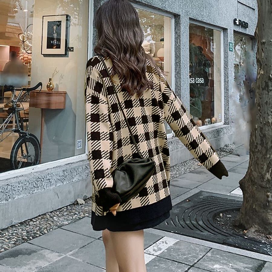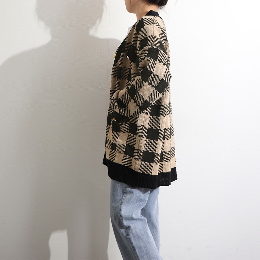 ニット カーディガン チェック柄