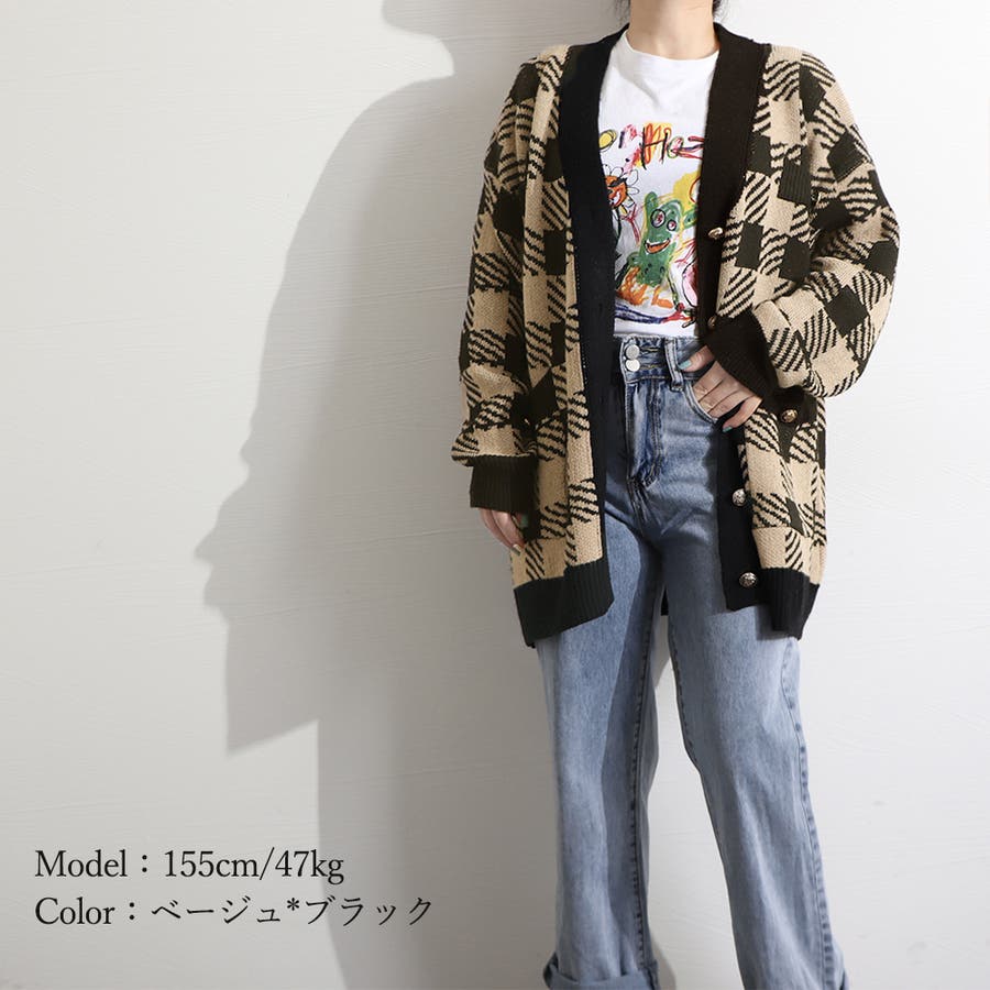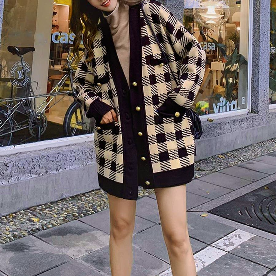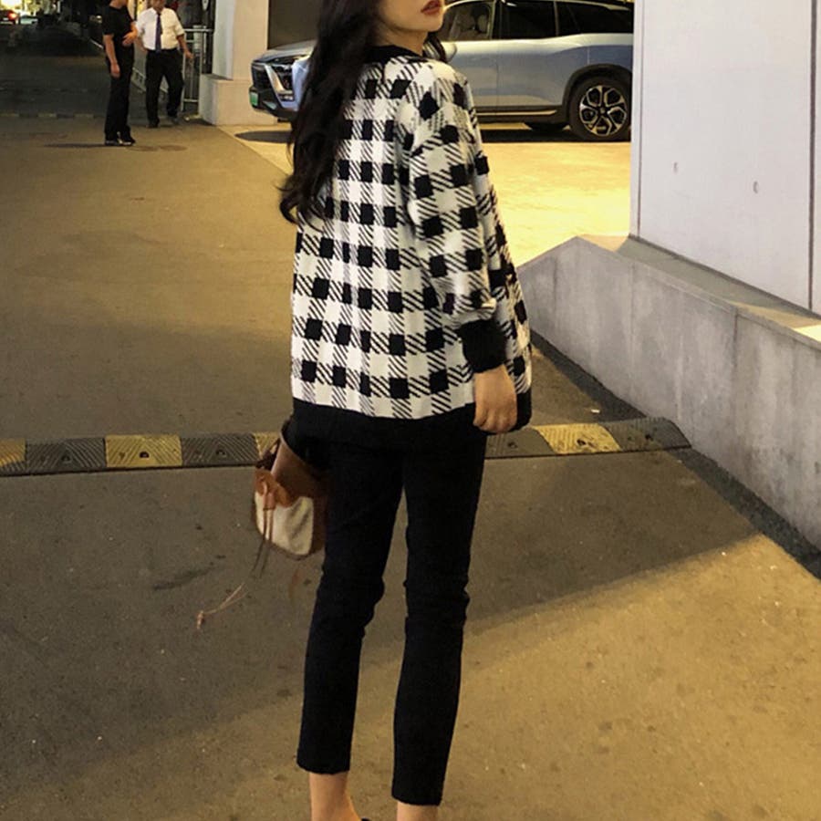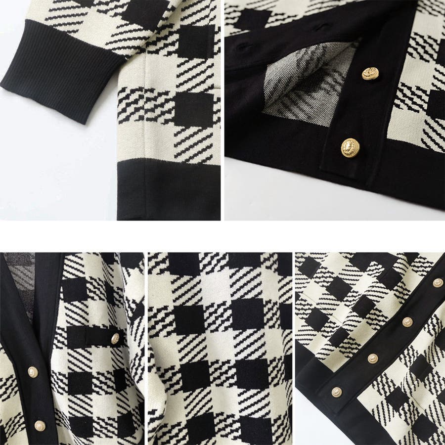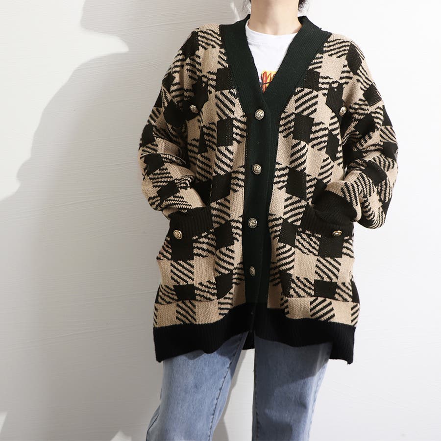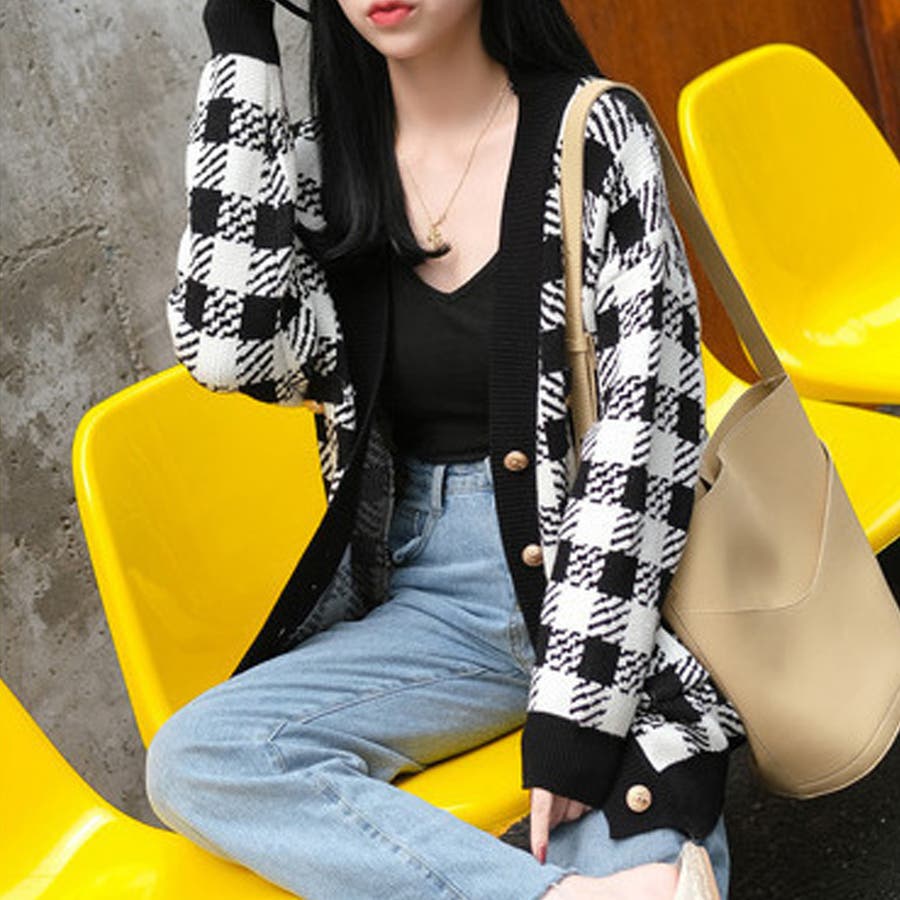 ニット カーディガン チェック柄