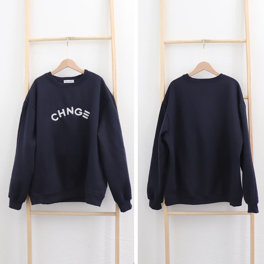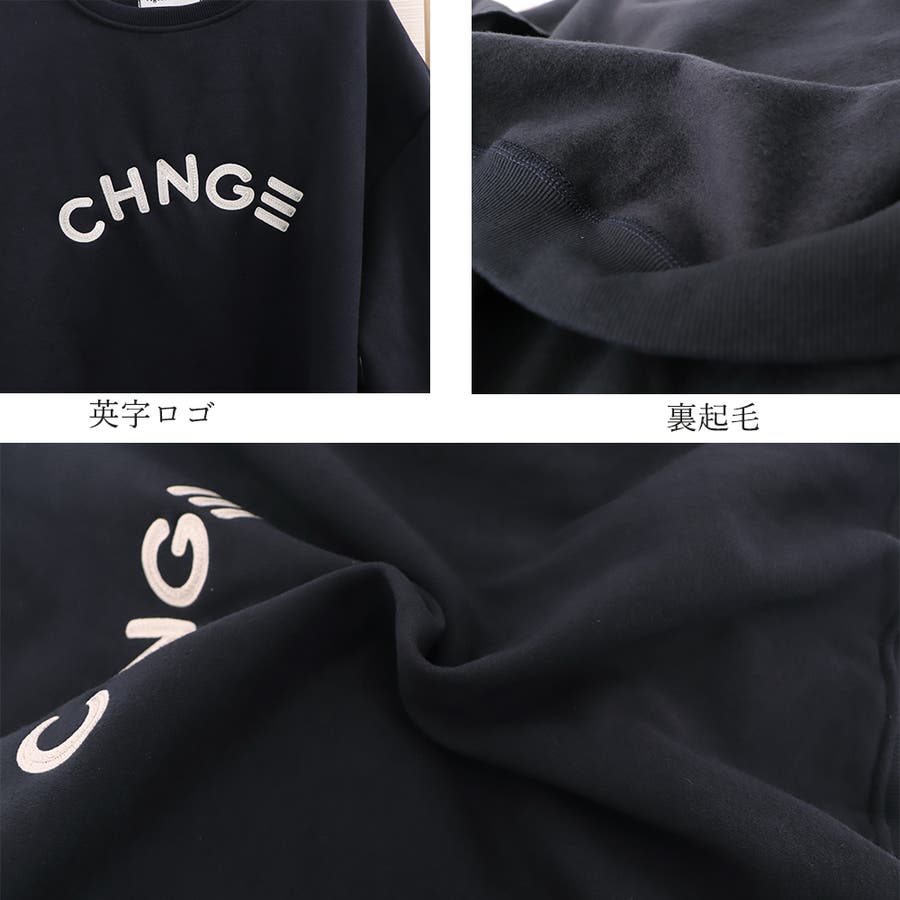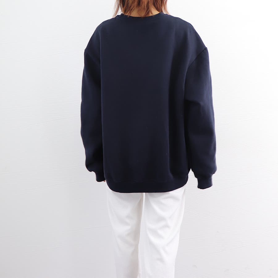 スポーティーでカジュアルな雰囲気の裏起毛ロゴスウェット