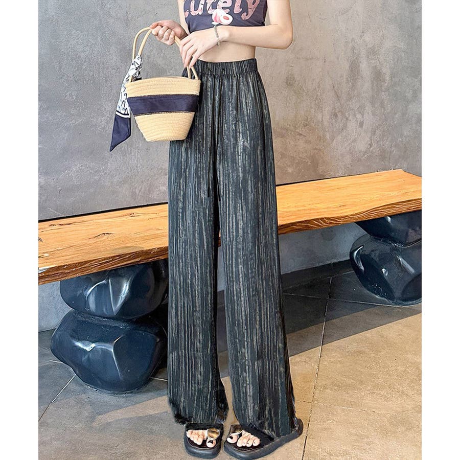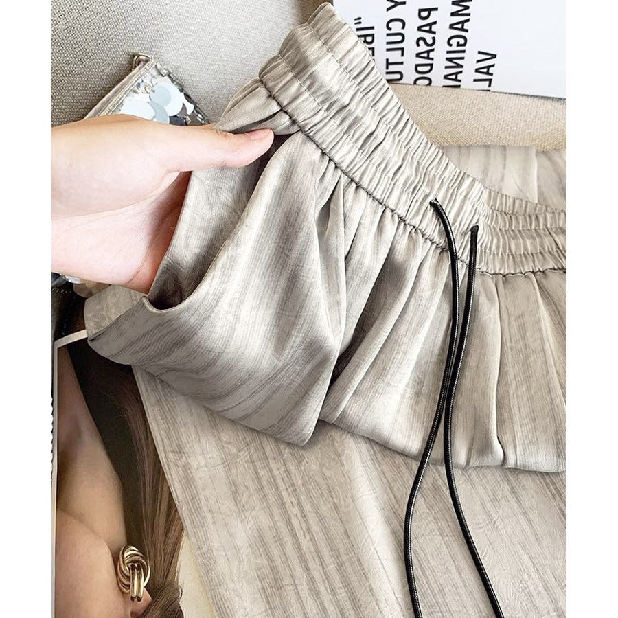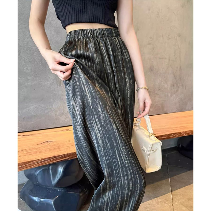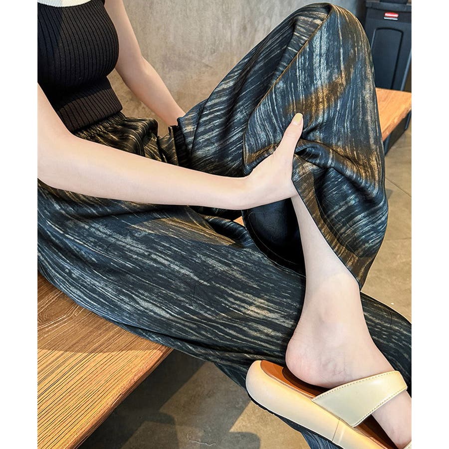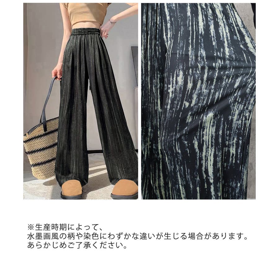水墨風ワイドパンツ 薄手ドレープパンツ夏