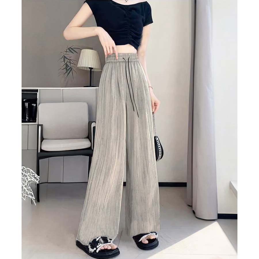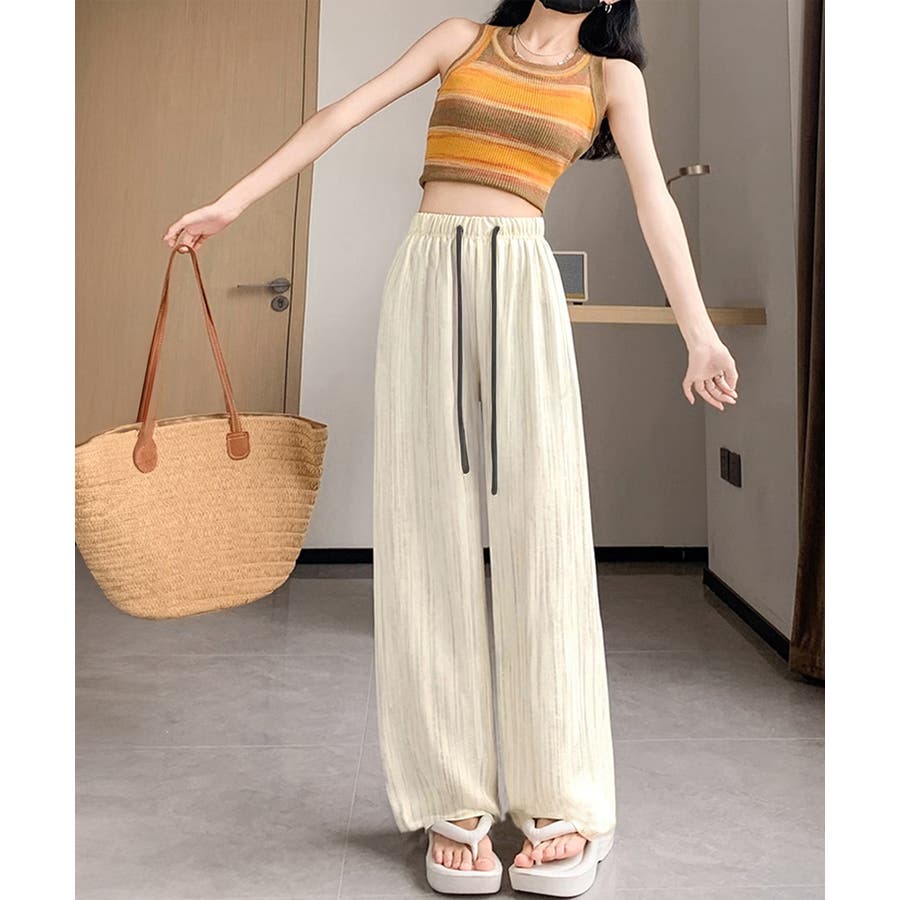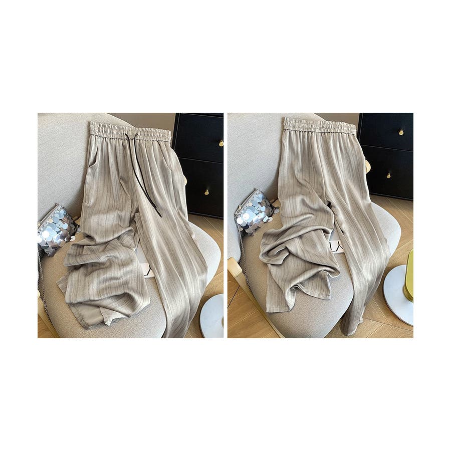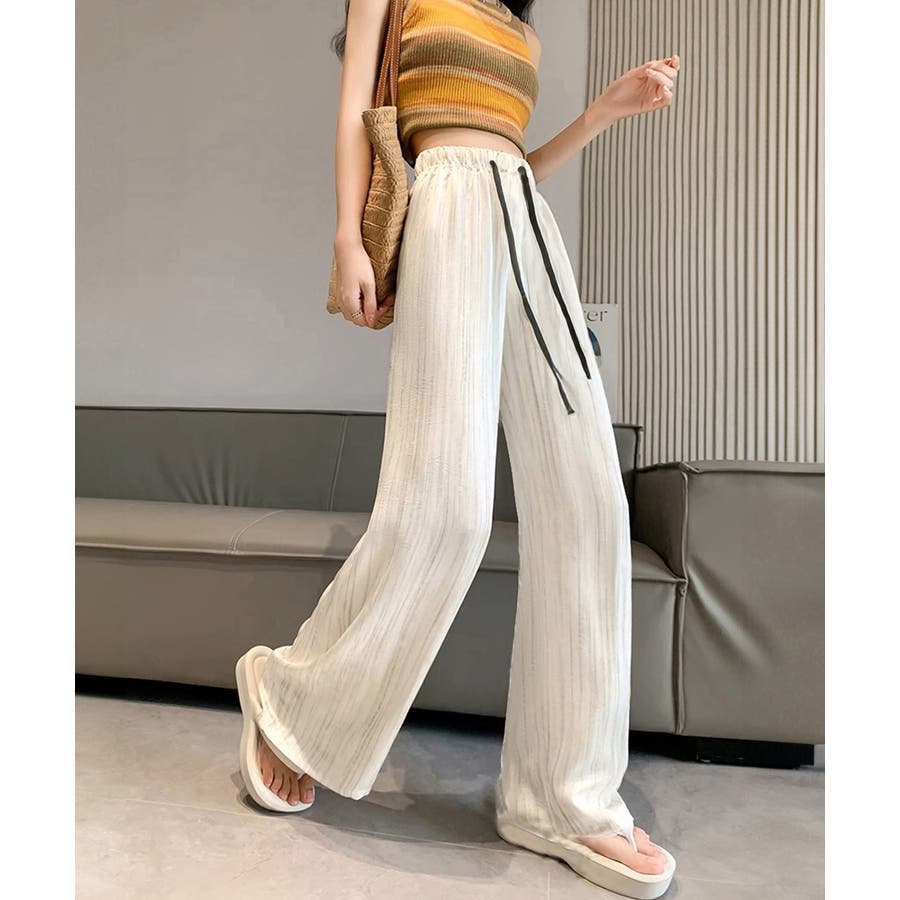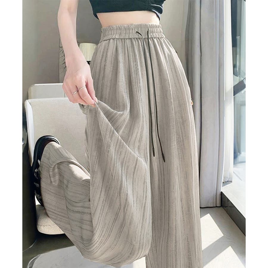 水墨風ワイドパンツ 薄手ドレープパンツ夏