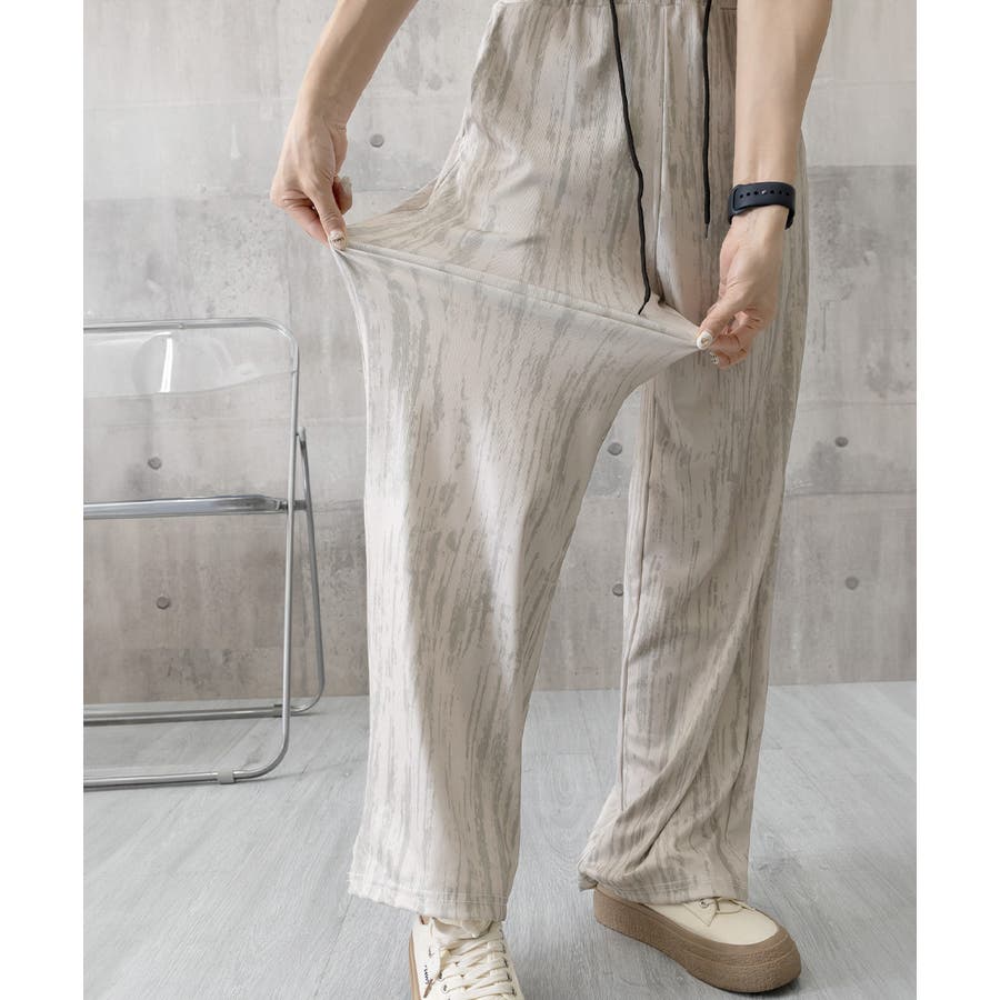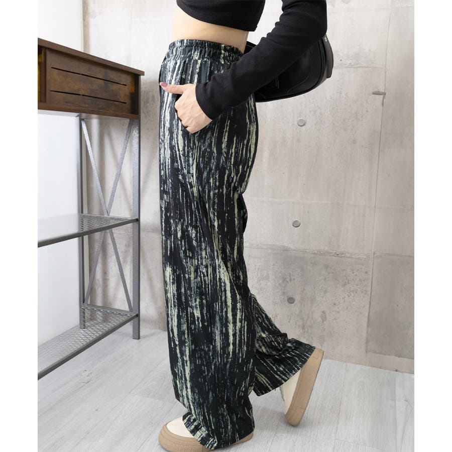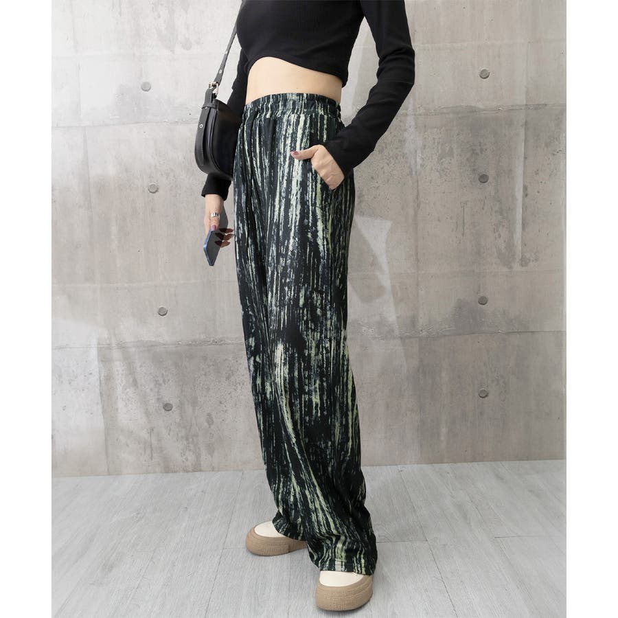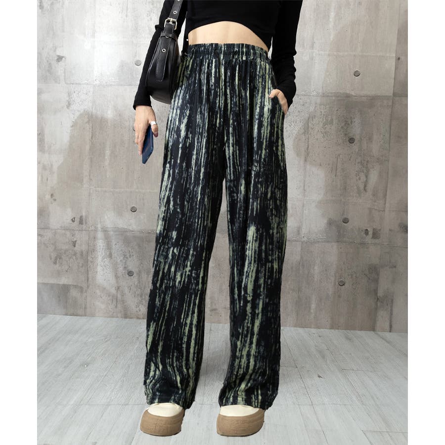 軽やかでゆったりとしたシルエットが魅力の墨流し柄ワイドパンツ。