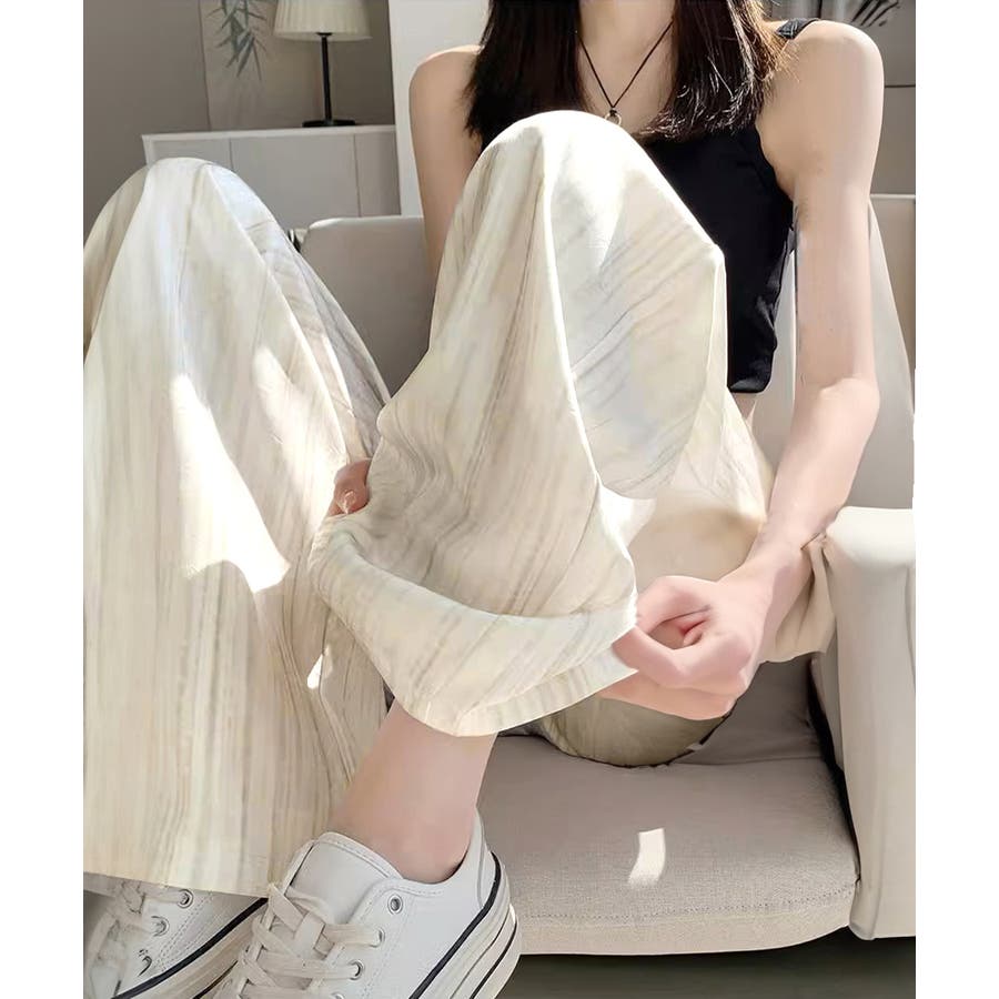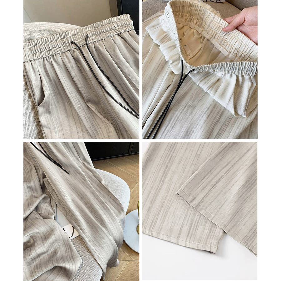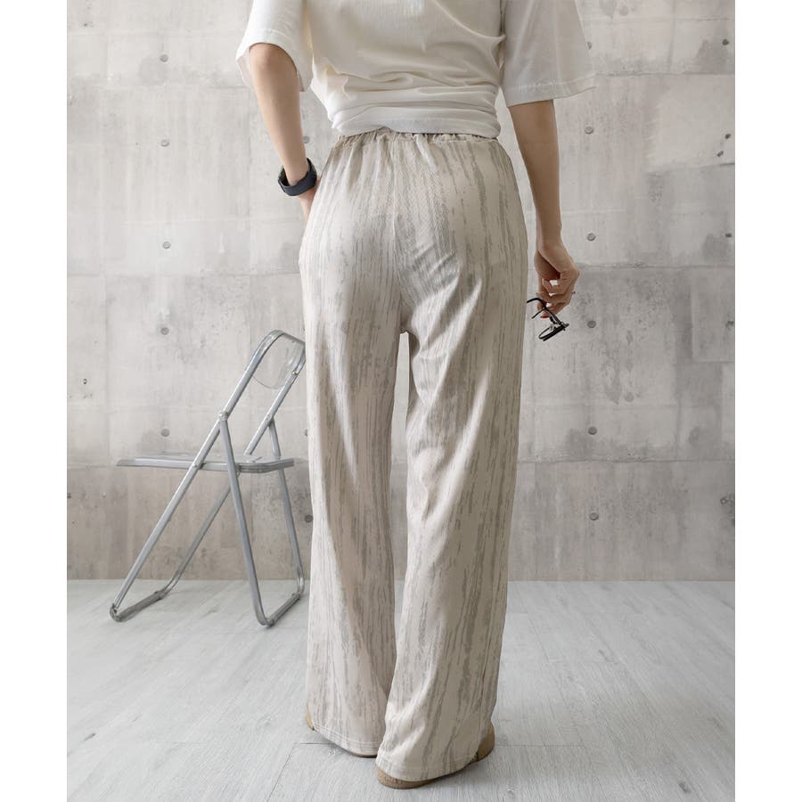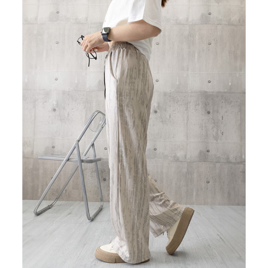 軽やかでゆったりとしたシルエットが魅力の墨流し柄ワイドパンツ。