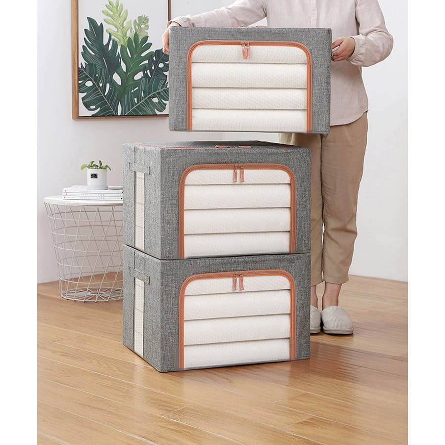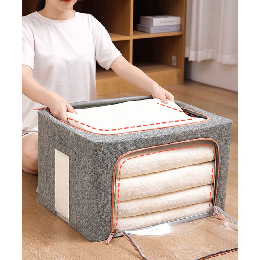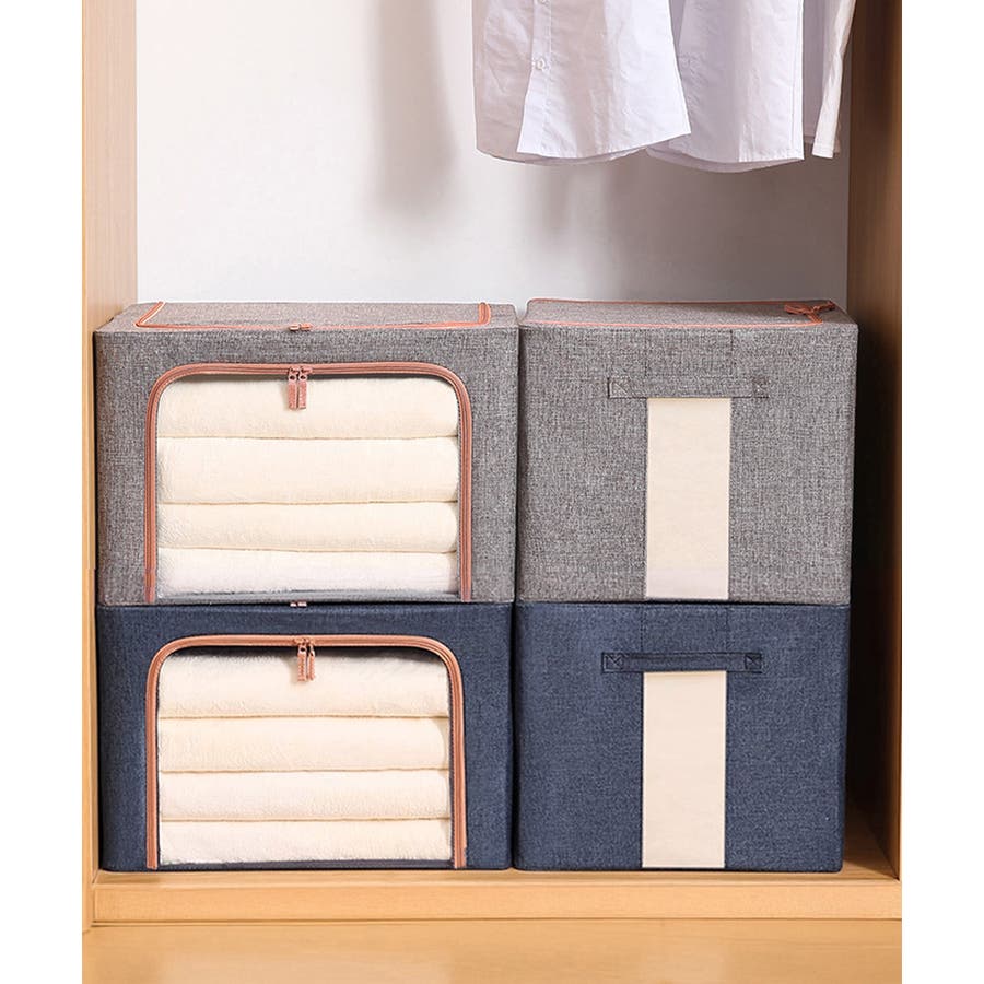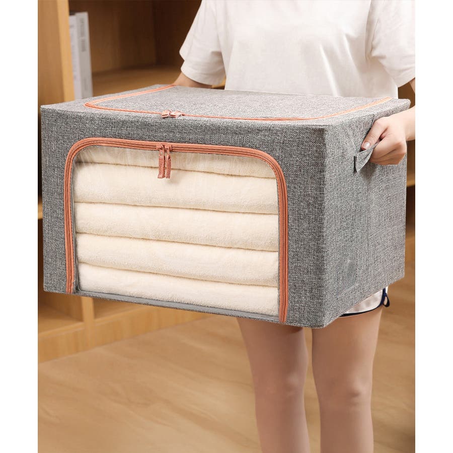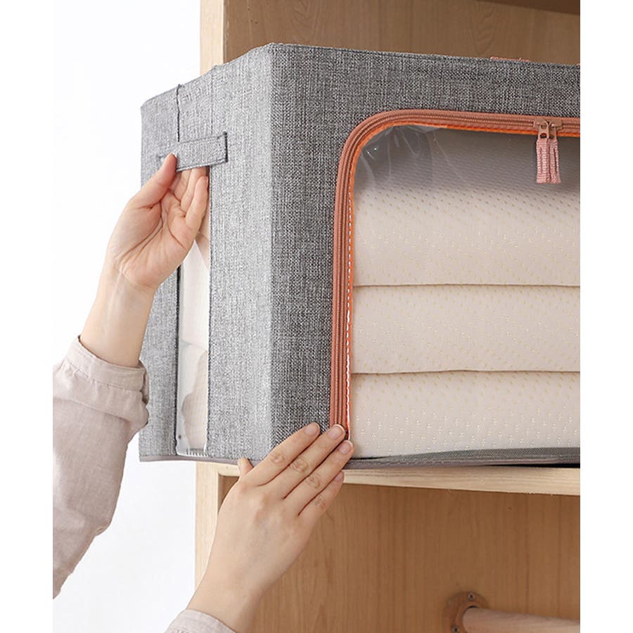 66Lの大容量で、大きな透明窓付きの折りたたみ式収納ボックス。