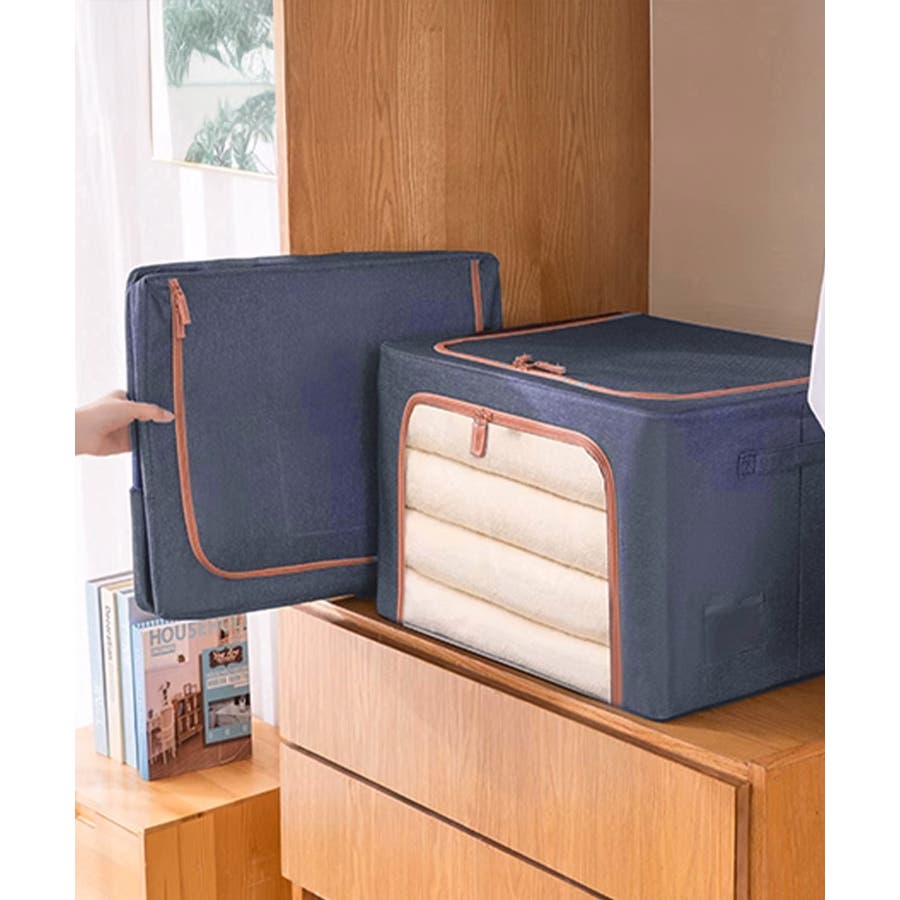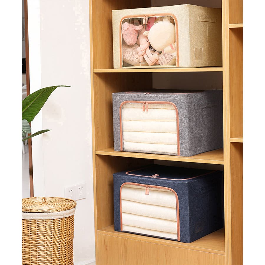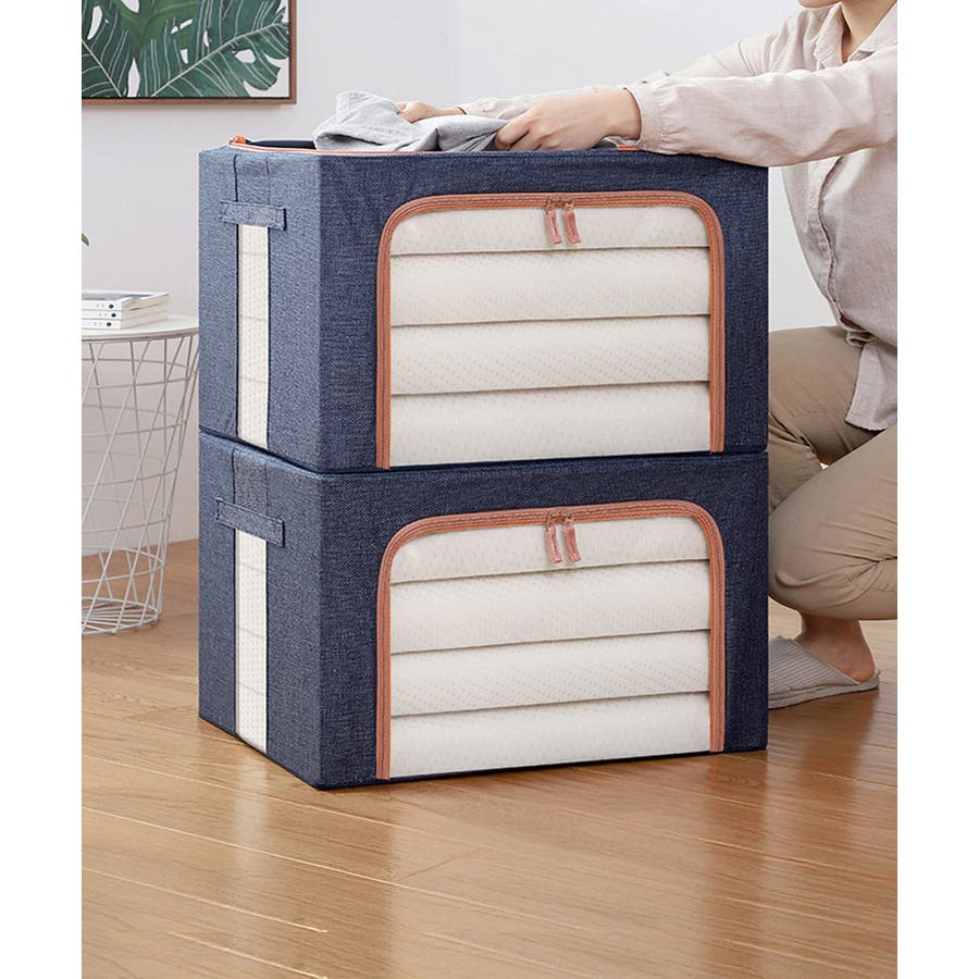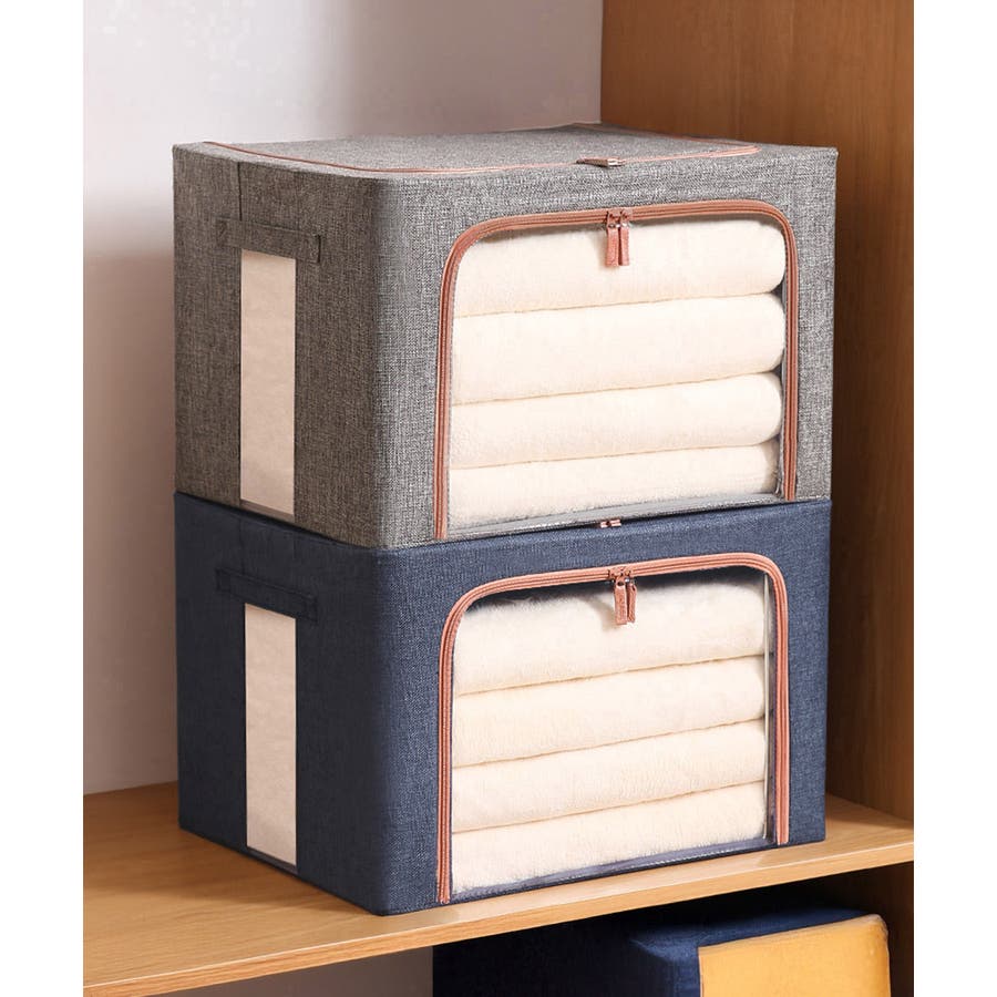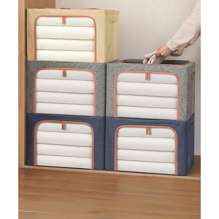 66Lの大容量で、大きな透明窓付きの折りたたみ式収納ボックス。