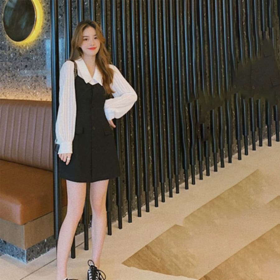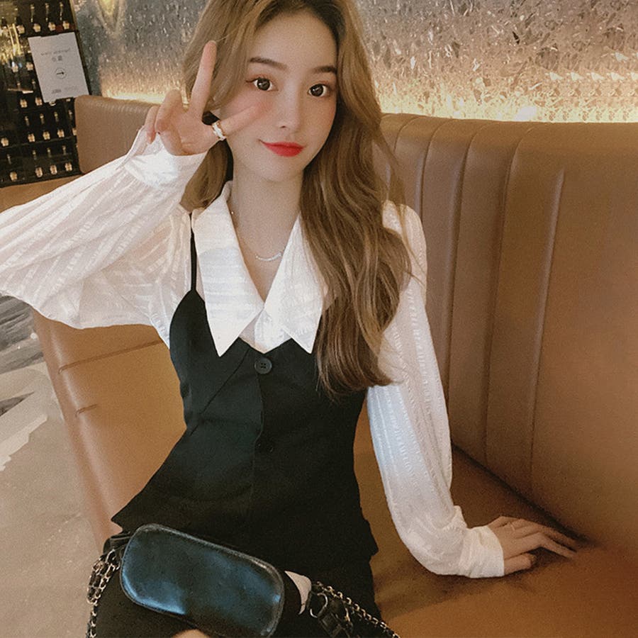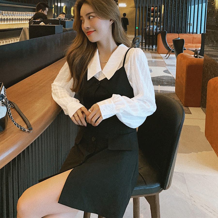 2点セット レディース ブラウス長袖 ミニワンピース 無地 セットアップ シャツワンピ ミニ キャミワンピ パーティードレス セットアップ韓国風