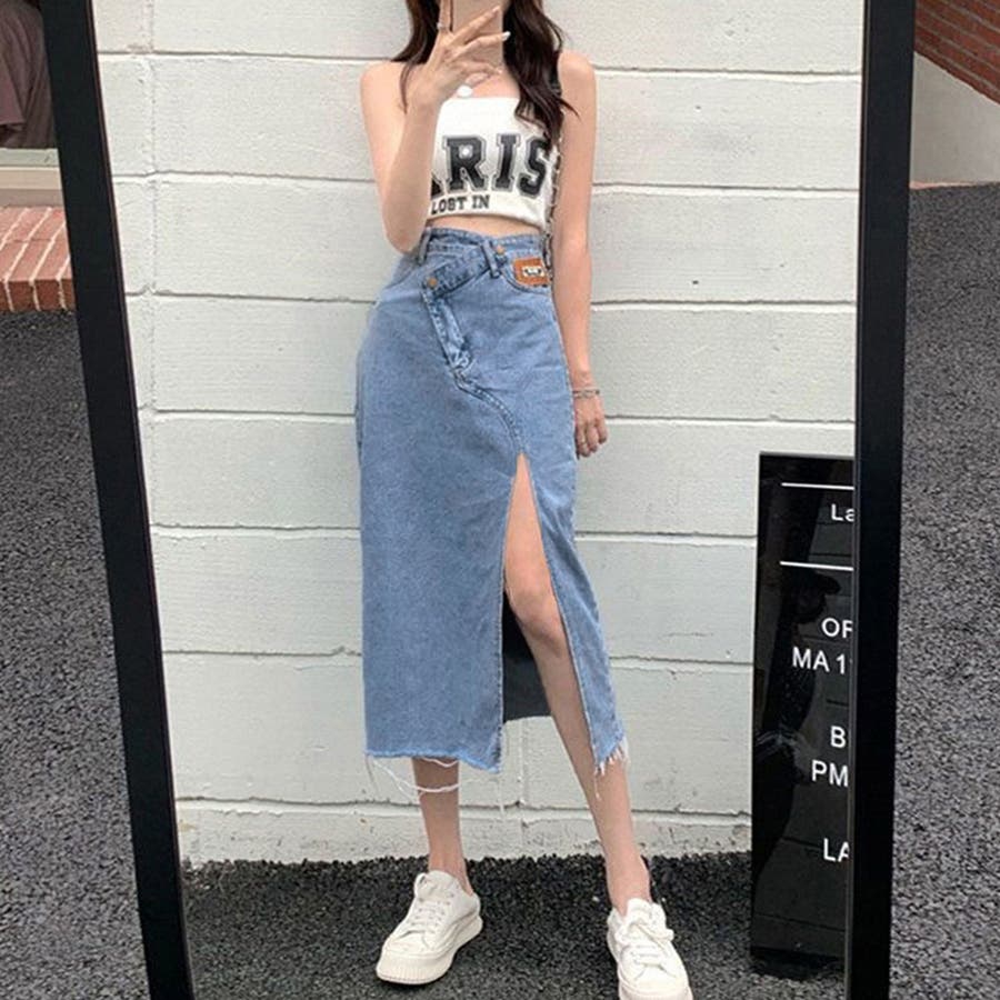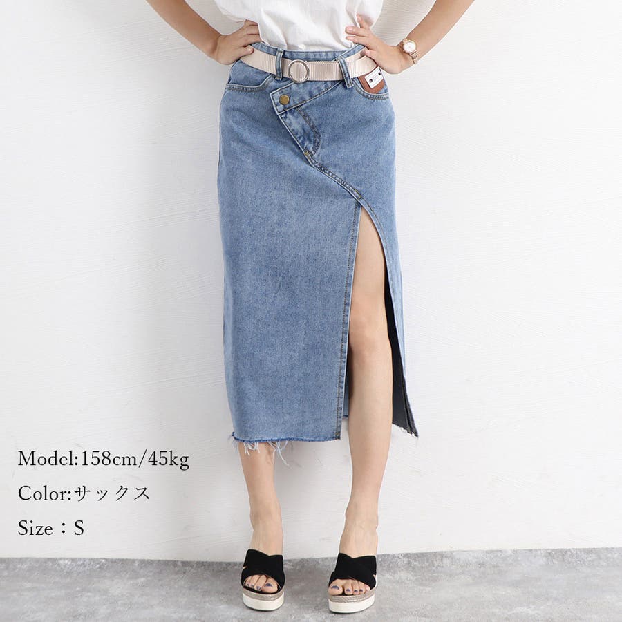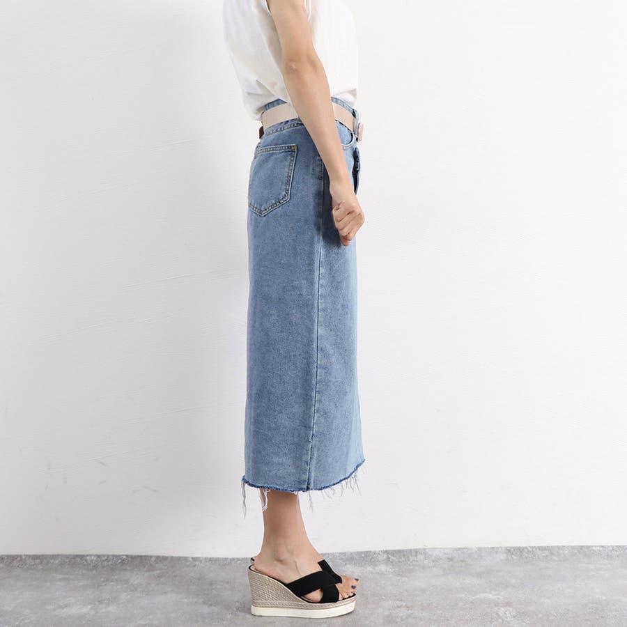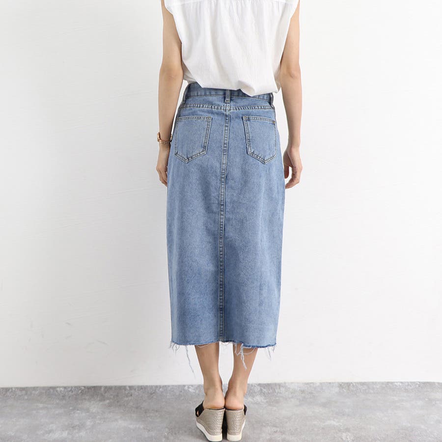 カットオフデザインがトレンド感をプラスし、コーディネートのアクセントになるデニムスカート