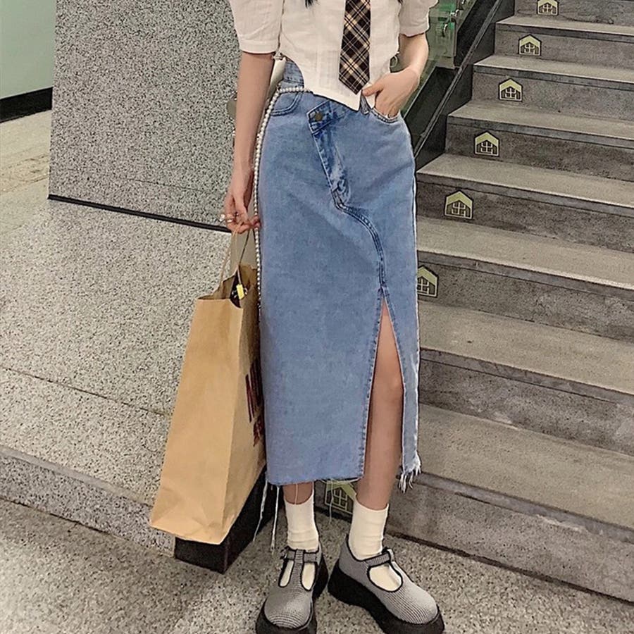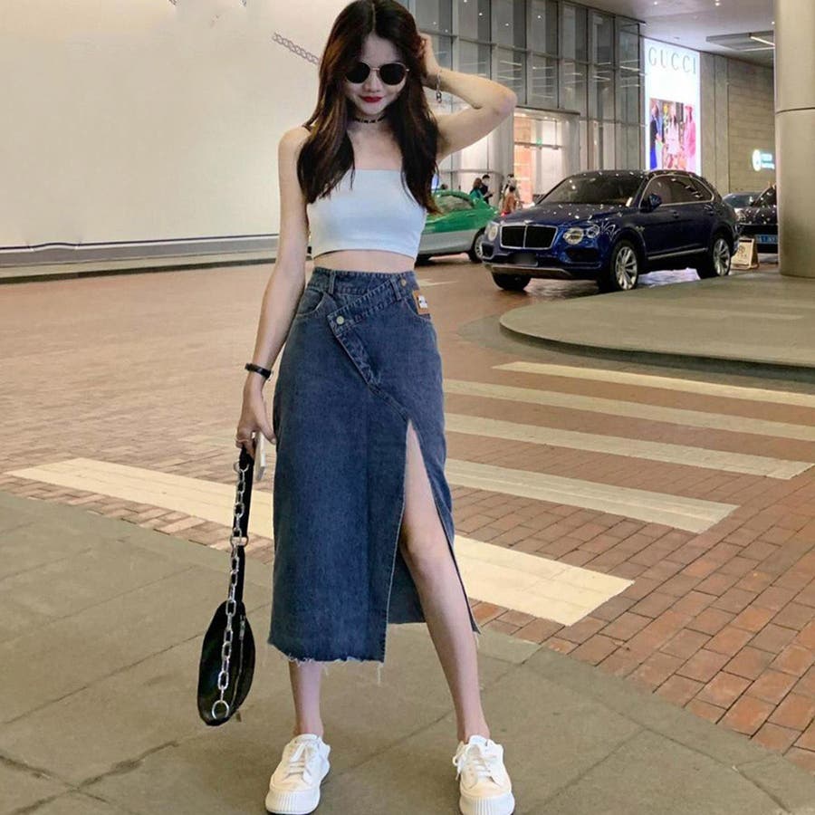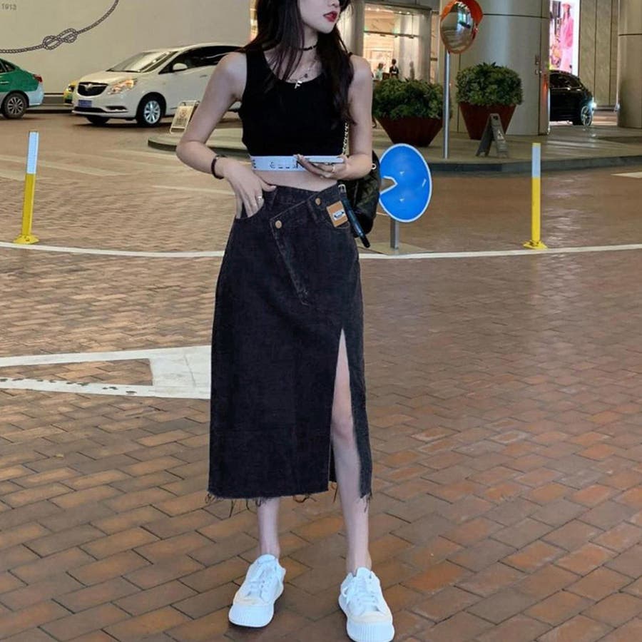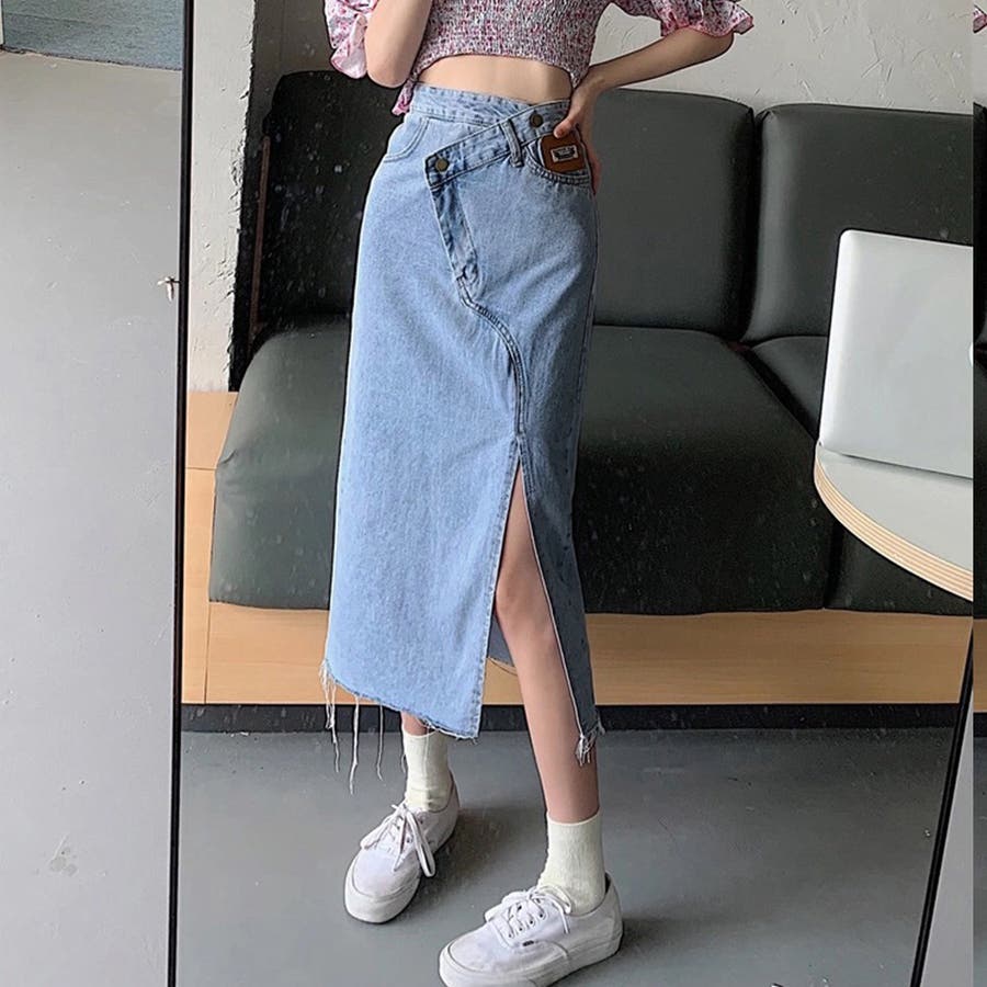 カットオフデザインがトレンド感をプラスし、コーディネートのアクセントになるデニムスカート