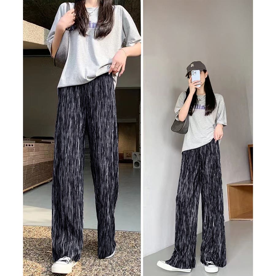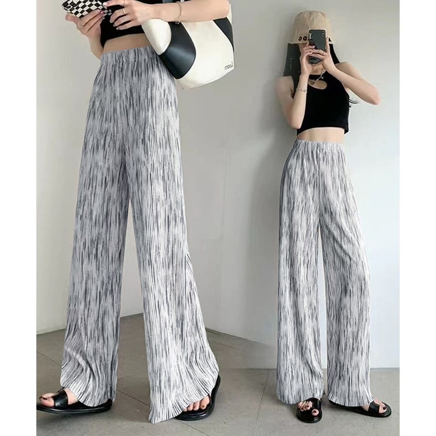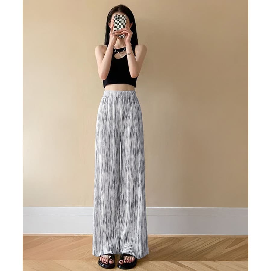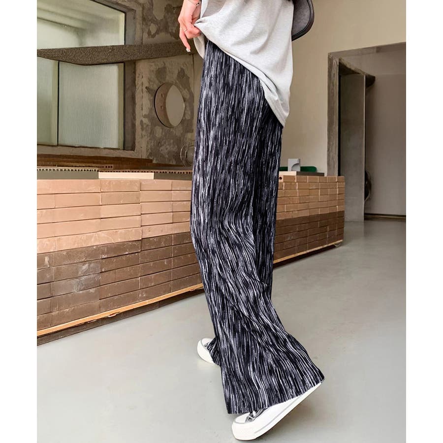 美脚脚長ロングパンツレディース グラデーションパンツ体型カバー ウエストゴム楽ちんパンツ イージーパンツ 韓国風ボトムス