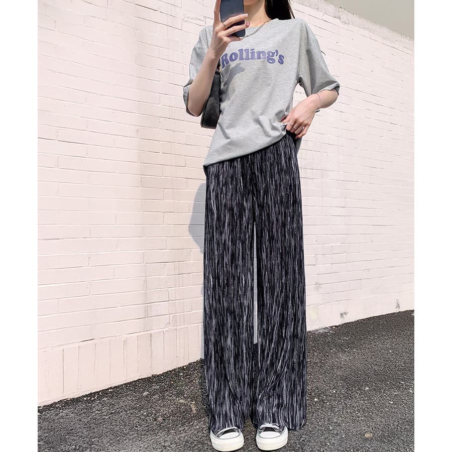 大人可愛い柄パンツ 薄手パンツゆったり 韓国風マキシパンツ