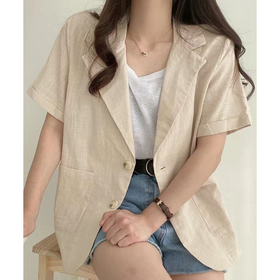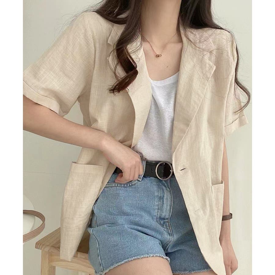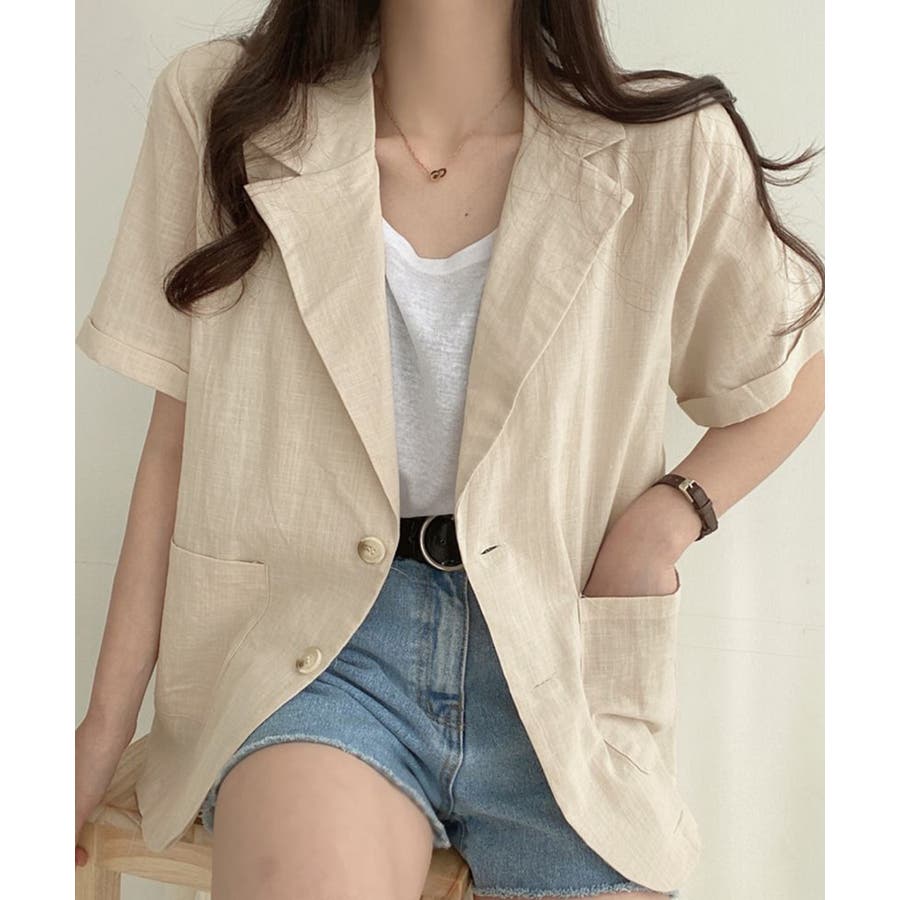 抜け感コーデ 夏服 ナチュラルアウター 麻調ジャケット軽快