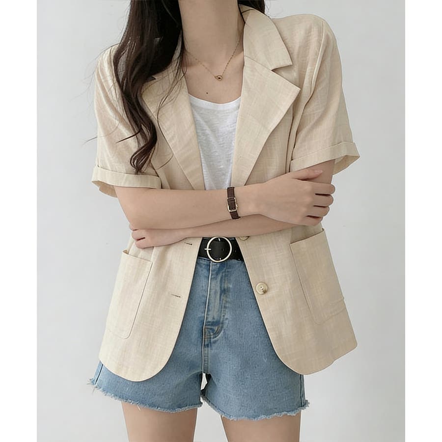 涼しげな綿麻素材で仕立てた半袖のテーラードジャケット。
