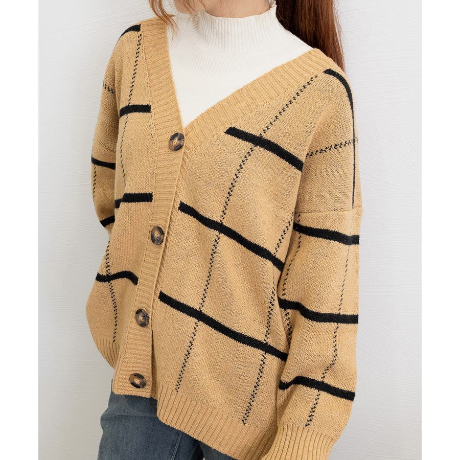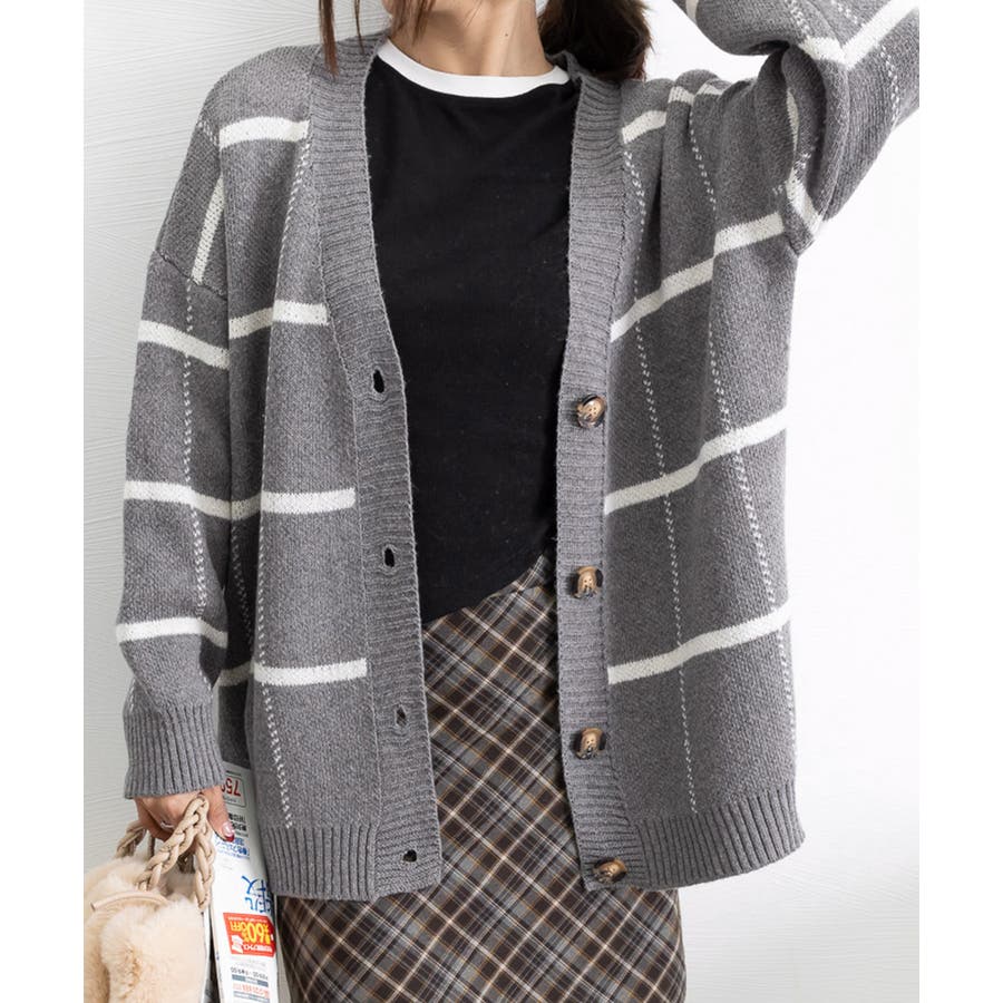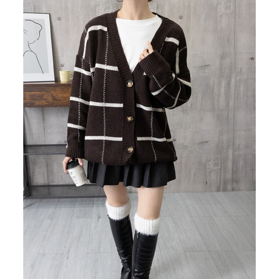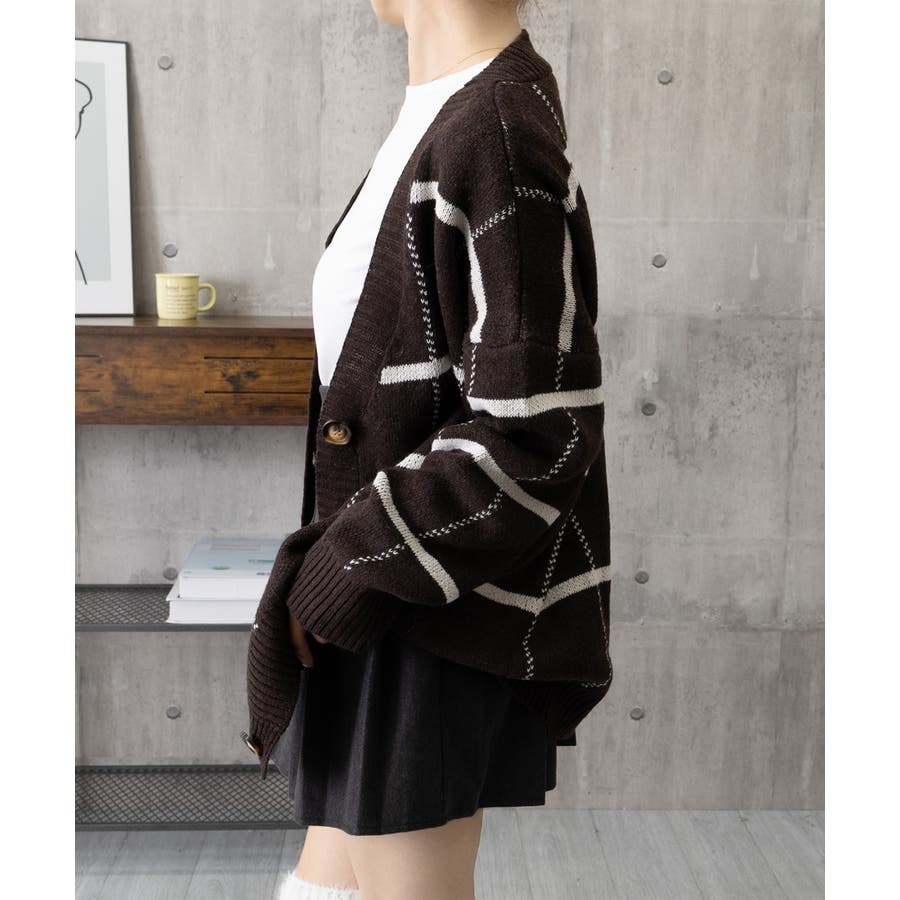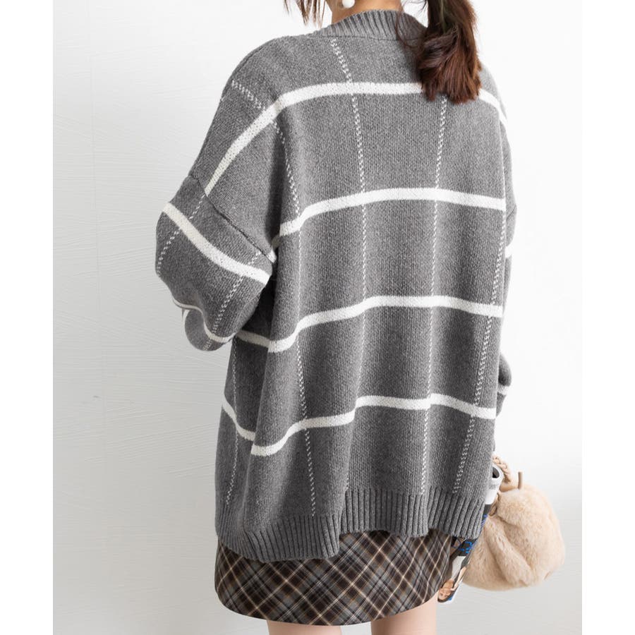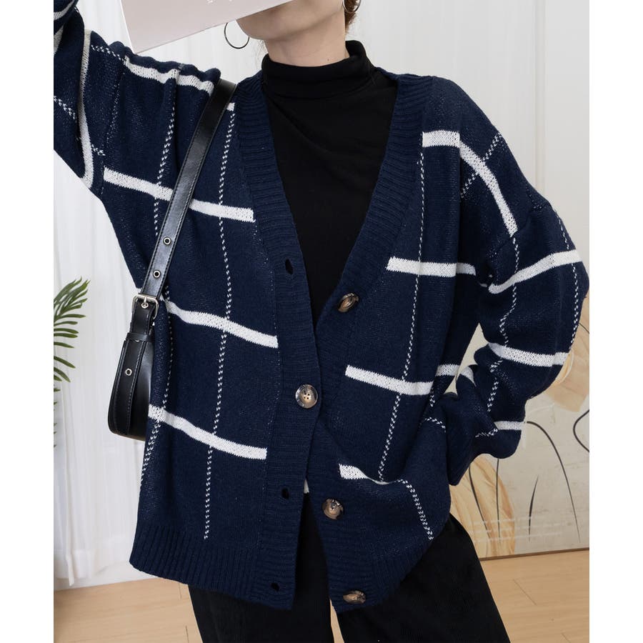 ニットカーディガン BIGチェック柄秋冬
