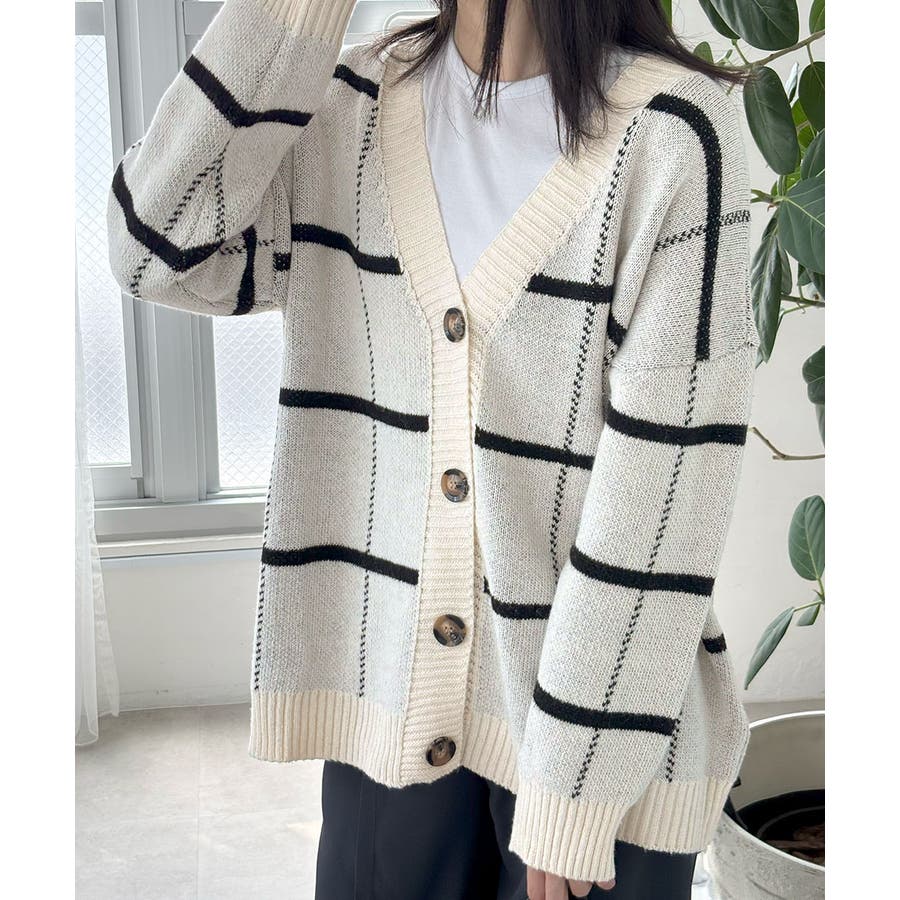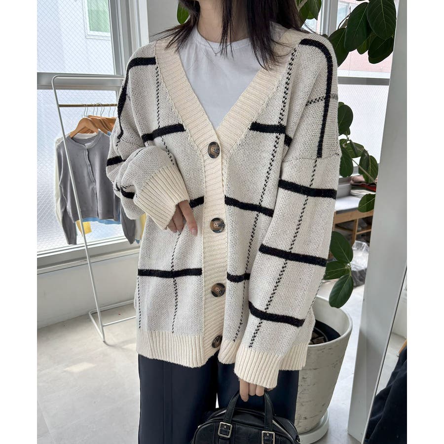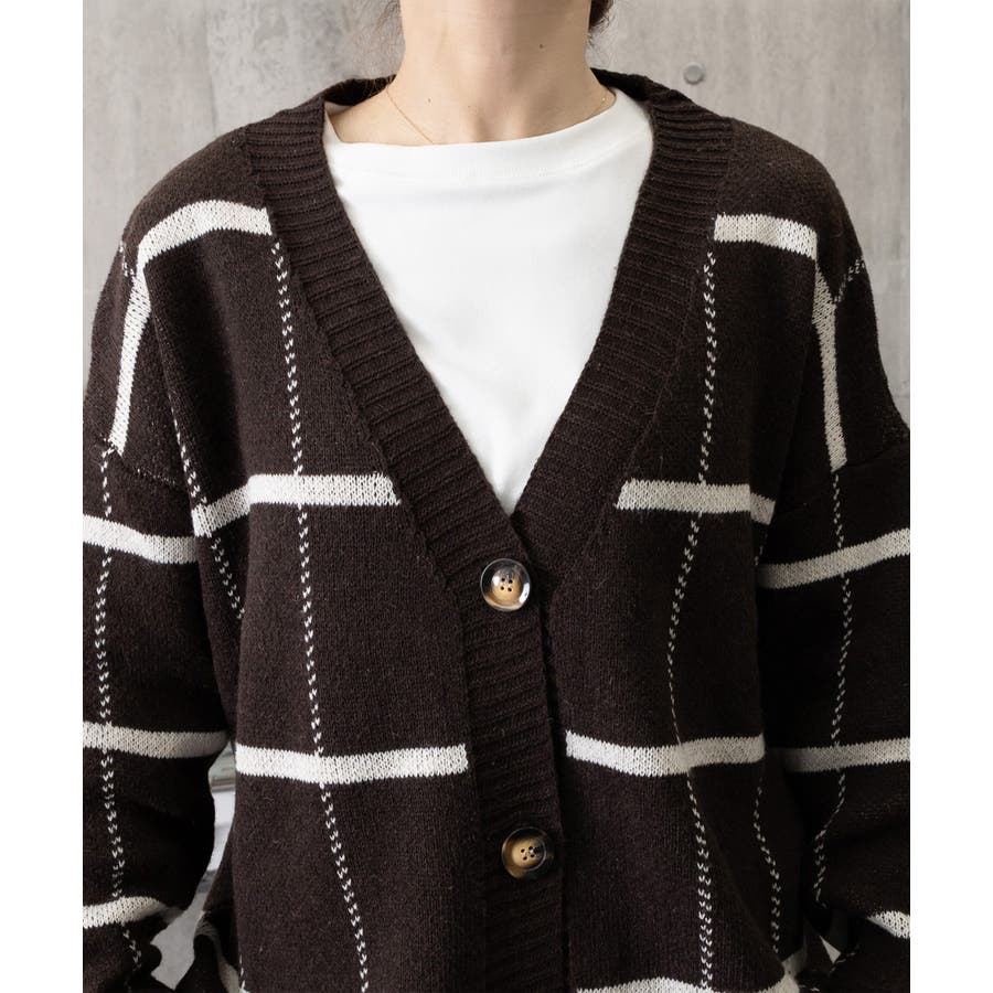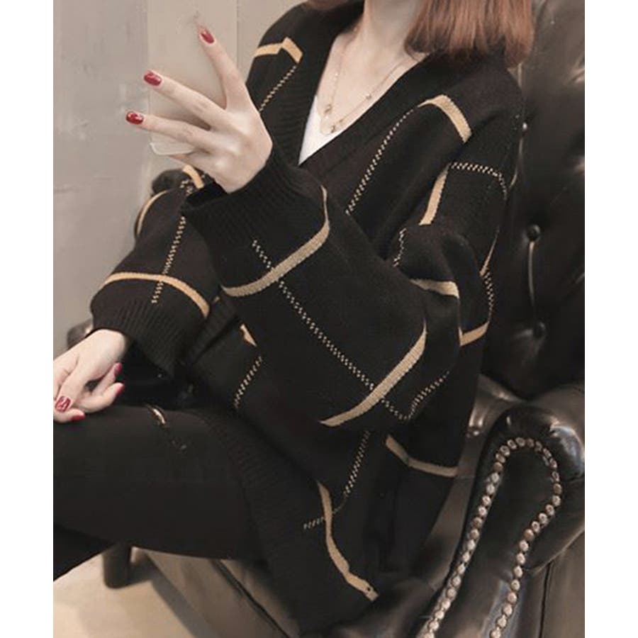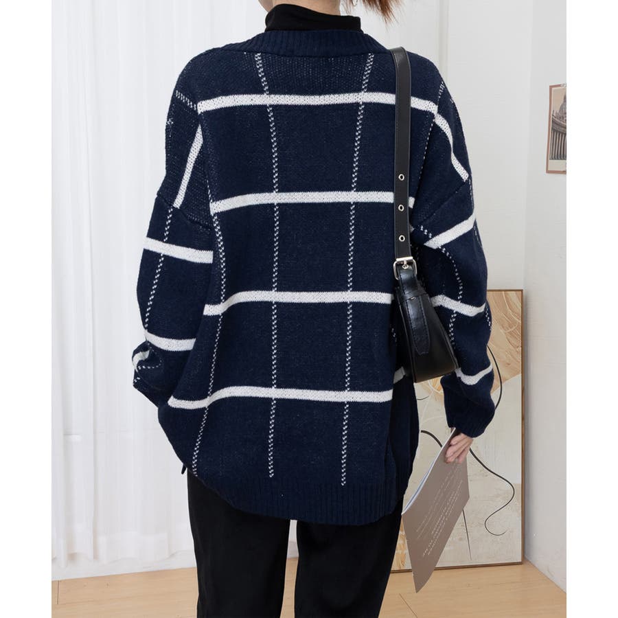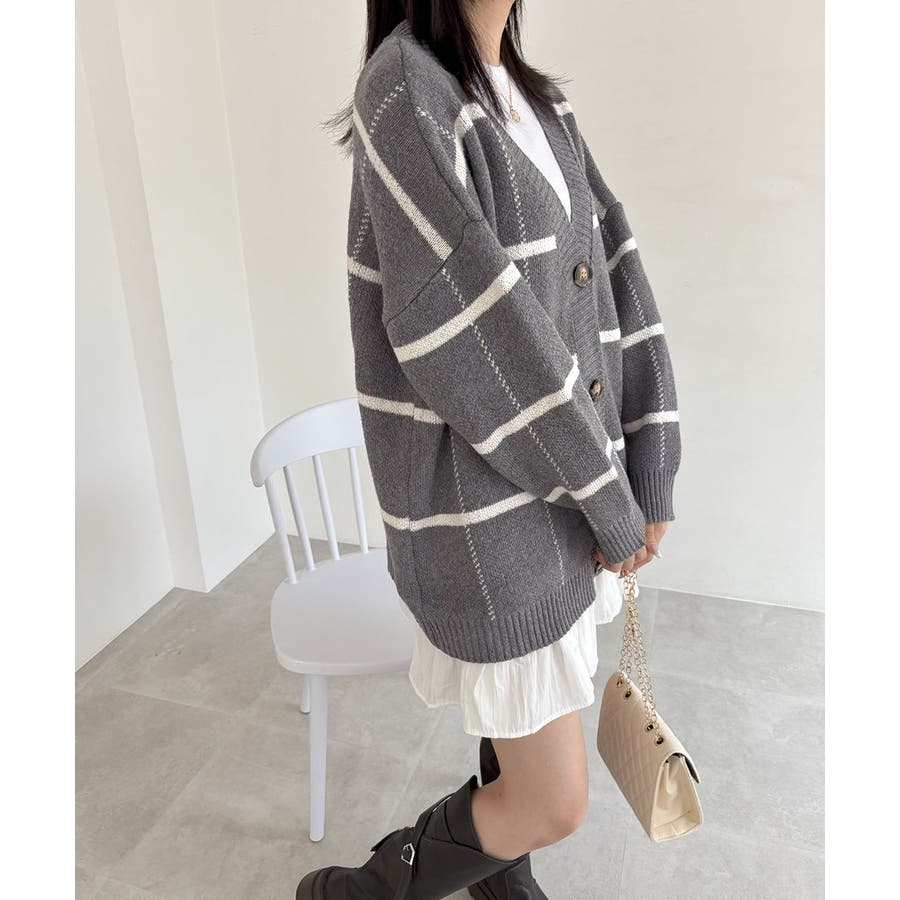 ニットカーディガン BIGチェック柄秋冬