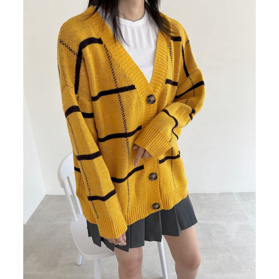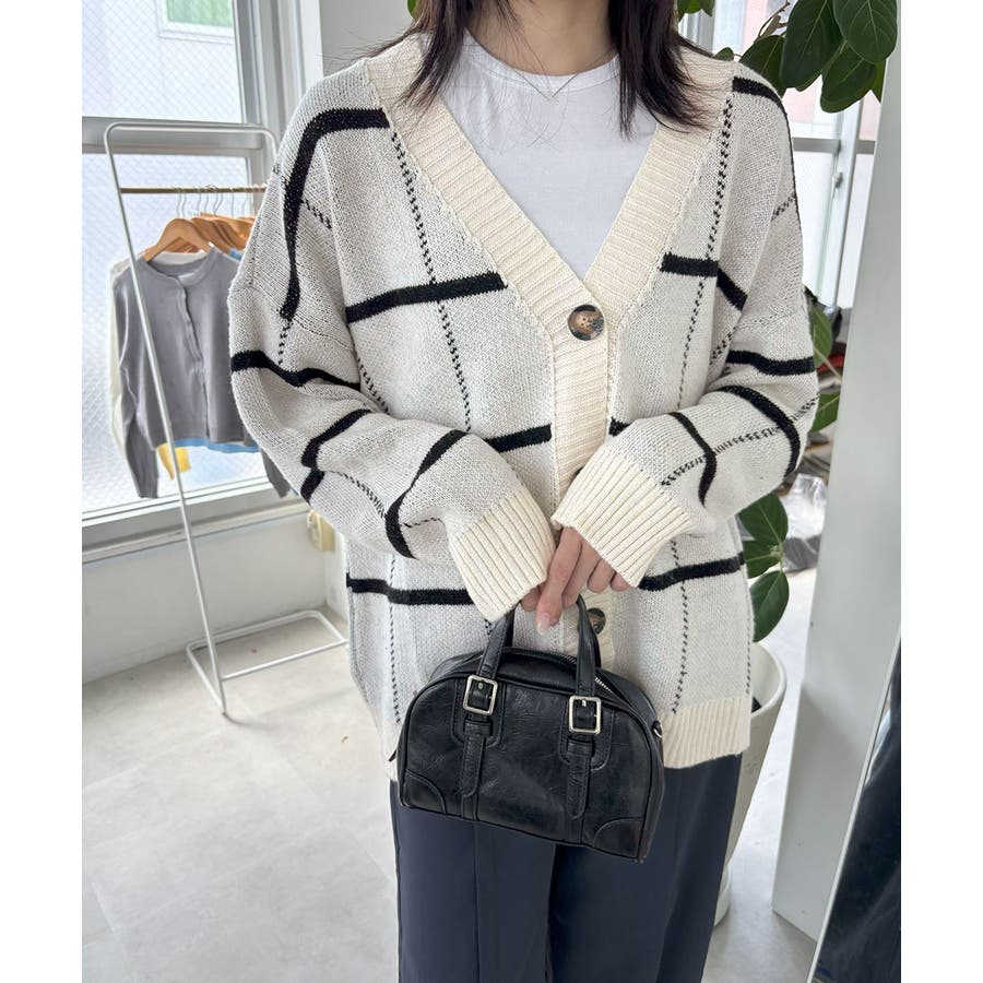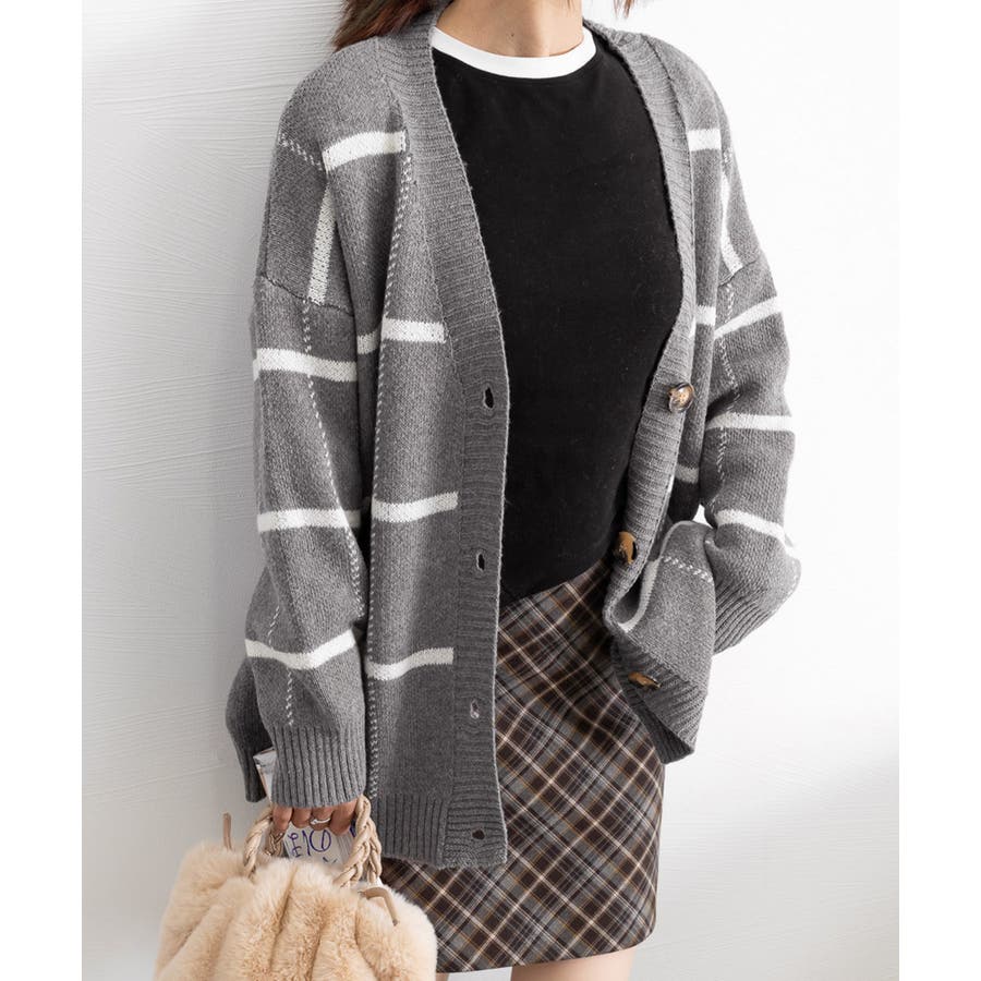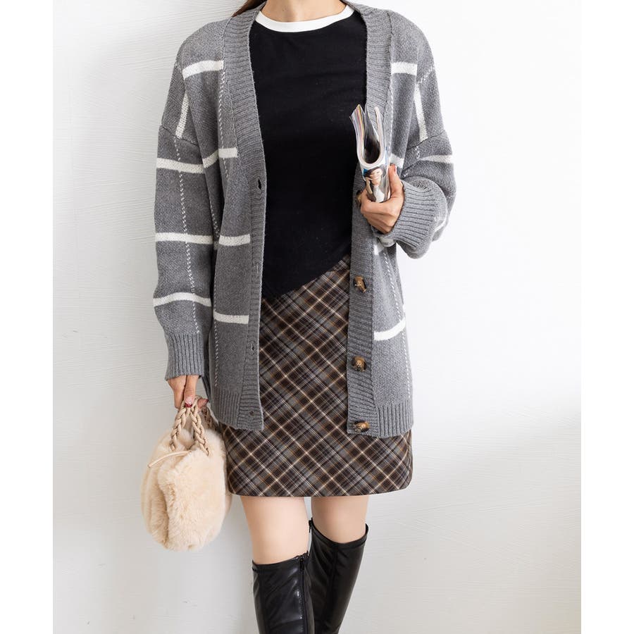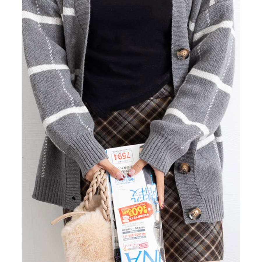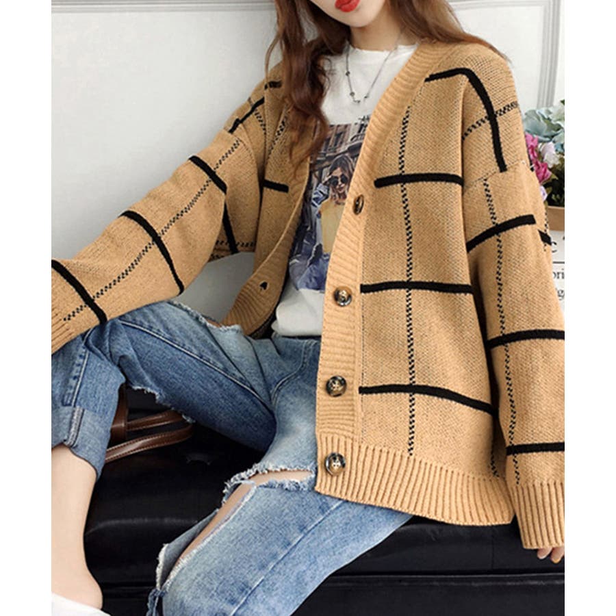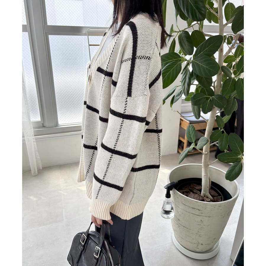 ニットカーディガン BIGチェック柄秋冬