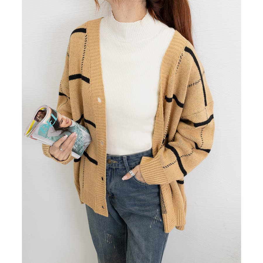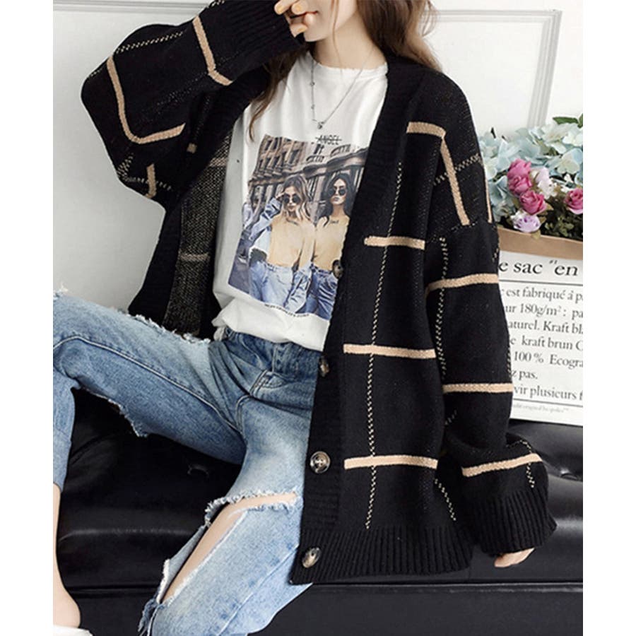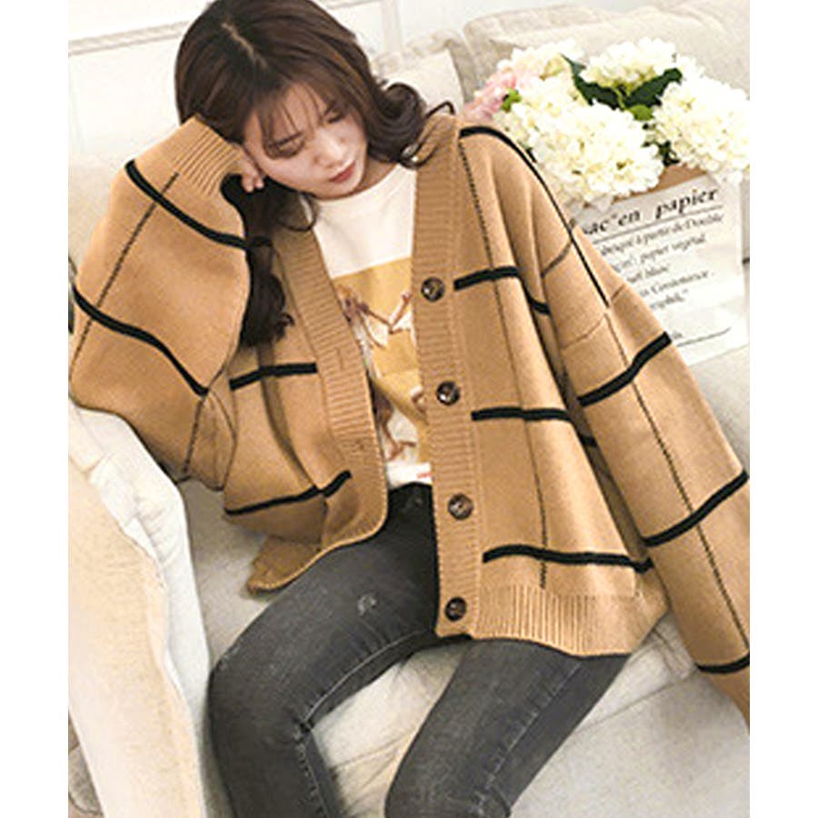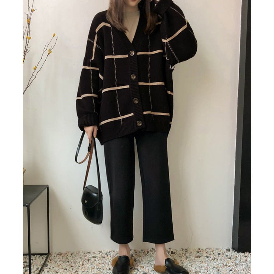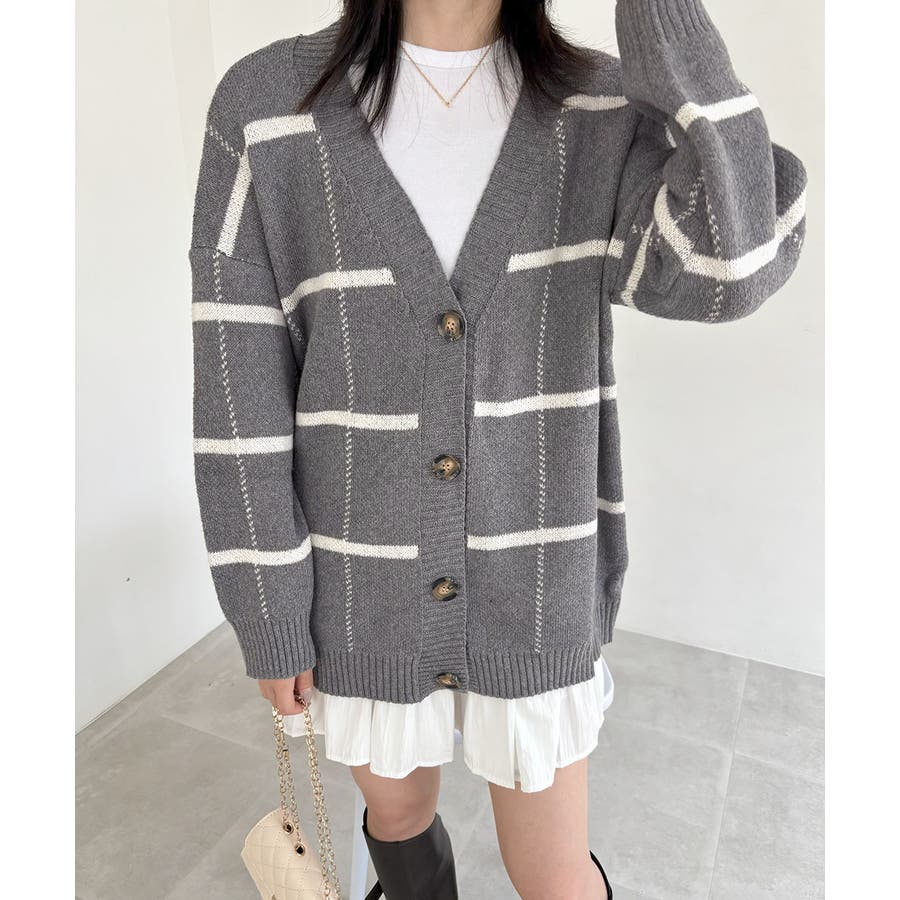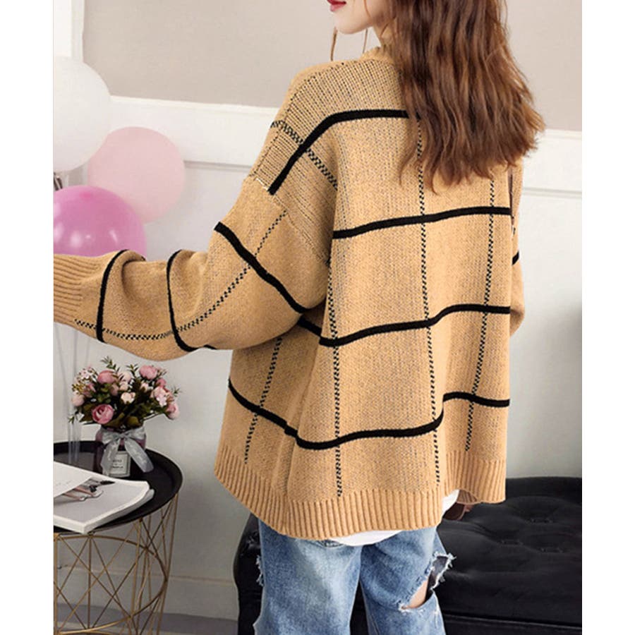 ニットカーディガン BIGチェック柄秋冬