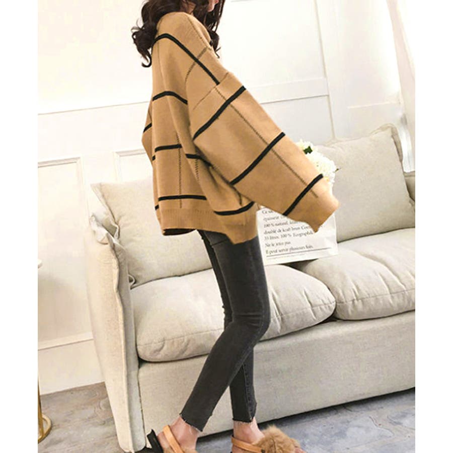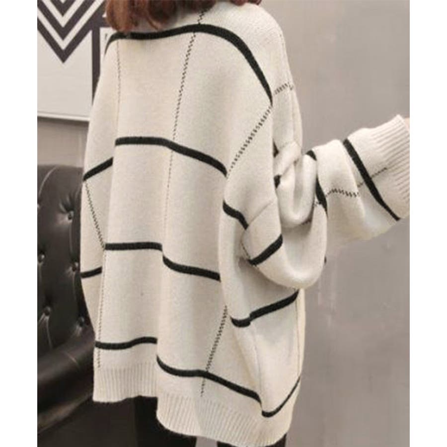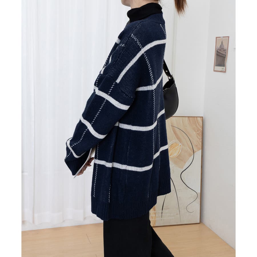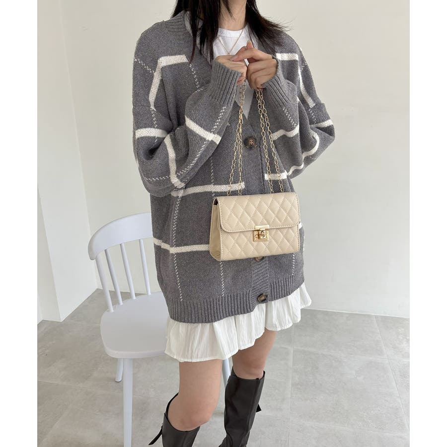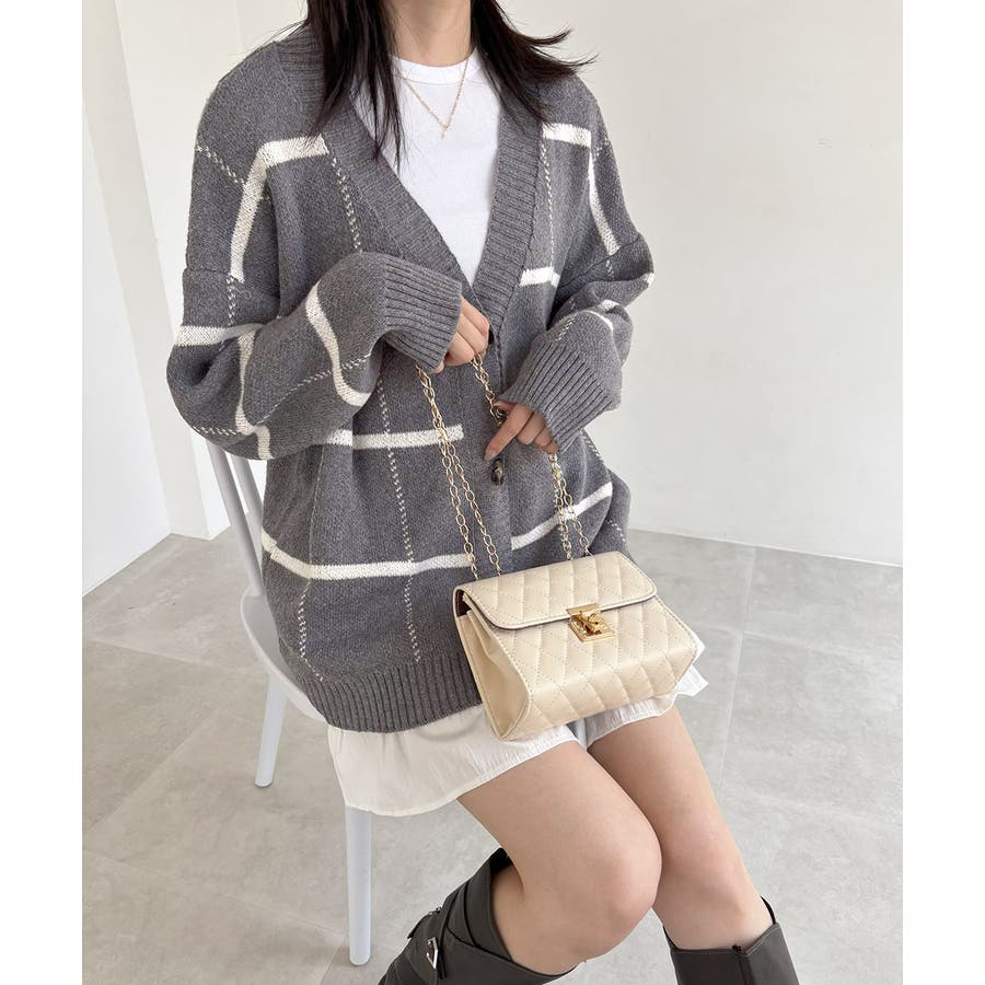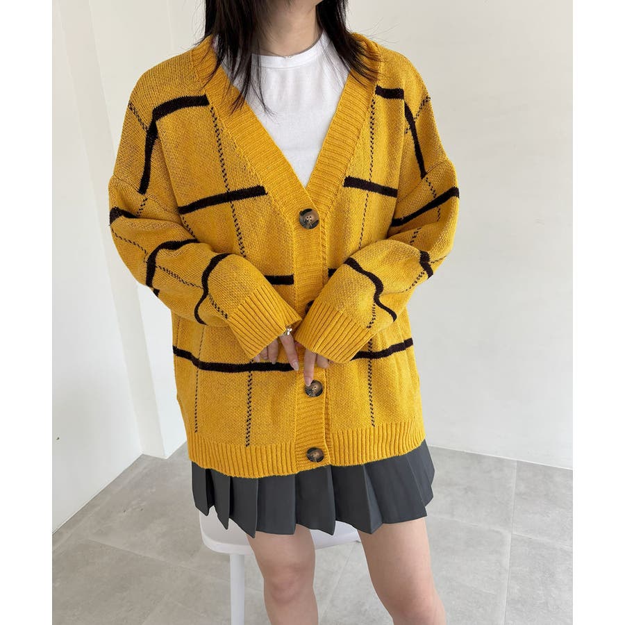 ニットカーディガン BIGチェック柄秋冬