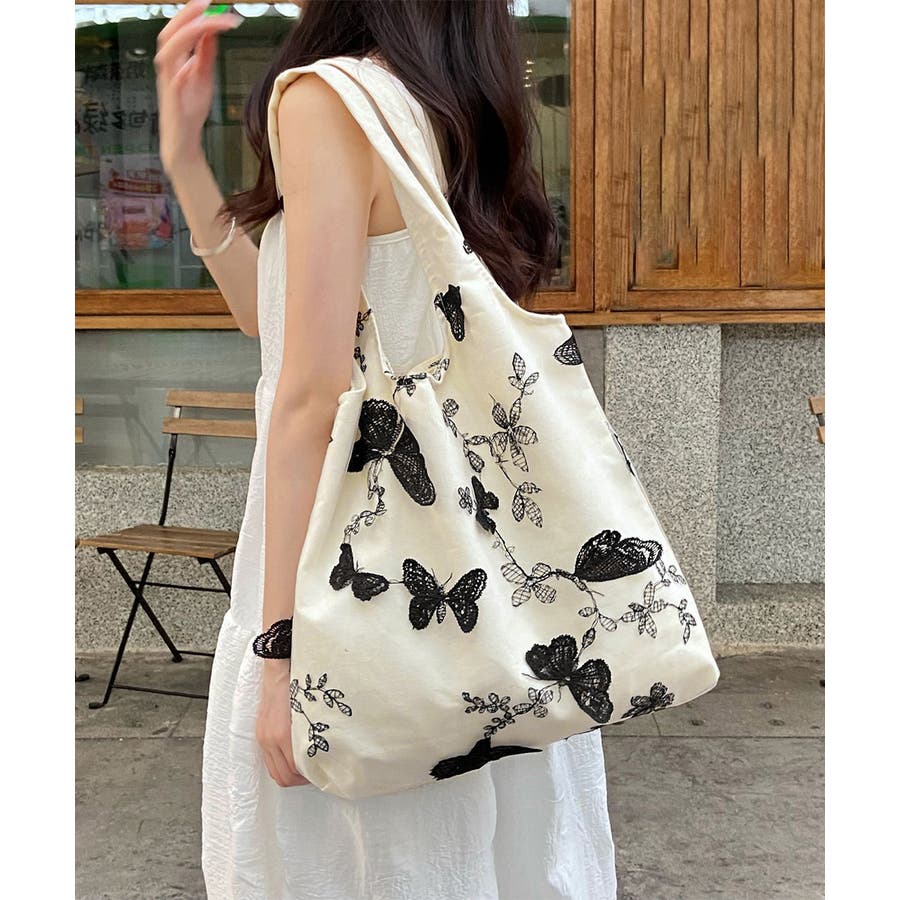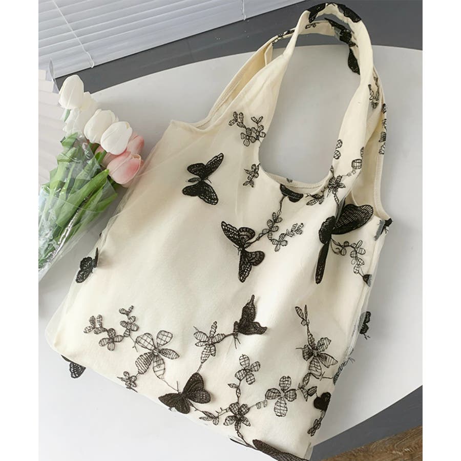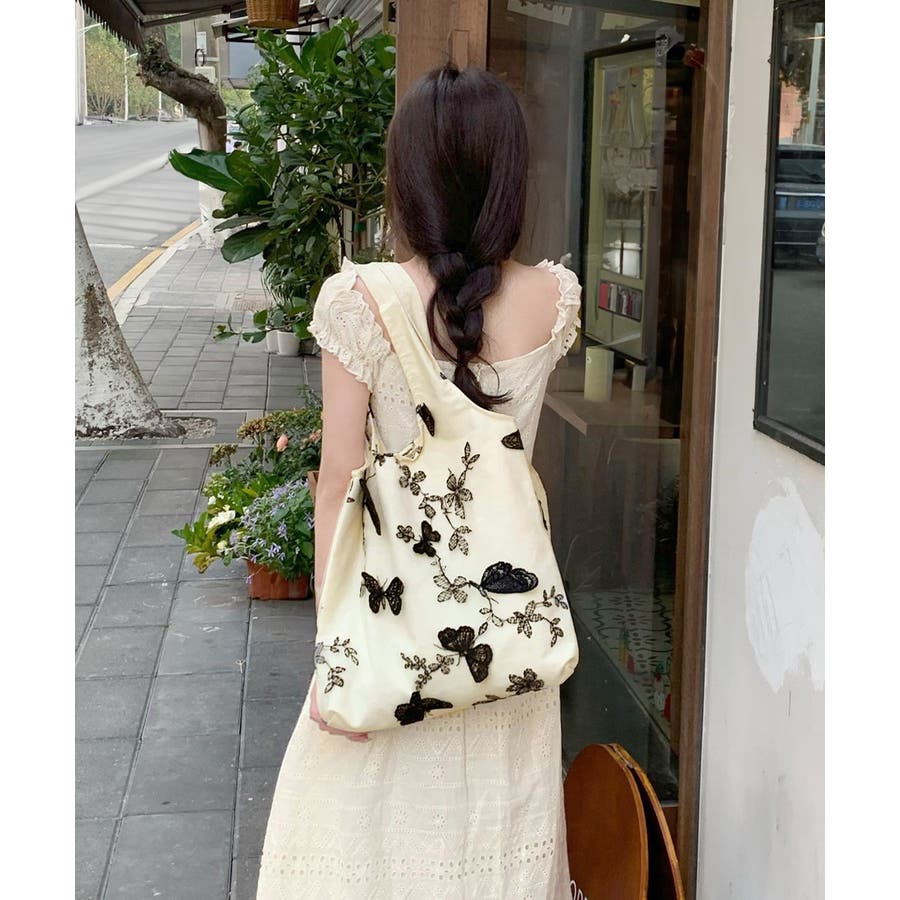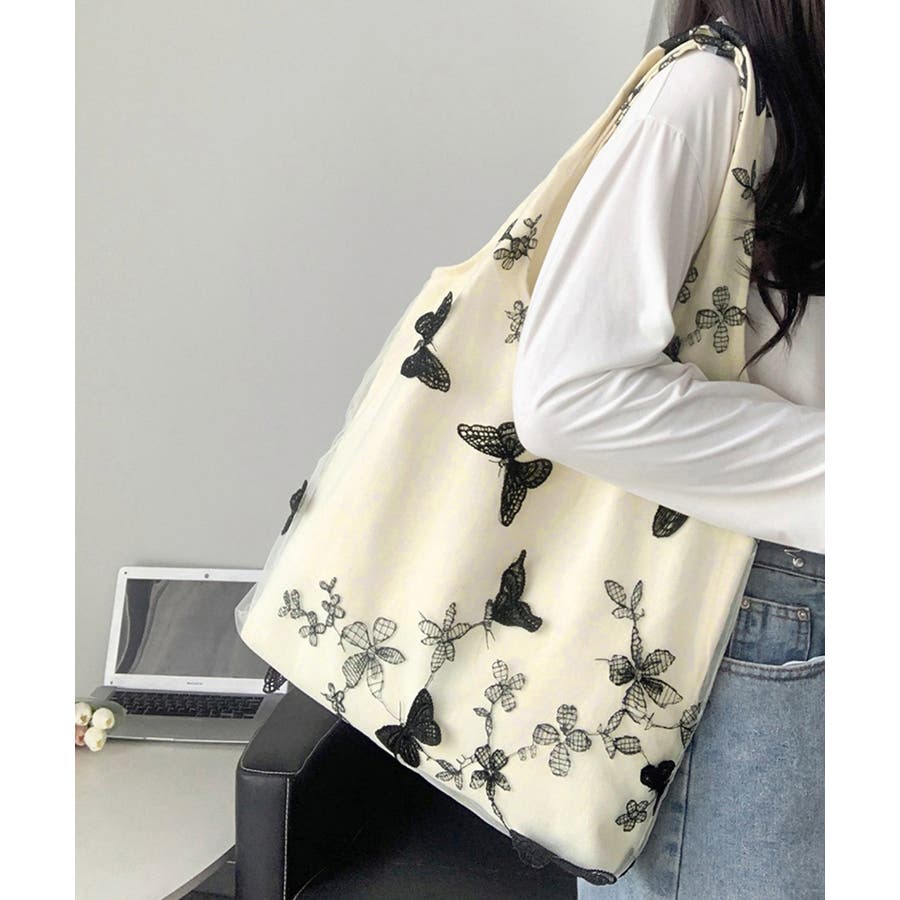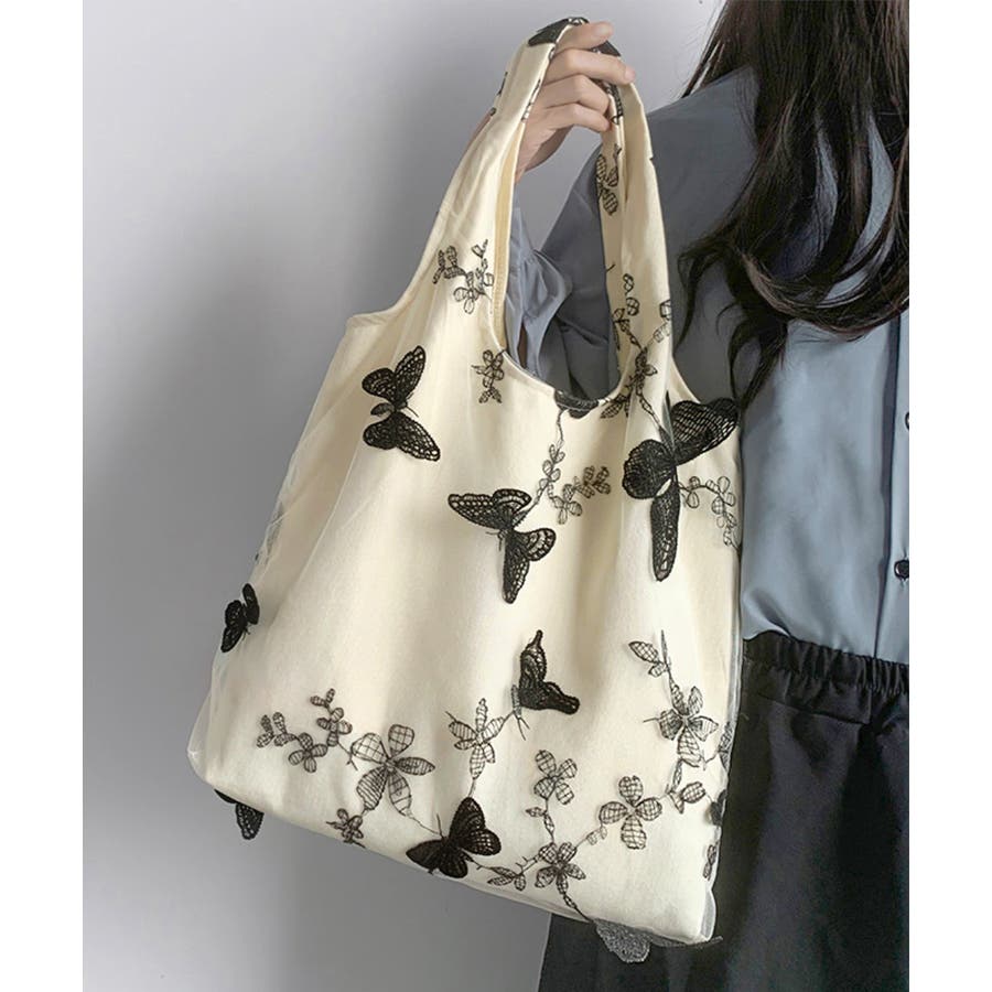 蝶モチーフトートバッグ大容量肩掛けバッグ