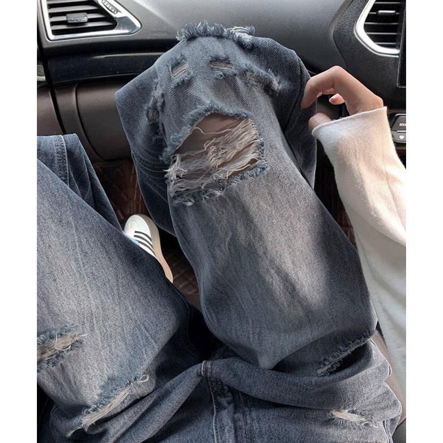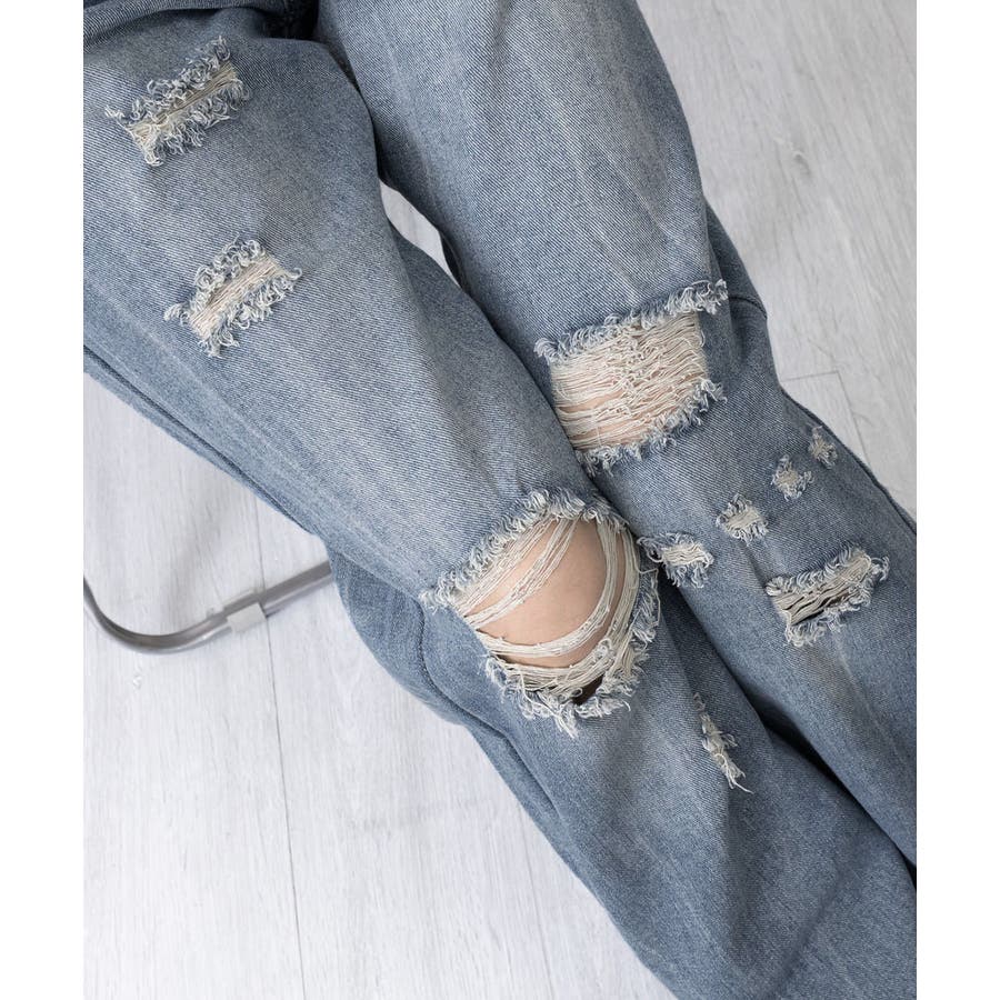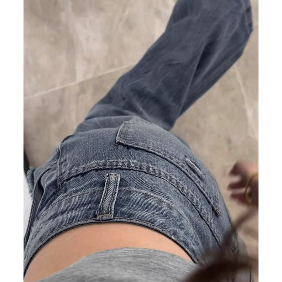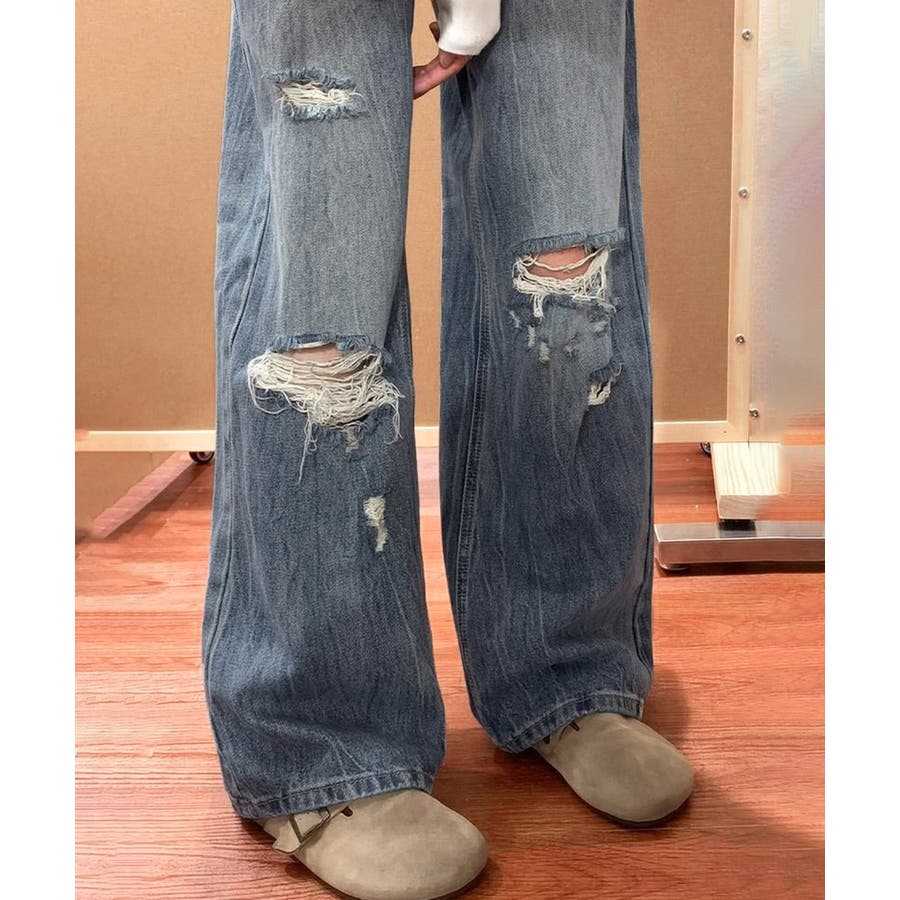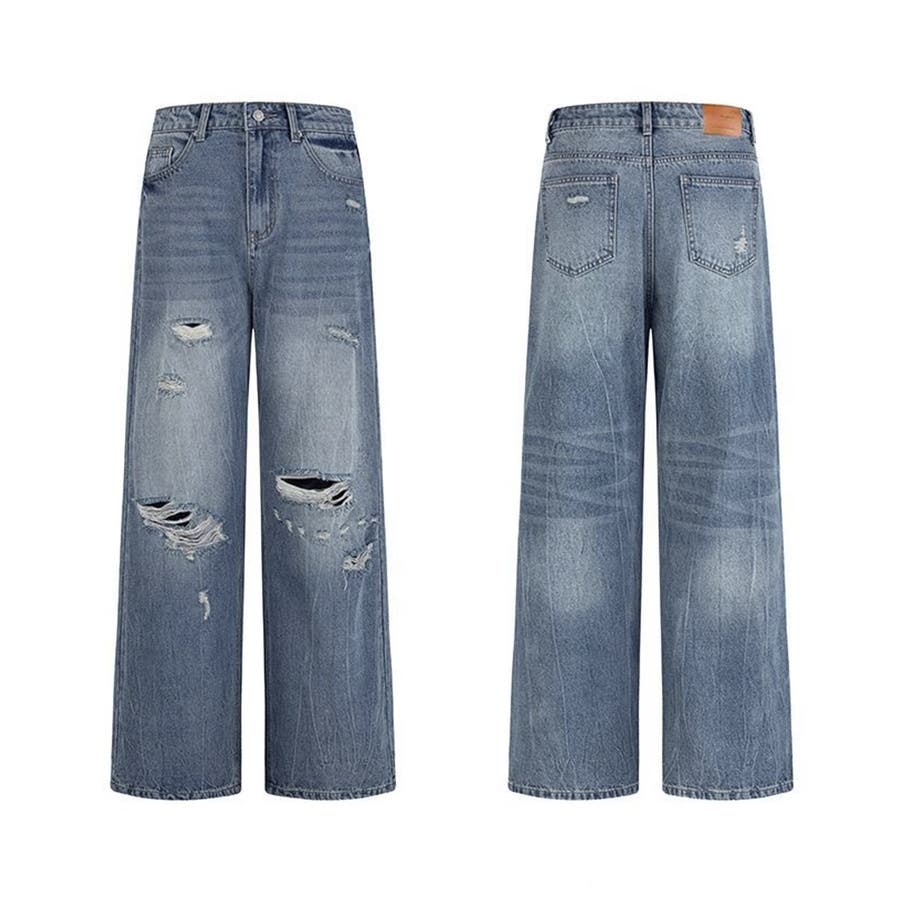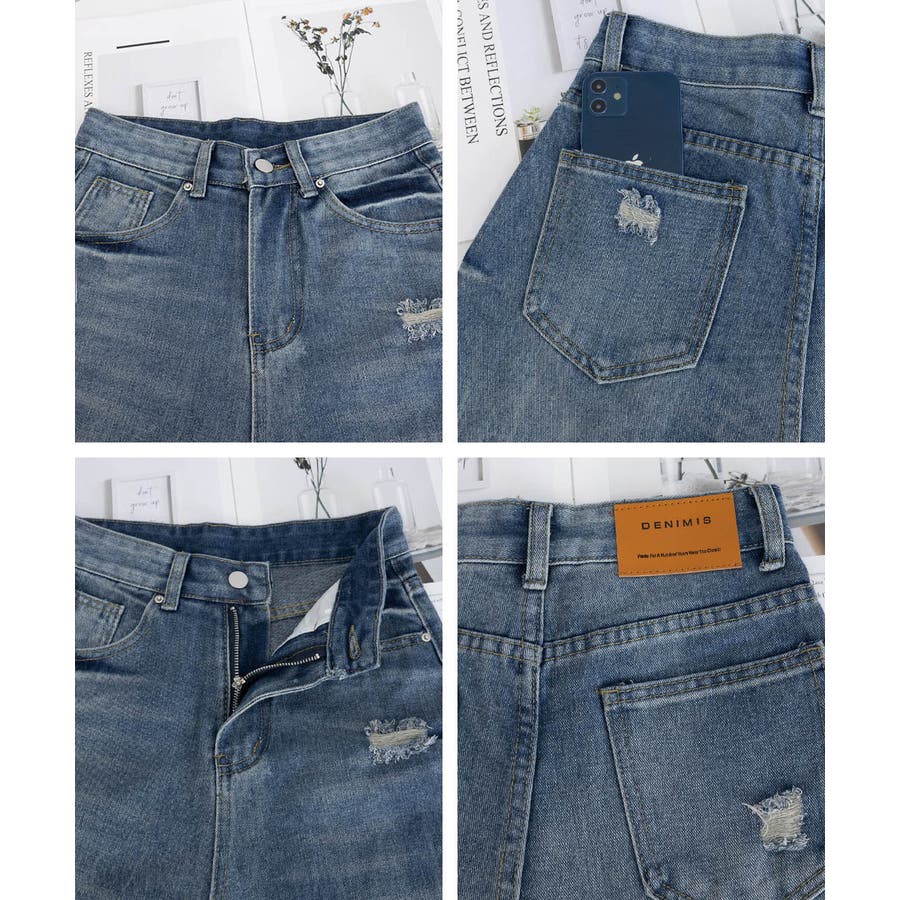 カジュアルジーンズ ユーズド加工デニム 体型カバー レトロ