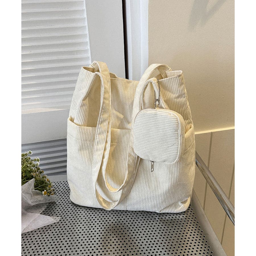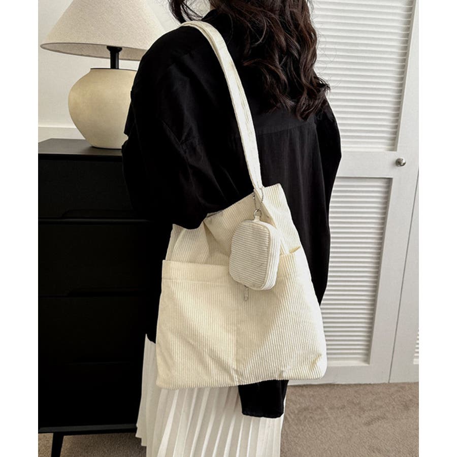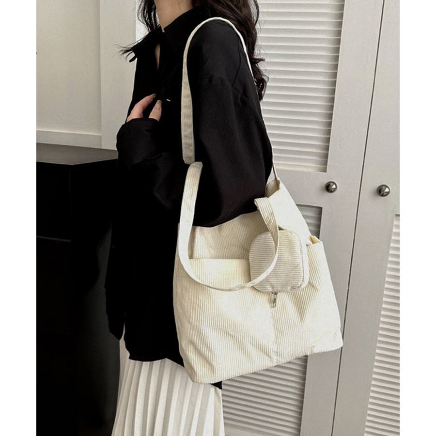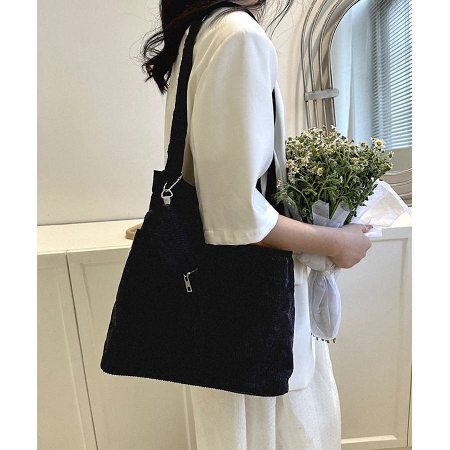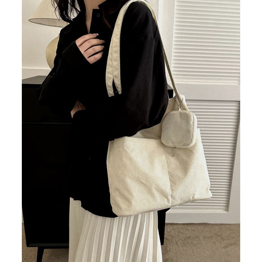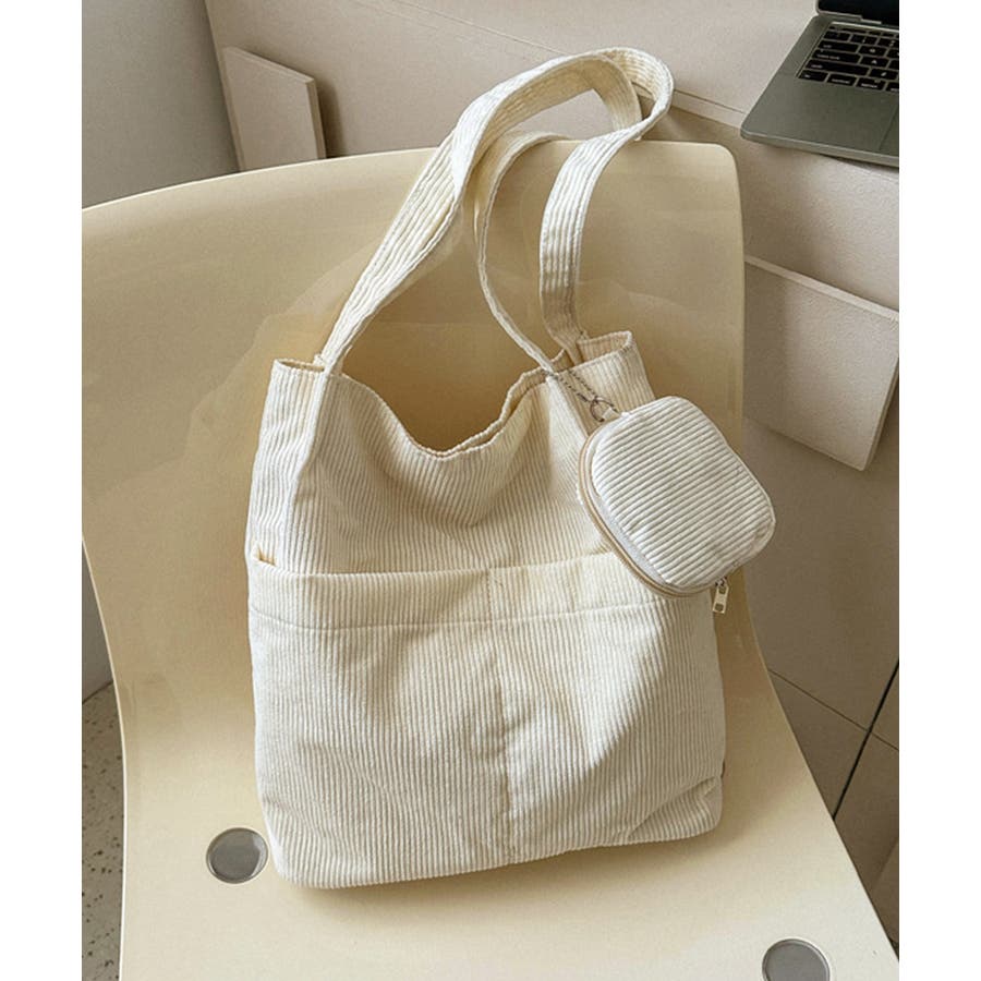 ナチュラルな風合いが魅力のコーデュロイ素材を使用したトートバッグ。