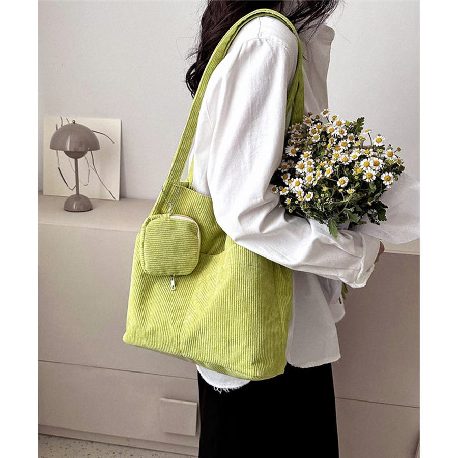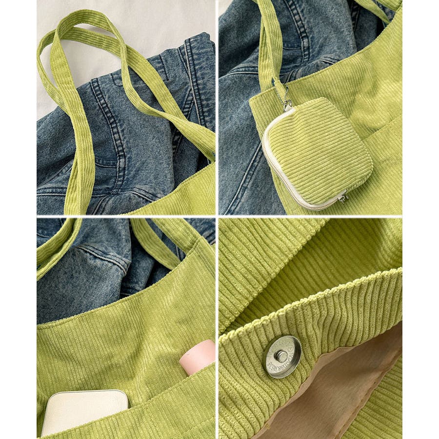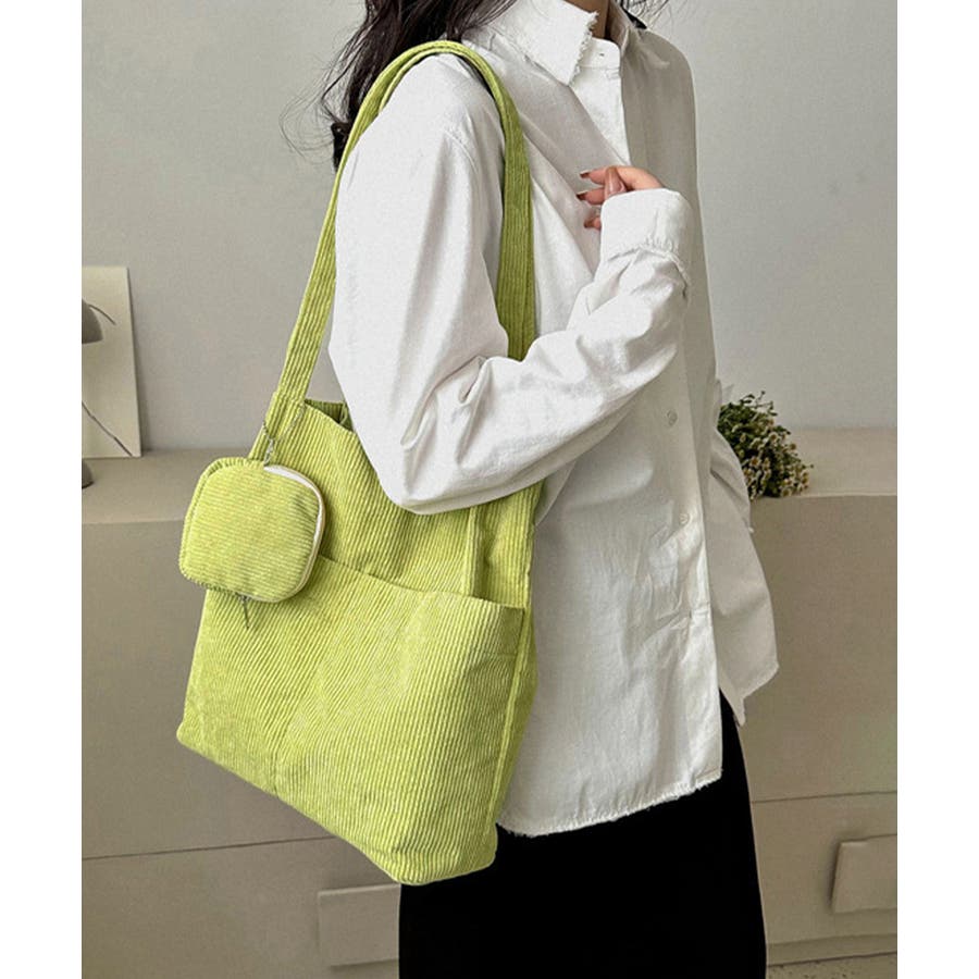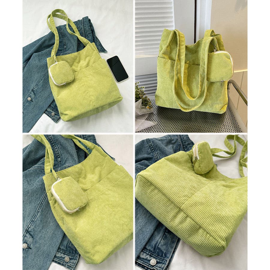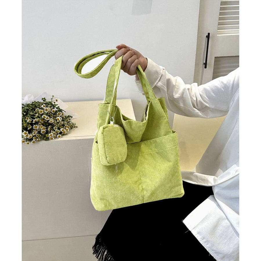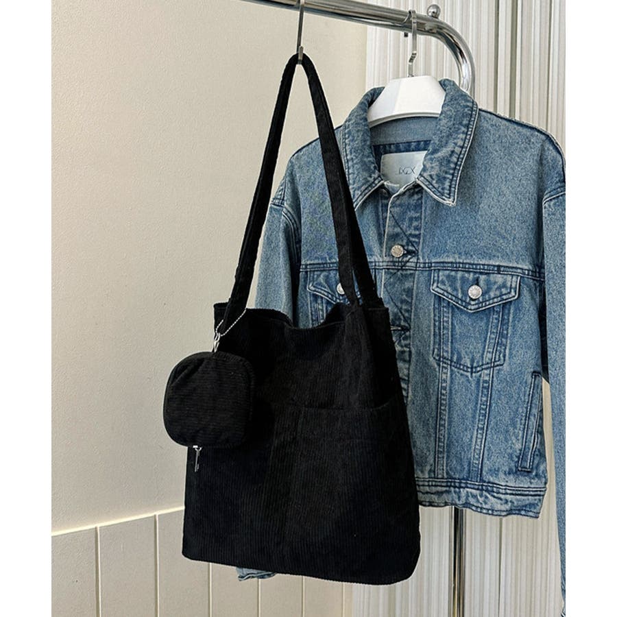 ナチュラルな風合いが魅力のコーデュロイ素材を使用したトートバッグ。