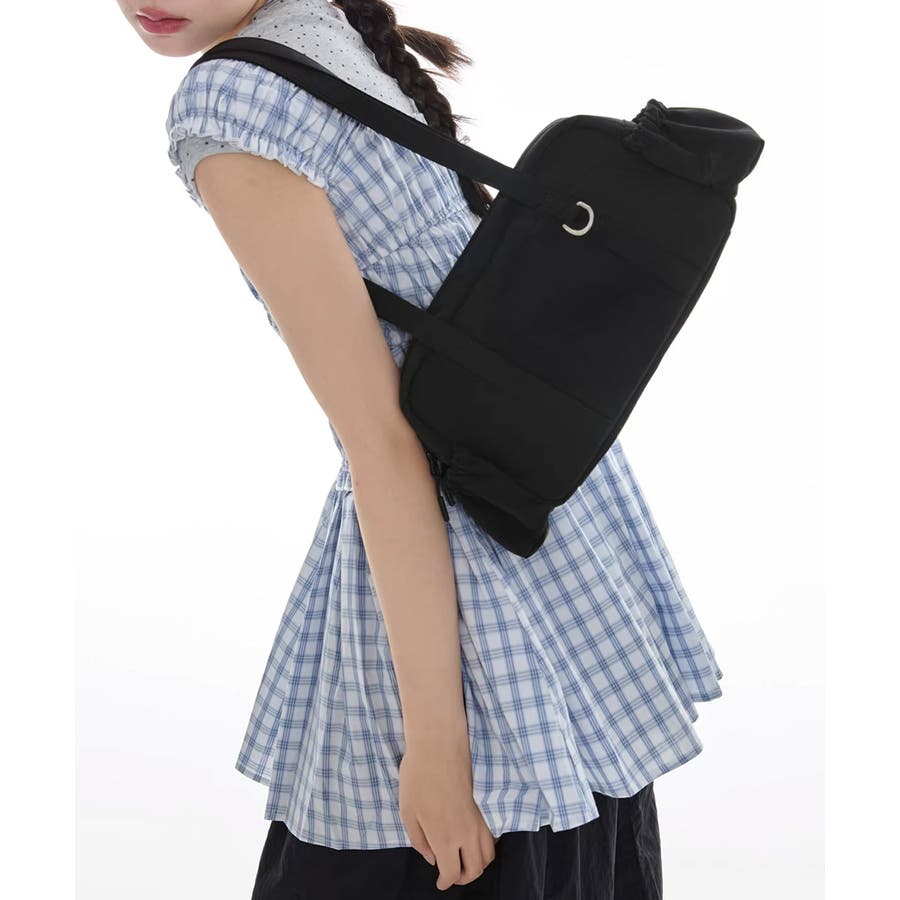 高さ:約18cm 上横幅:約27cm 底横幅:約27cm マチ:約7cm 持ち手高さ:約28cm 持ち手長さ:約67cm(調節不可、取り外し不可)