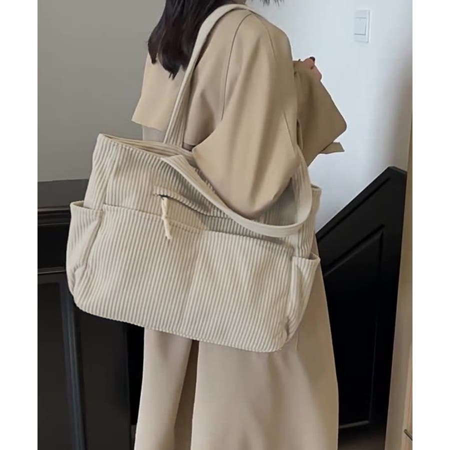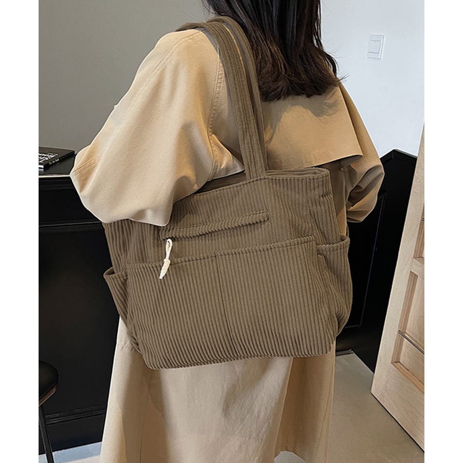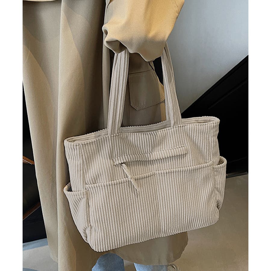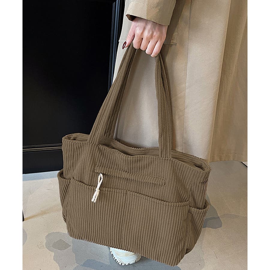 柔らかなコーデュロイ素材で仕上げた、大容量のトートバッグ。