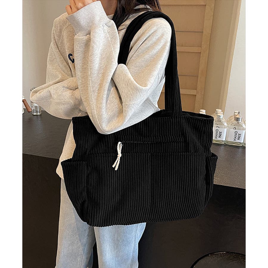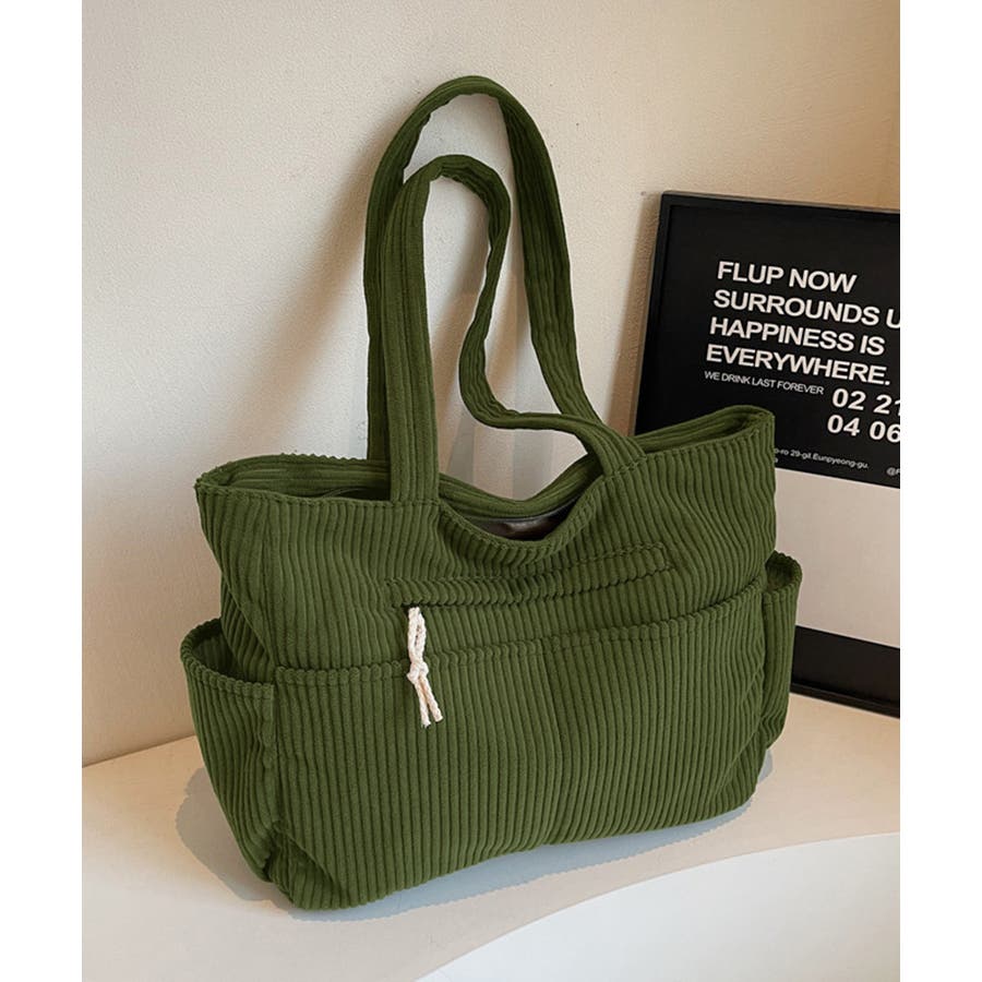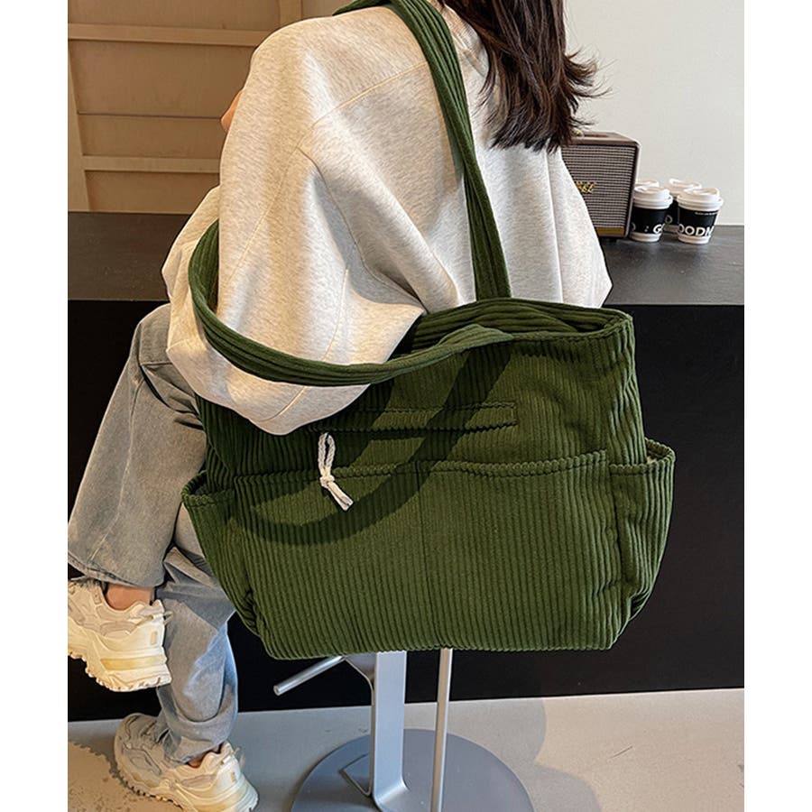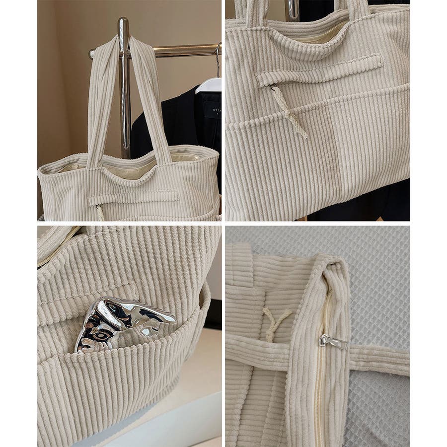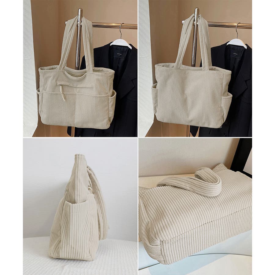 柔らかなコーデュロイ素材で仕上げた、大容量のトートバッグ。