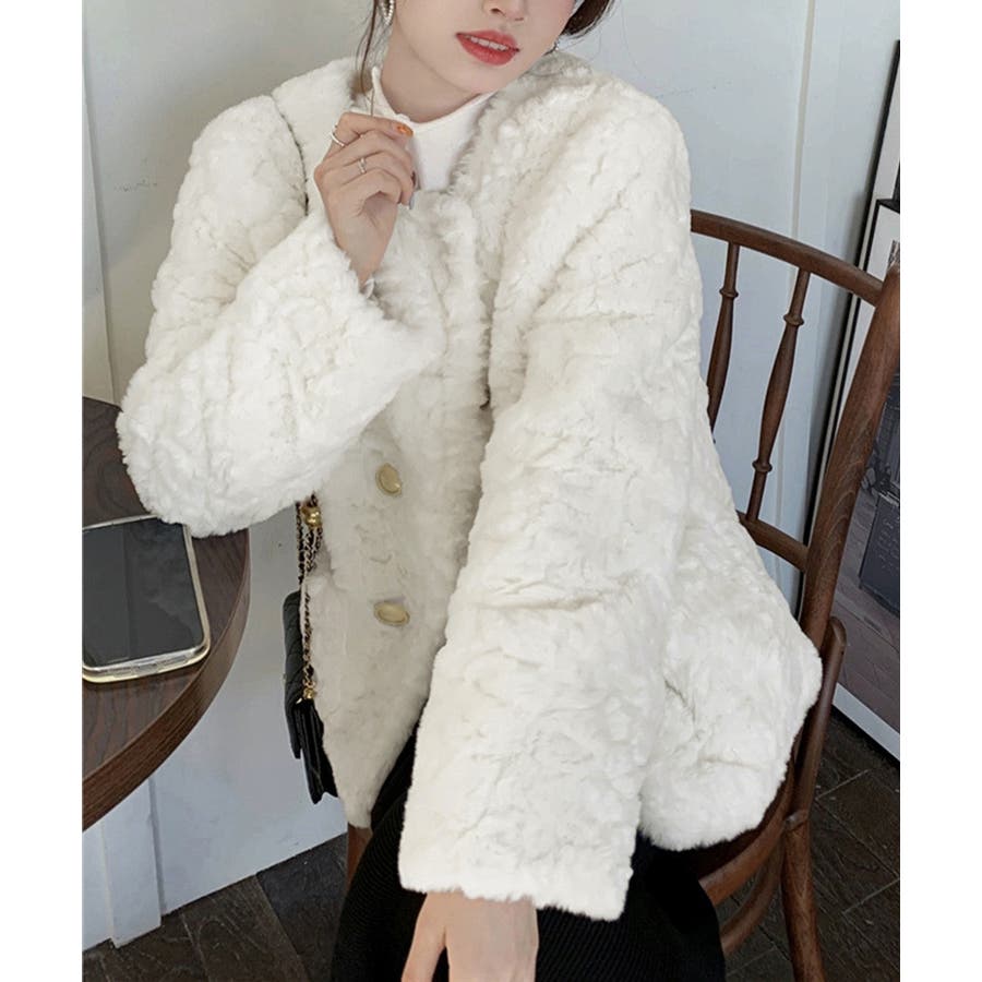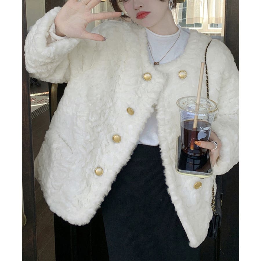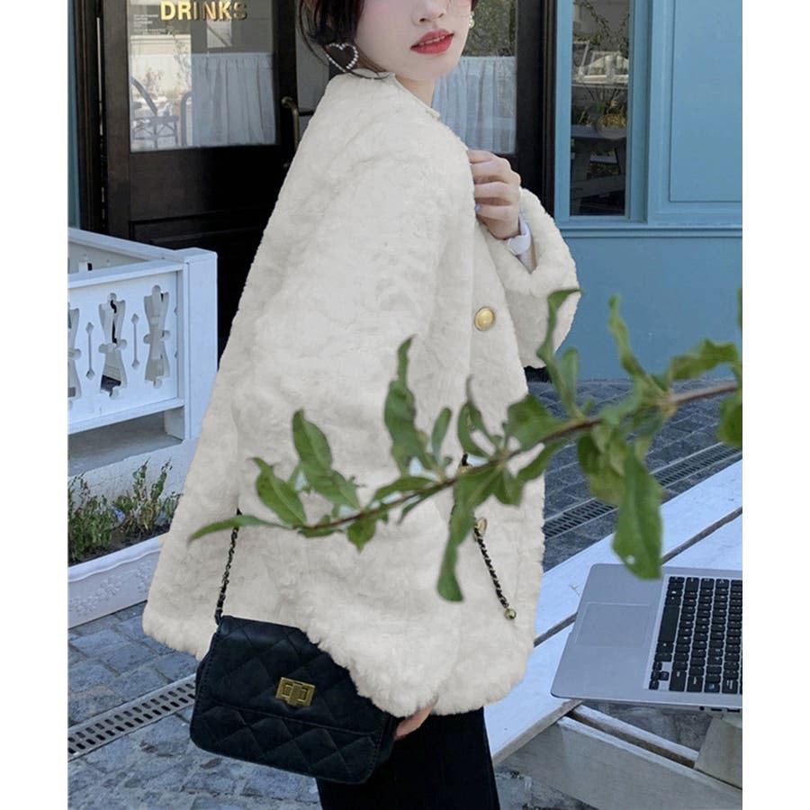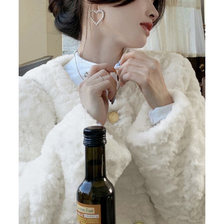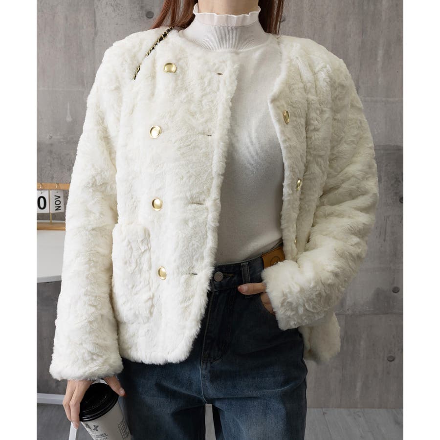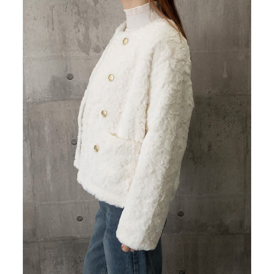 ふわふわアウター冬 ノーカラーゆったり エコファーブルゾン