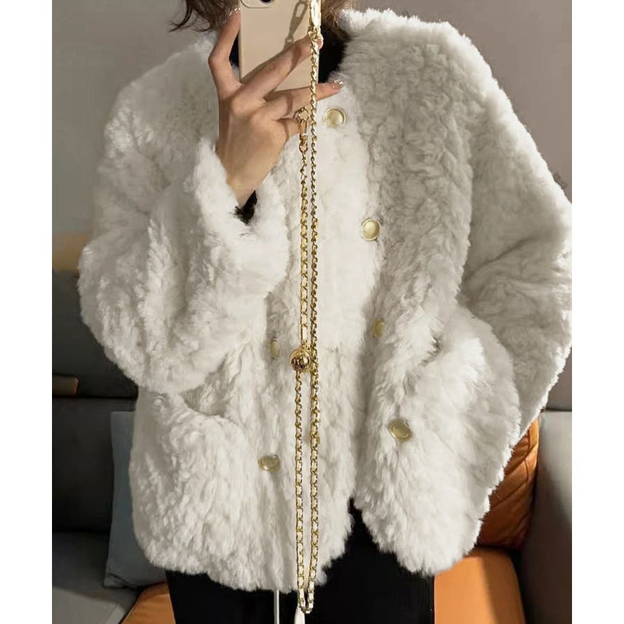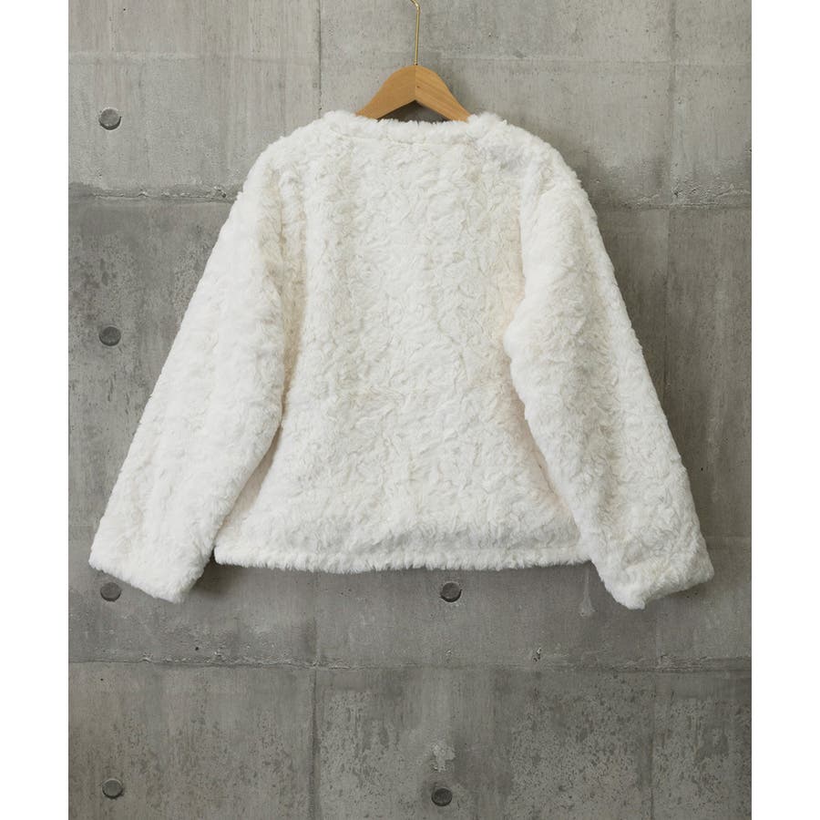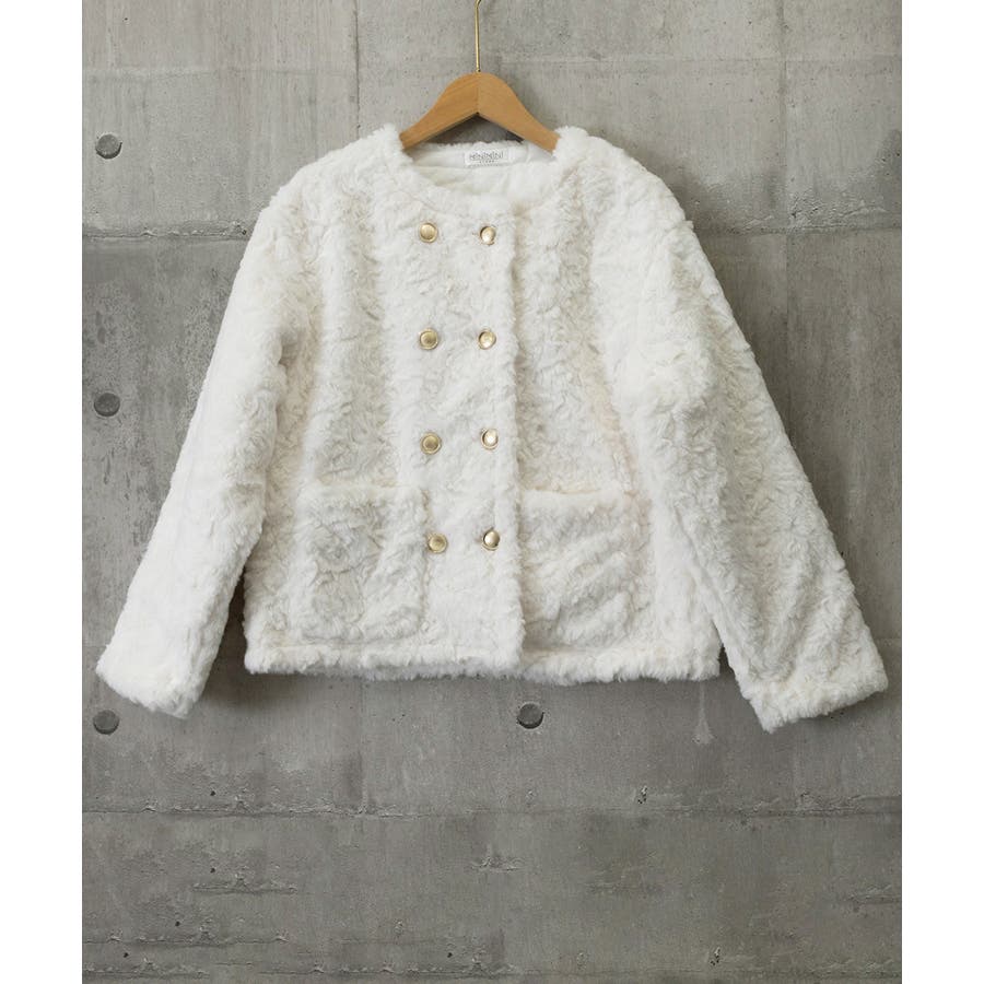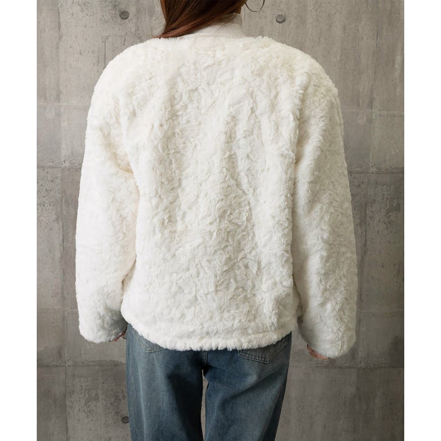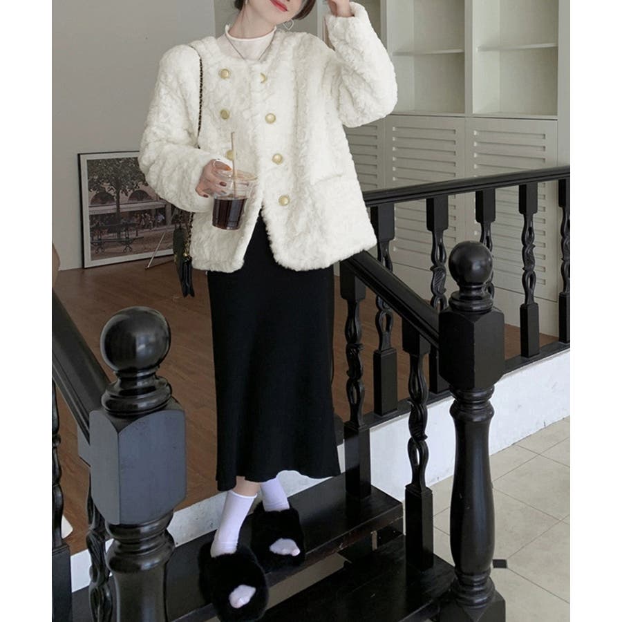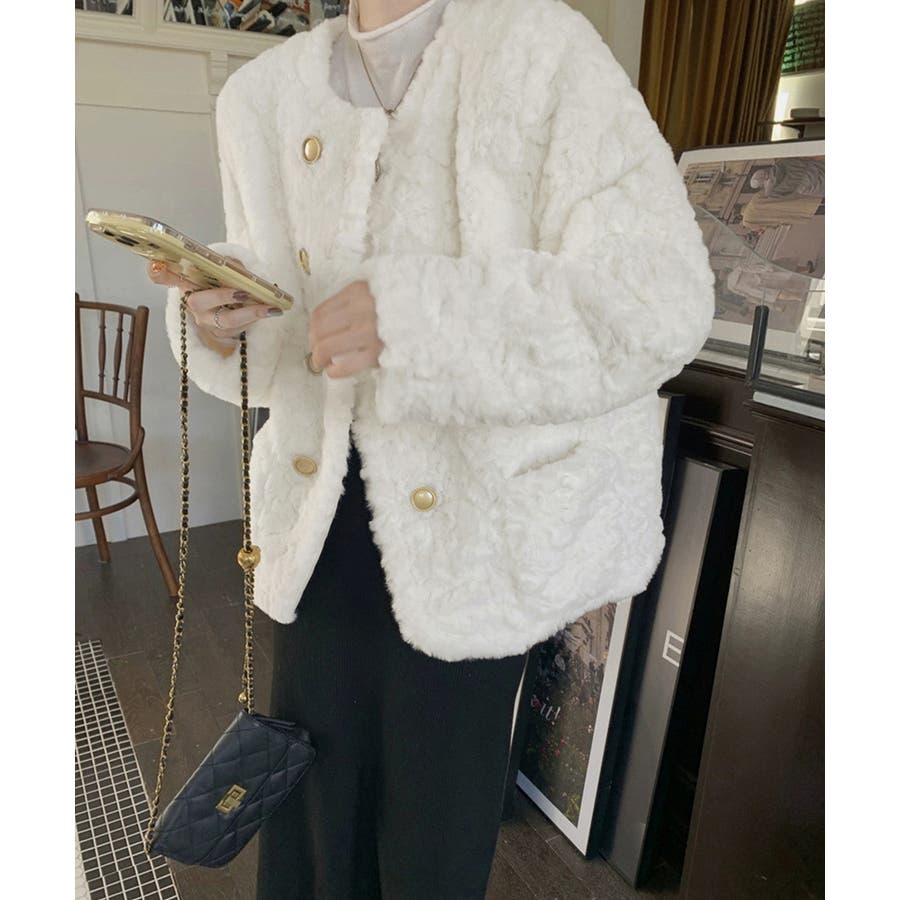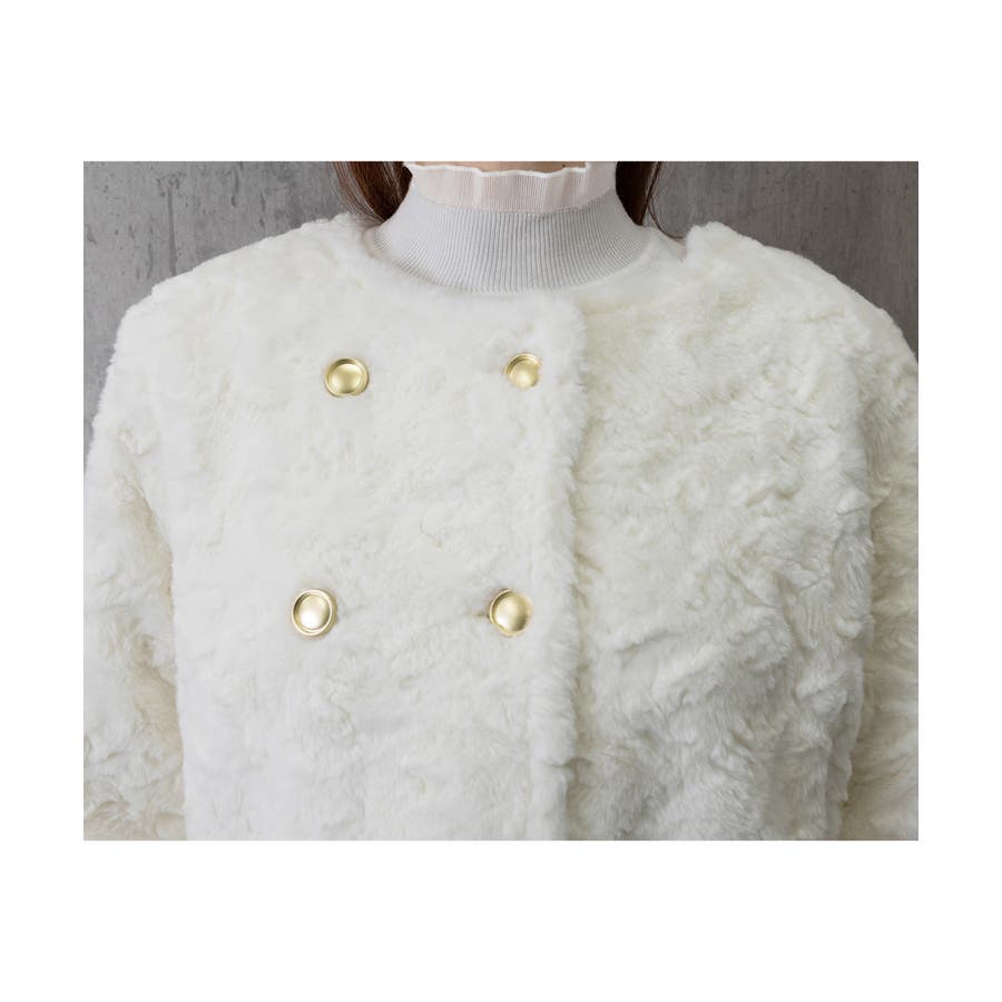 ふわふわアウター冬 ノーカラーゆったり エコファーブルゾン