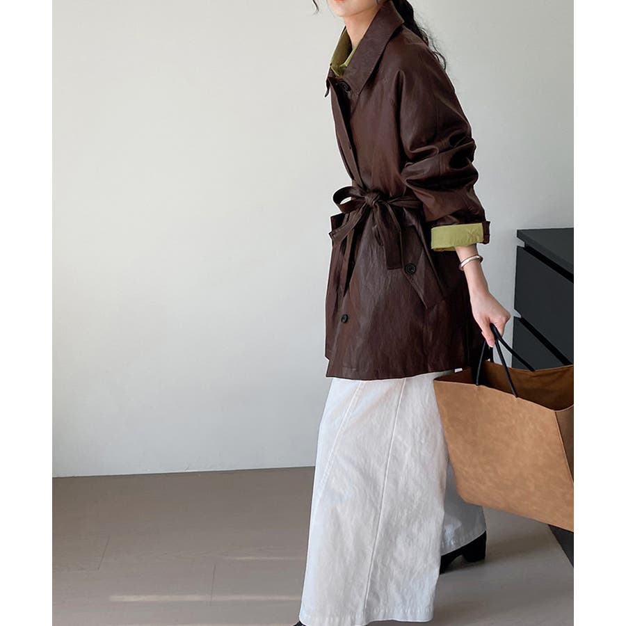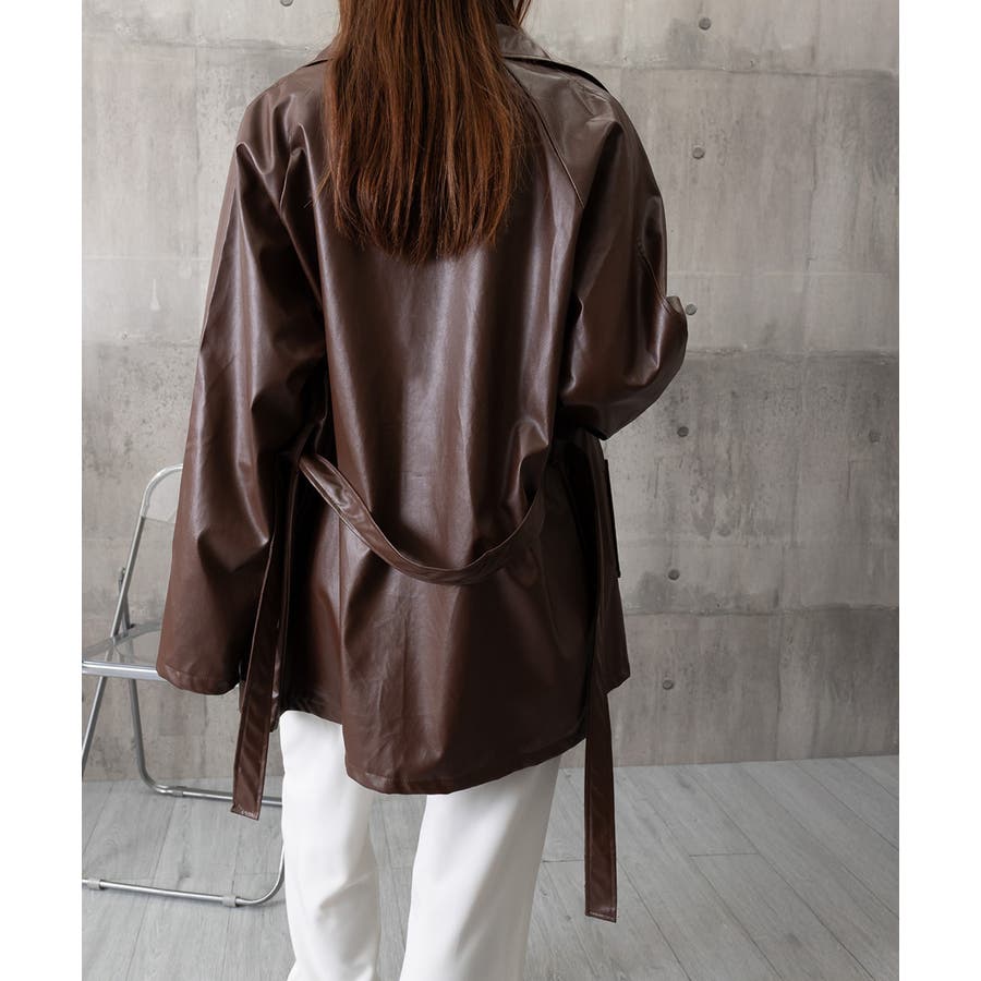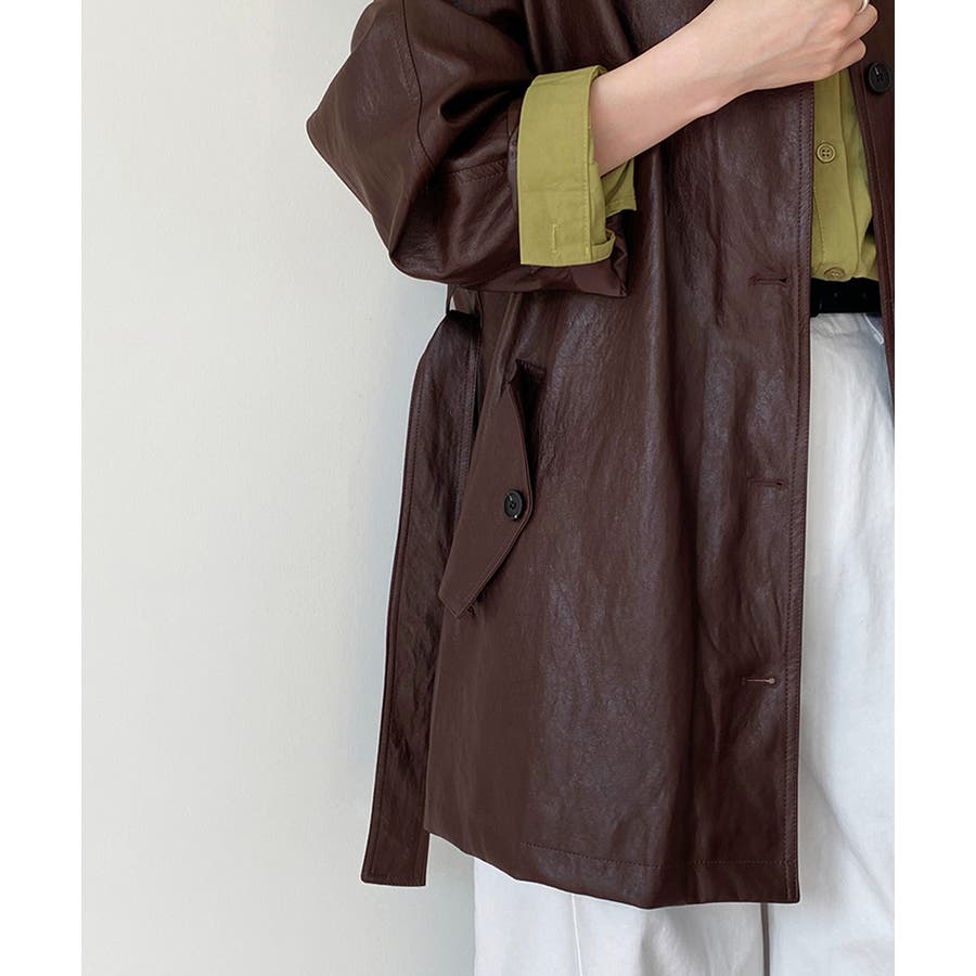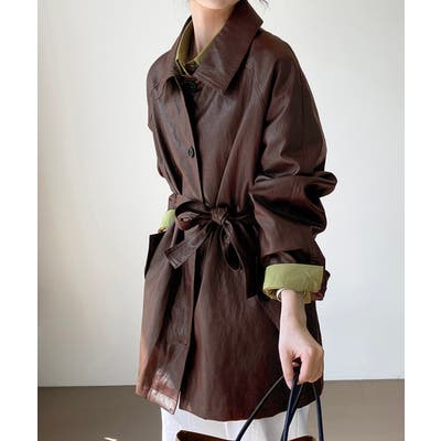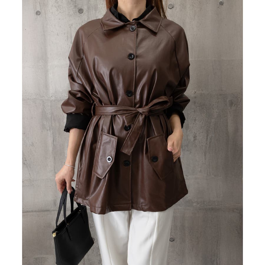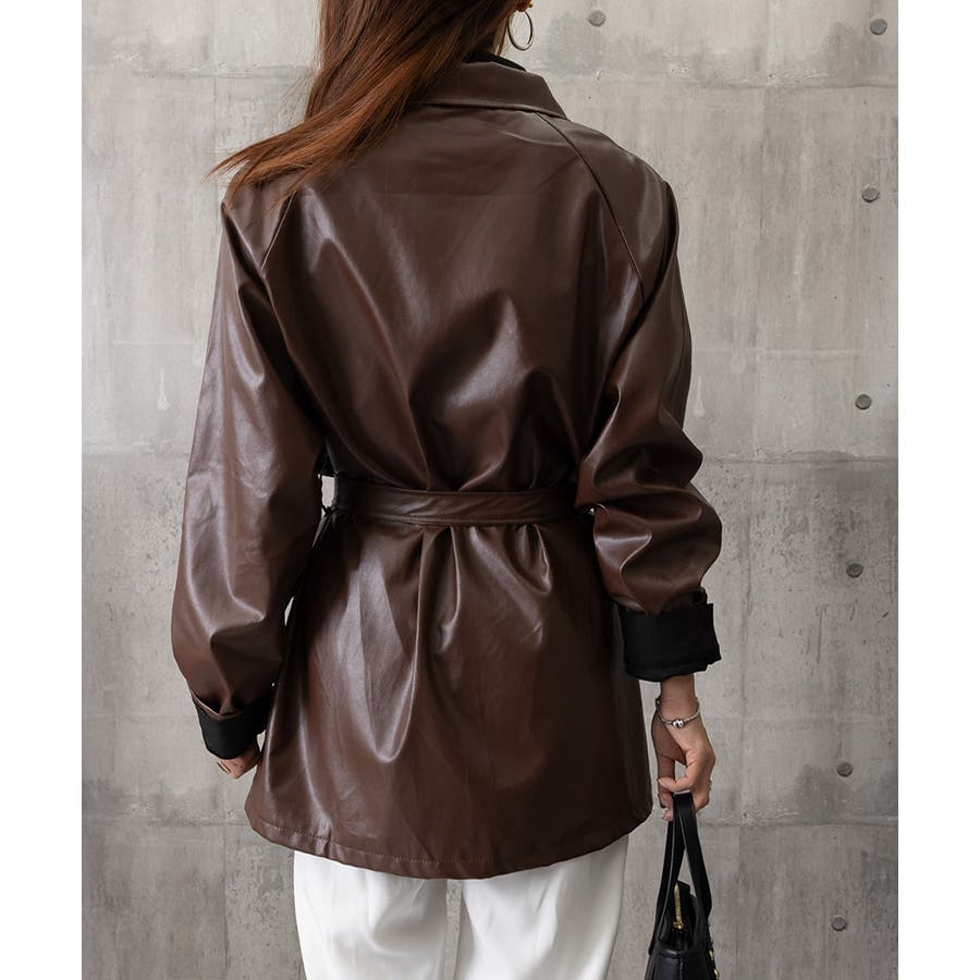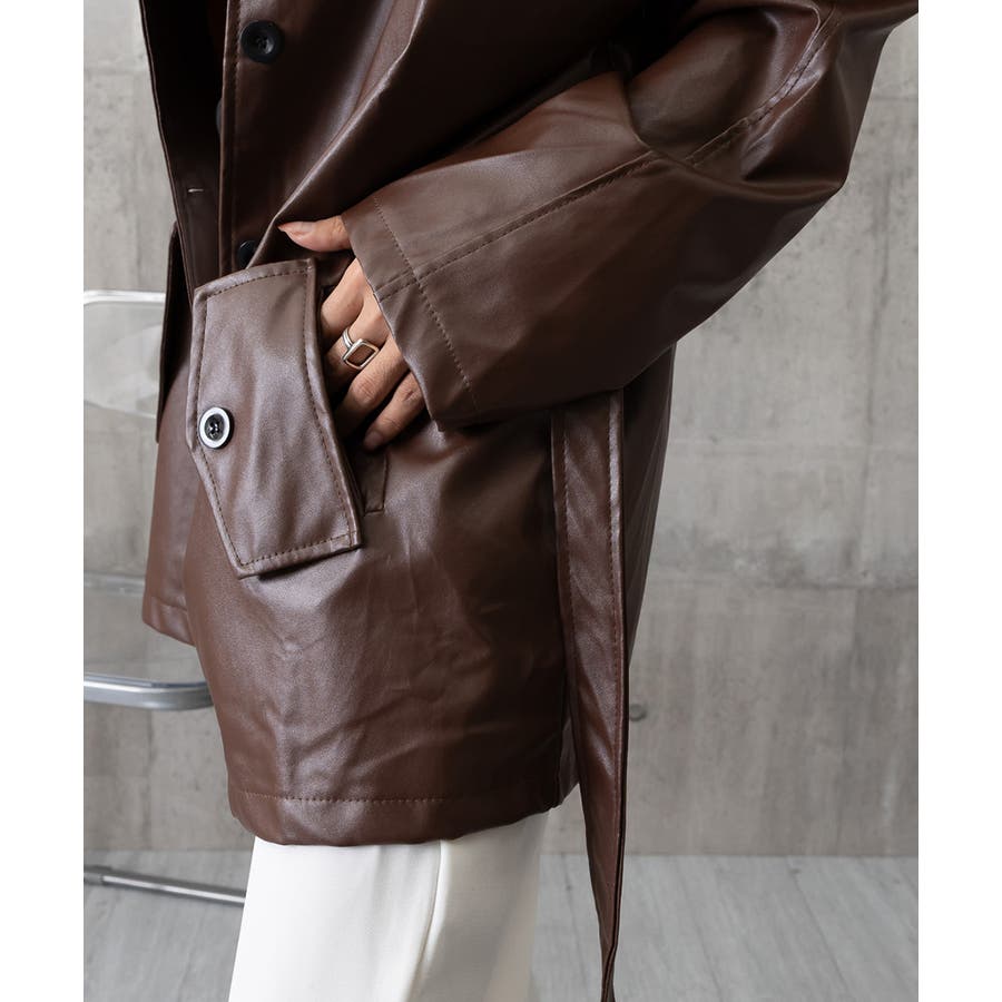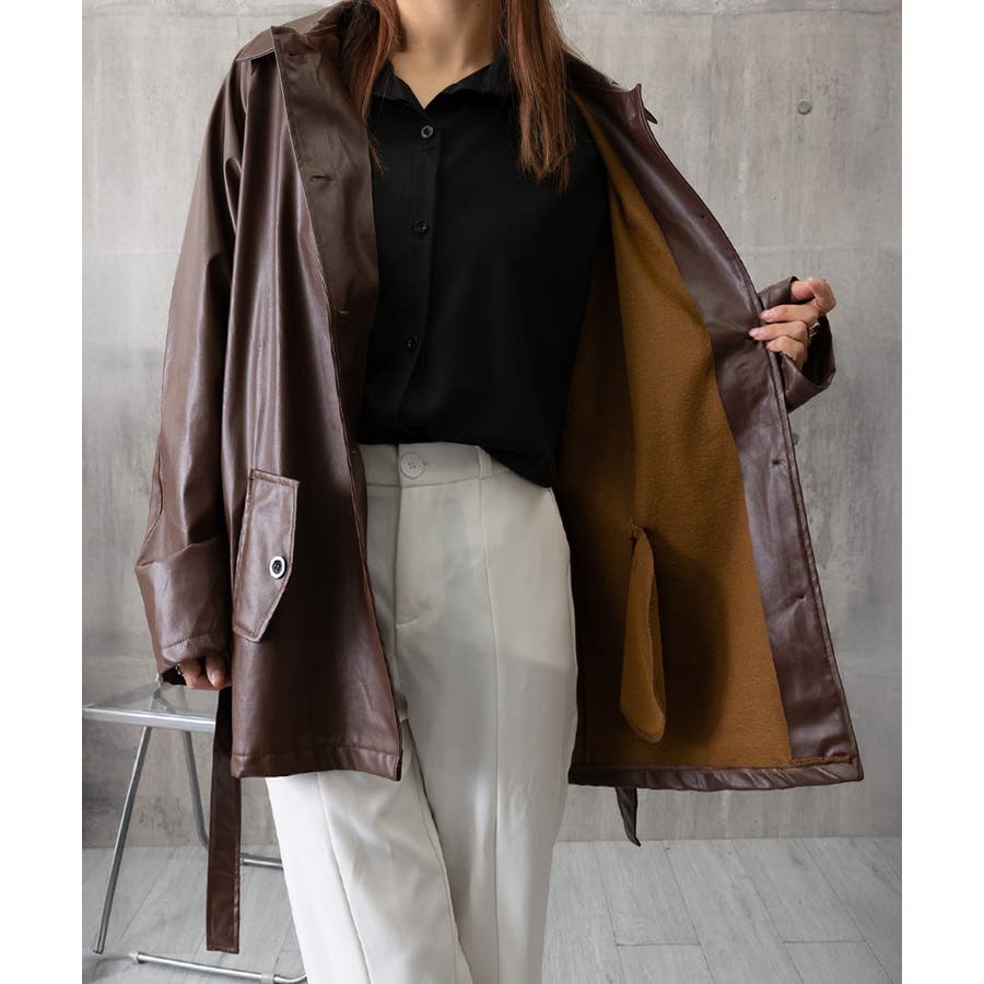 上質なフェイクレザーを使用したロングトレンチジャケット。