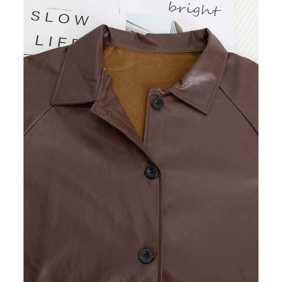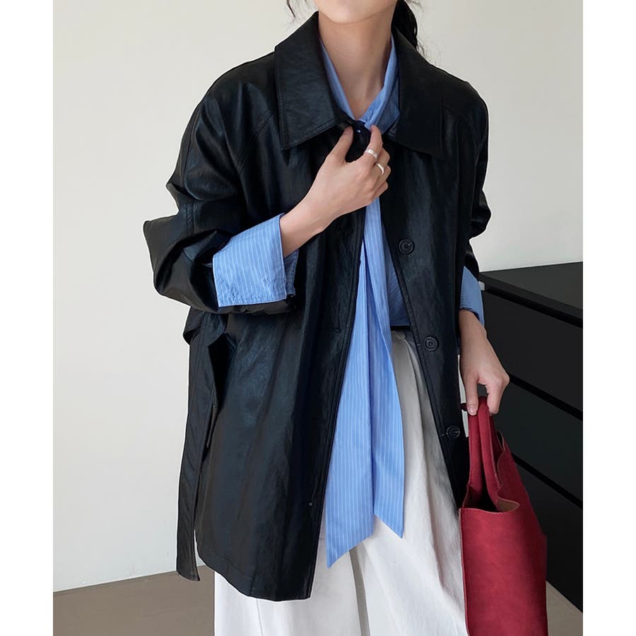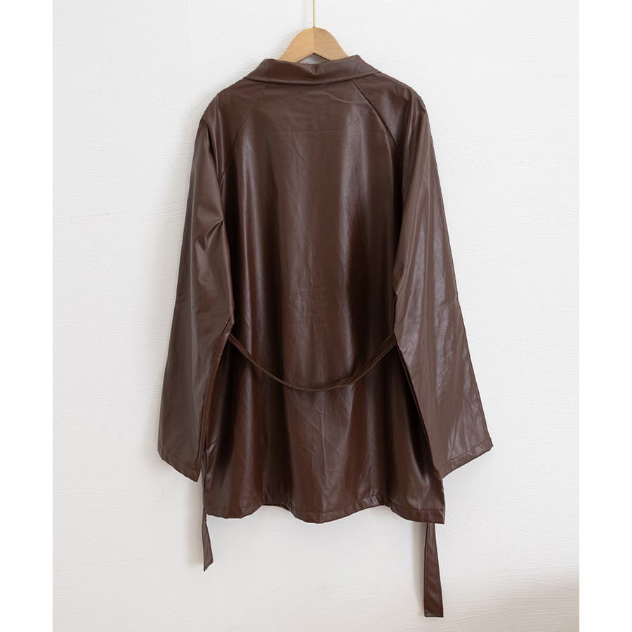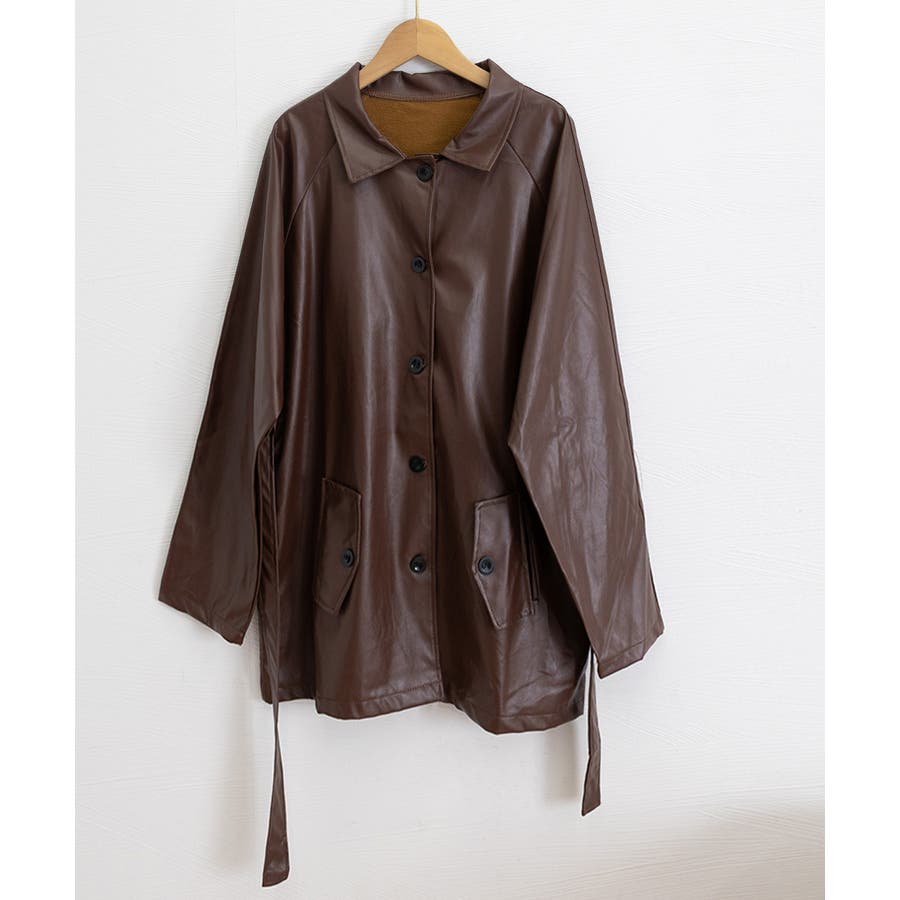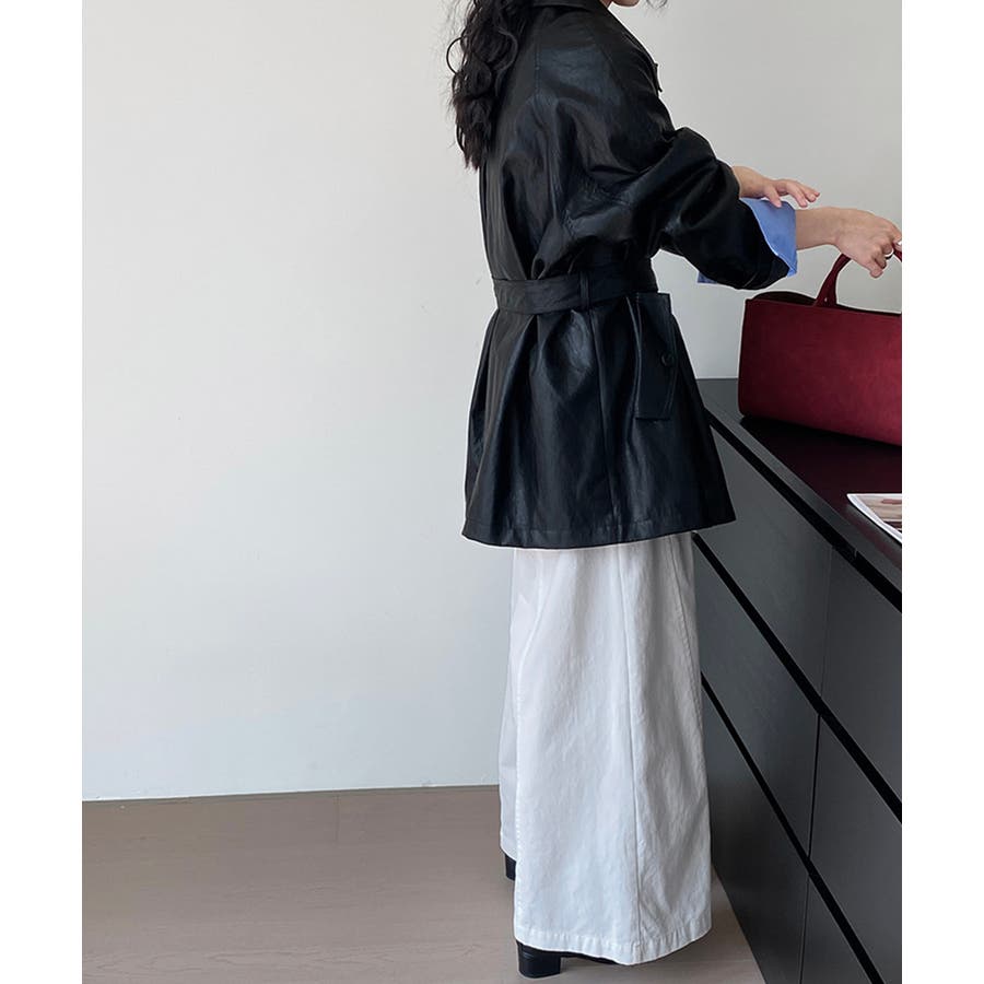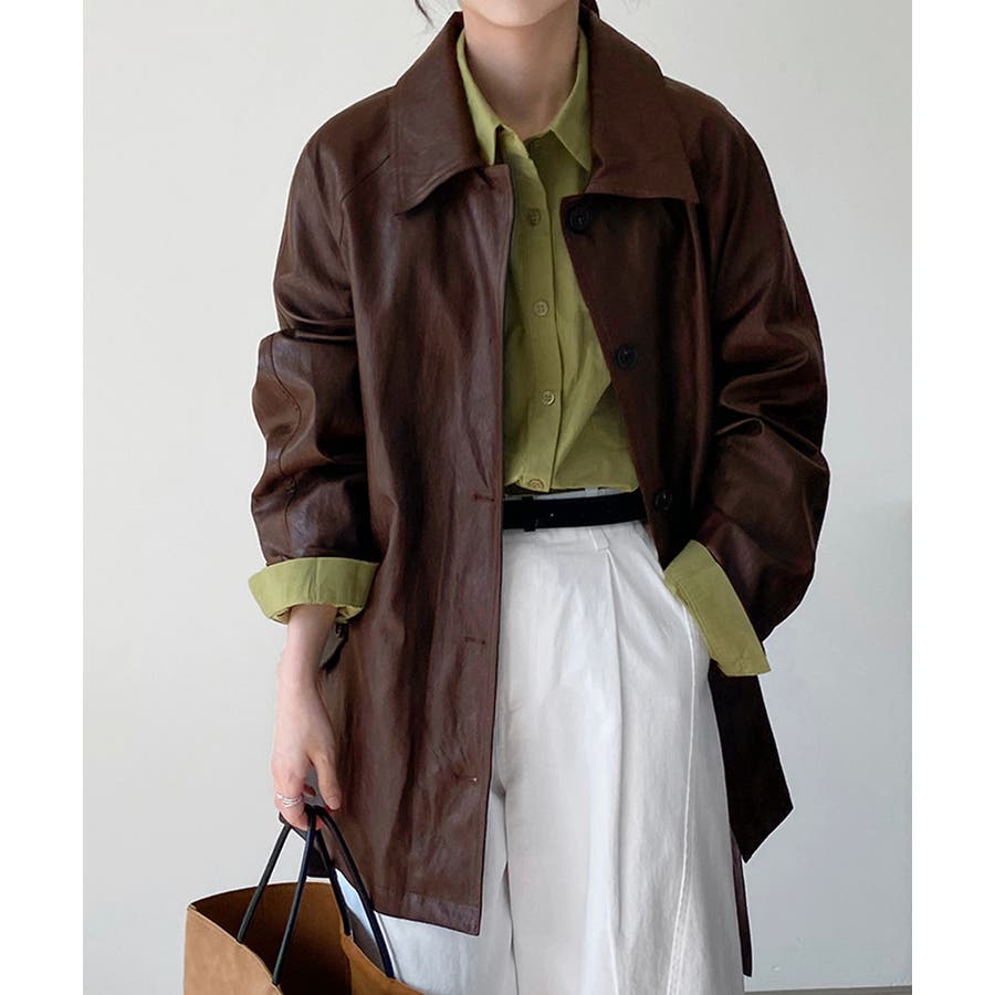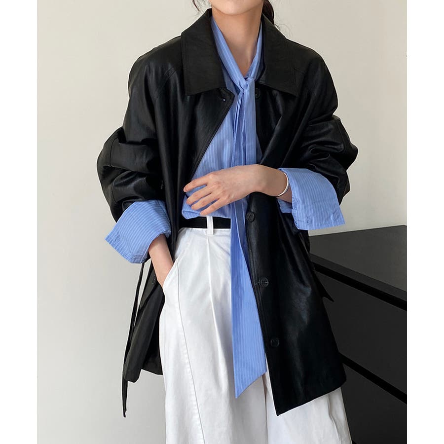 上質なフェイクレザーを使用したロングトレンチジャケット。