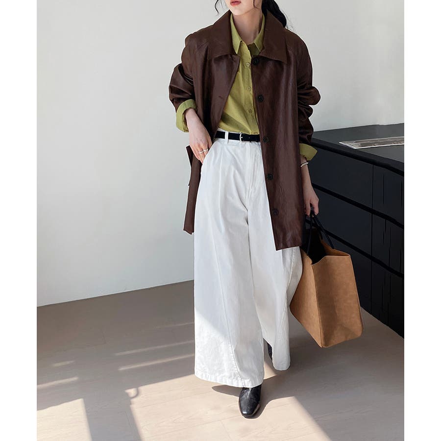 シャツやニットの上からさらっと羽織るだけで、モードにもカジュアルにも映える。