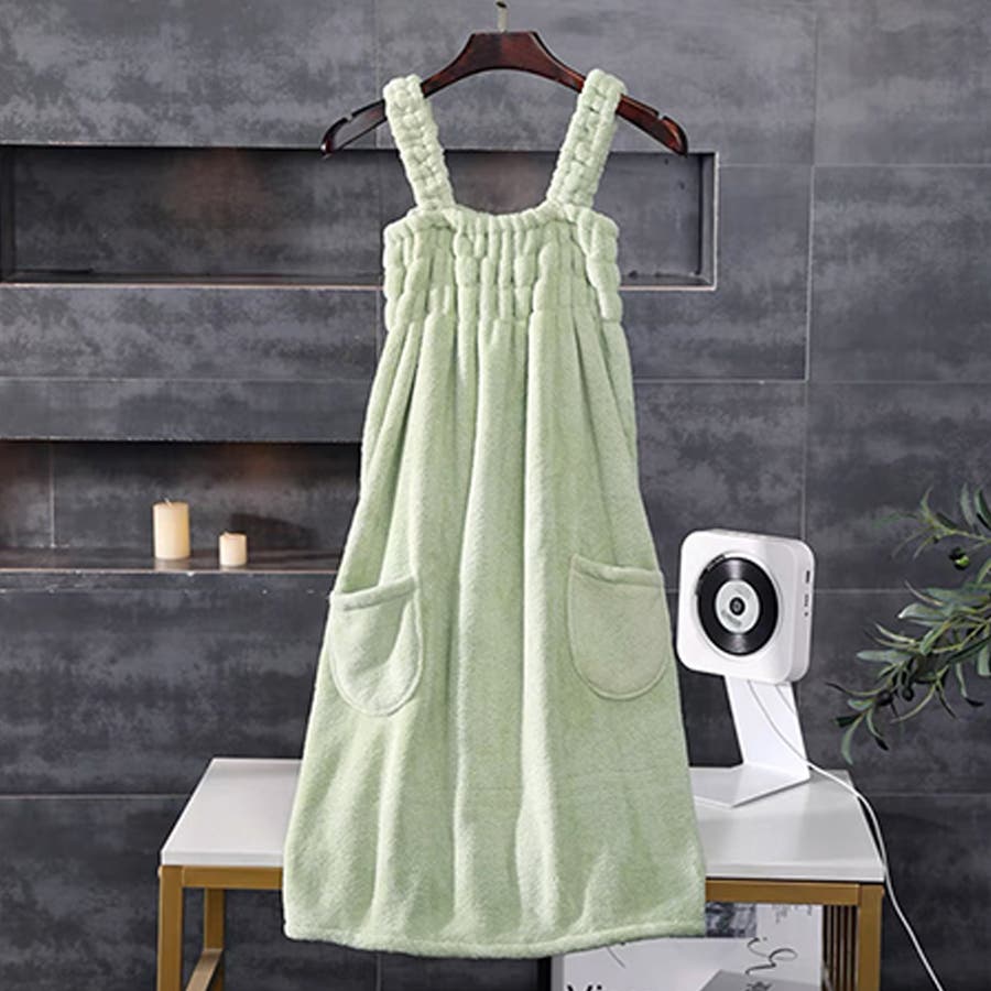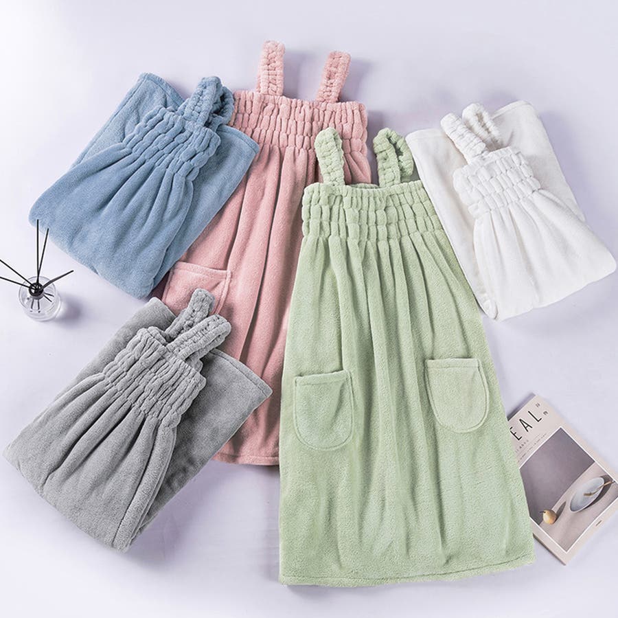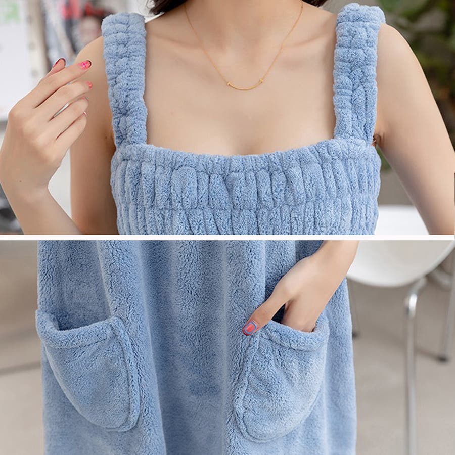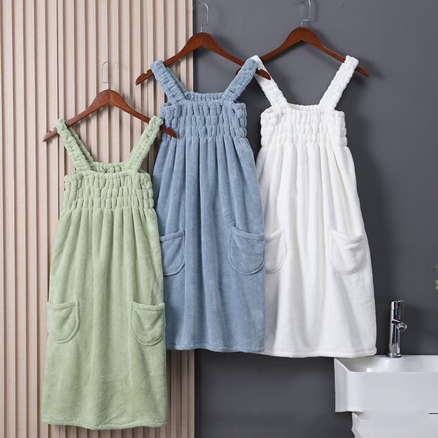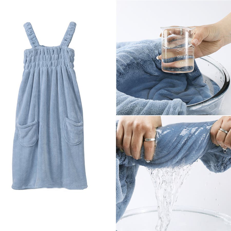 さらっと着るだけで体について水分をしっかり吸収するワンピースタイプのバスタオル