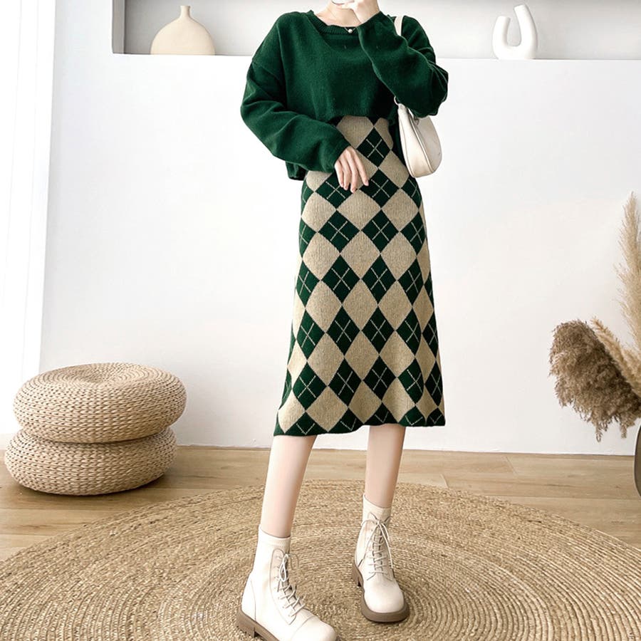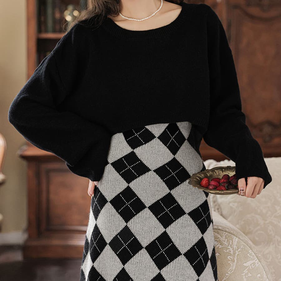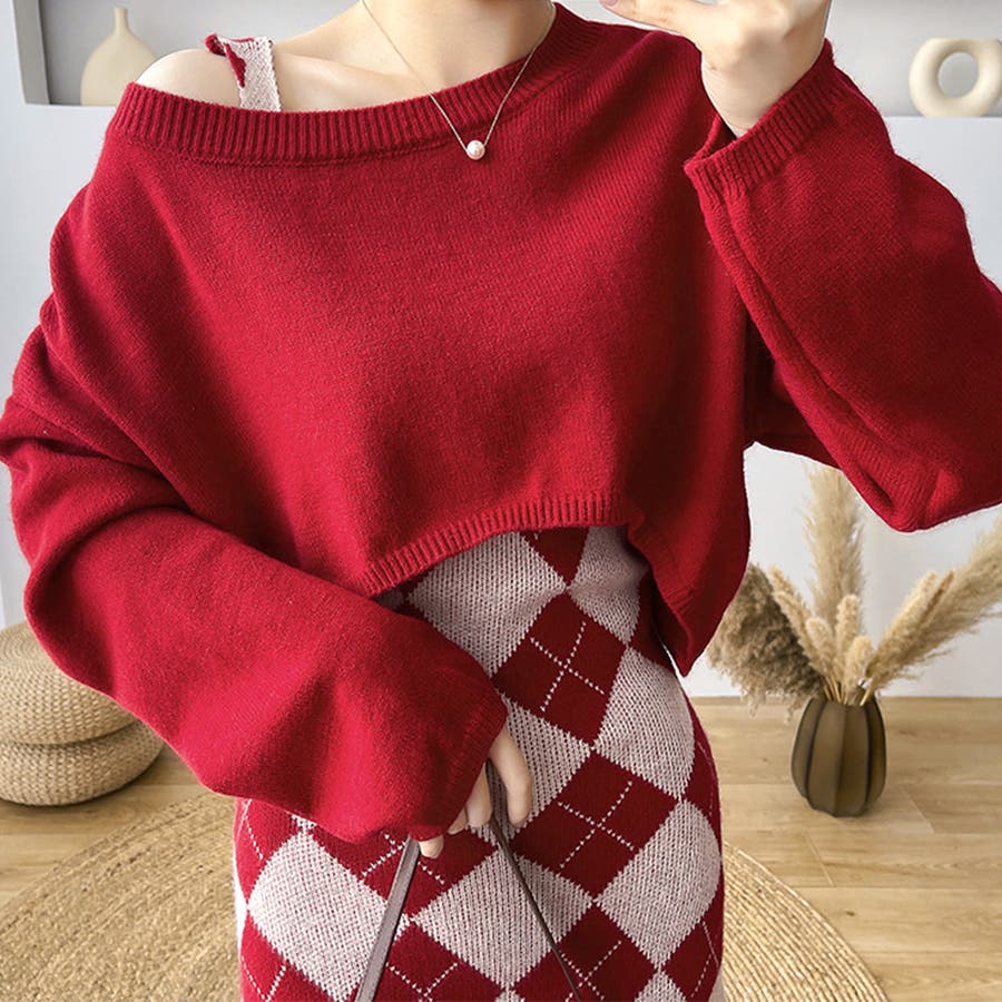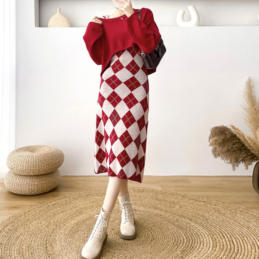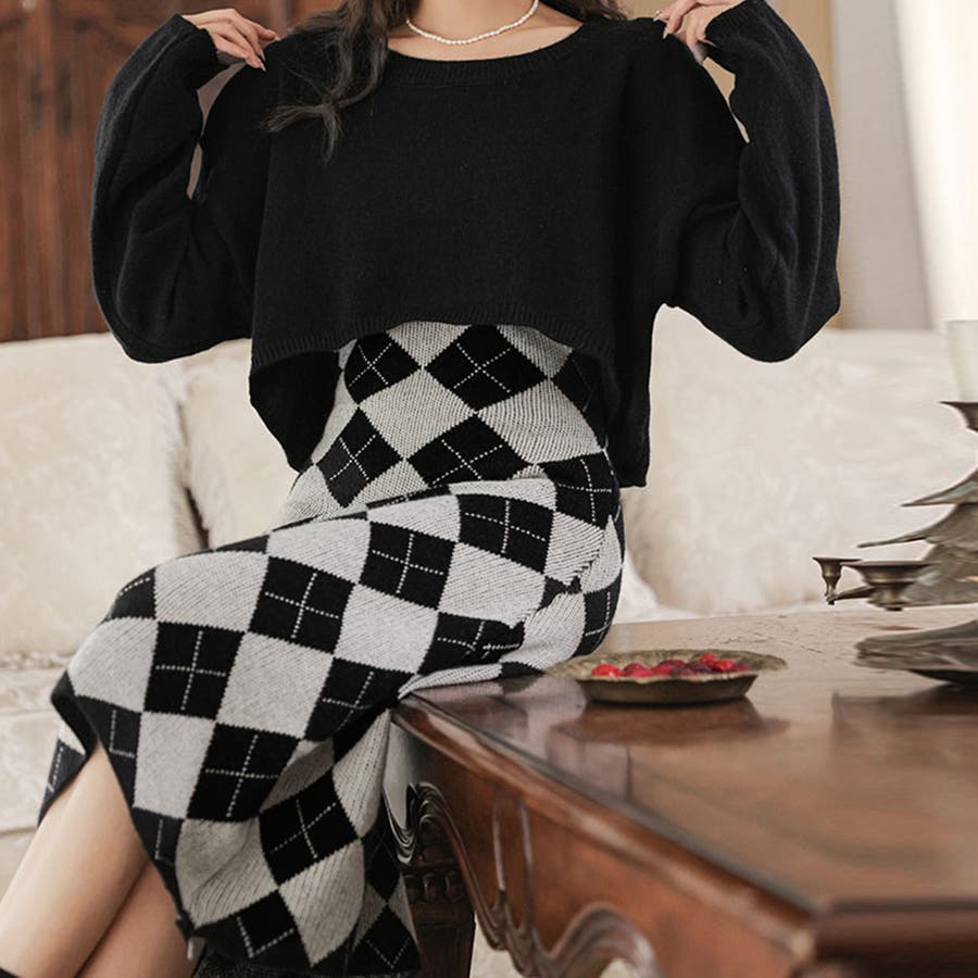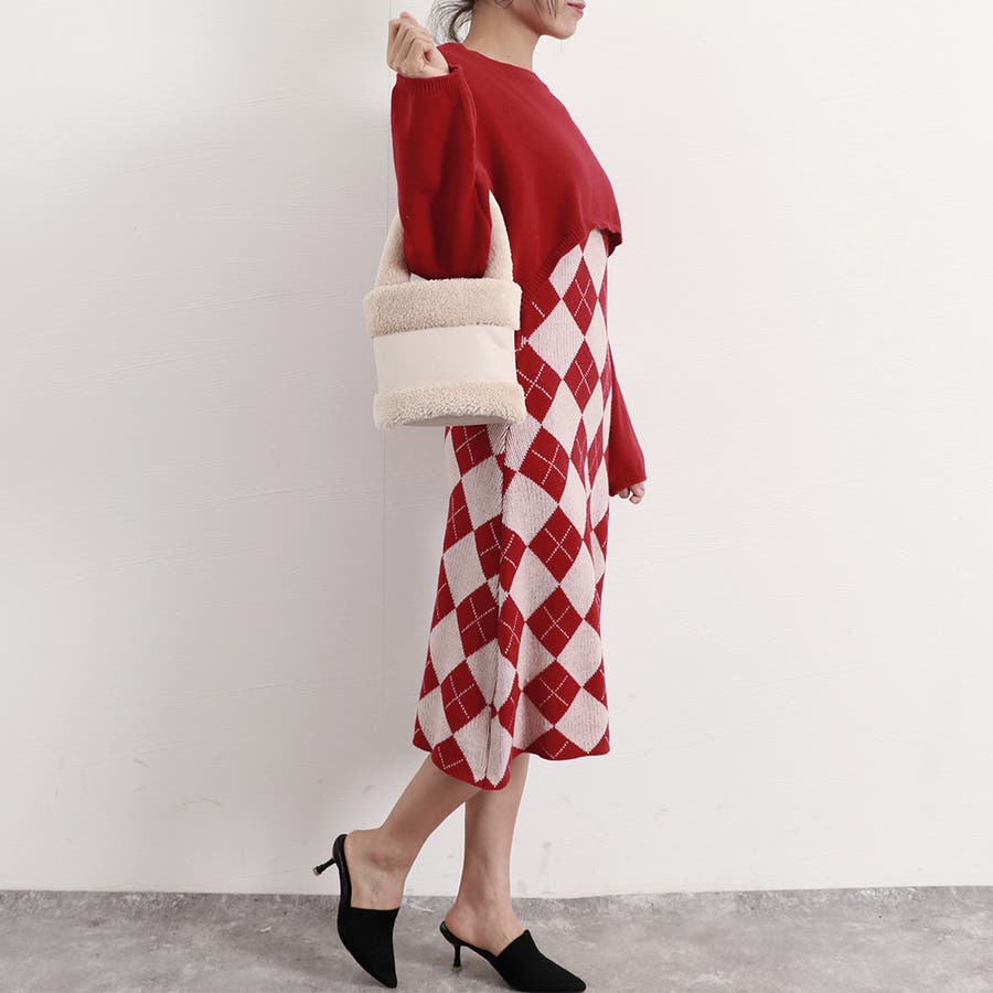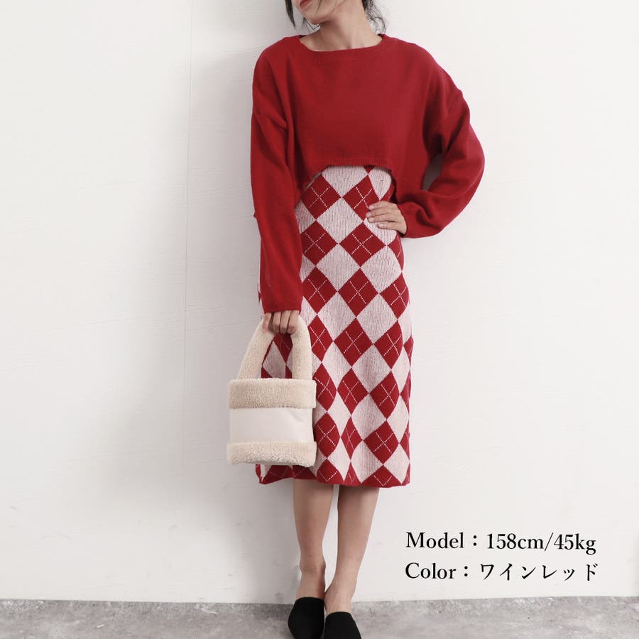 カジュアルでもフェミニンでも着こなせるニットワンピースセットアップ
