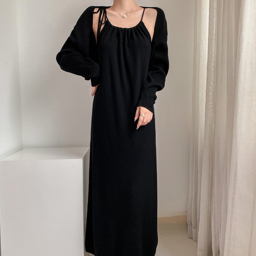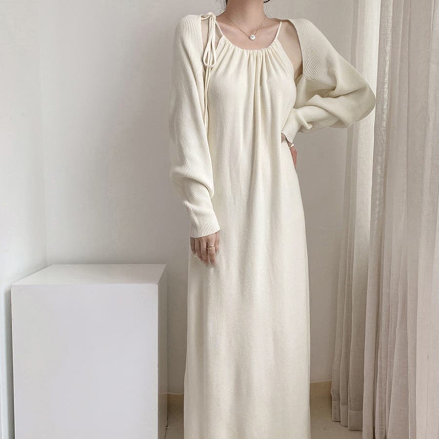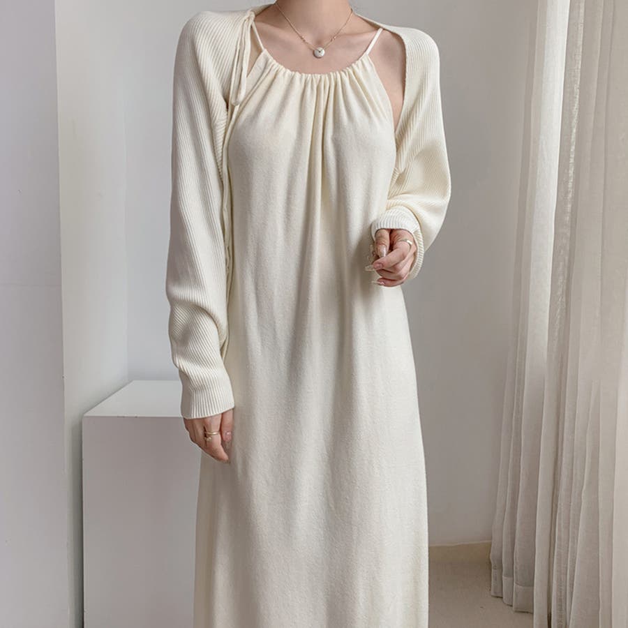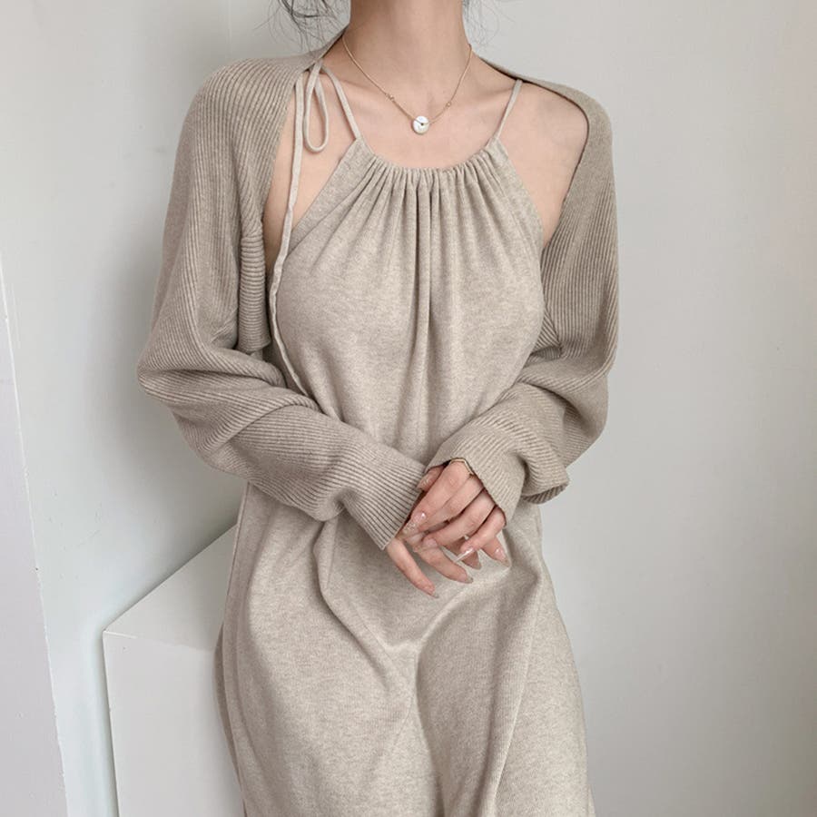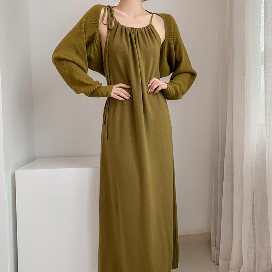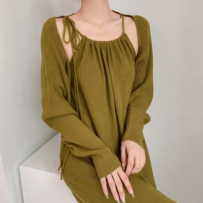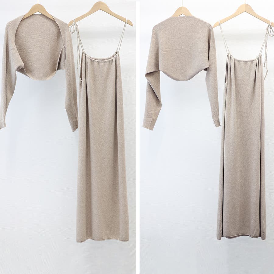 セクシーなニットワンピース+ショートカーディガンの2点セットアップ