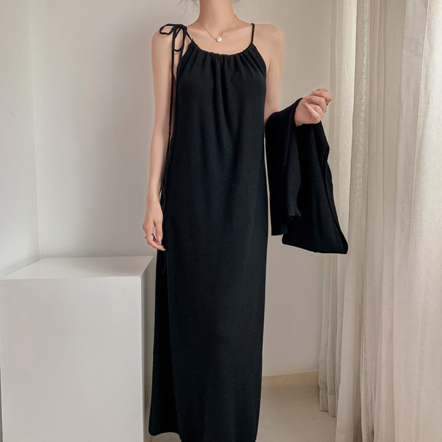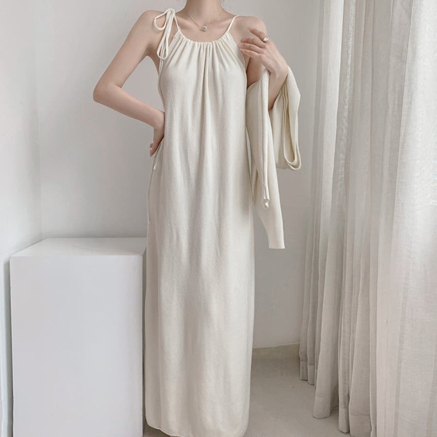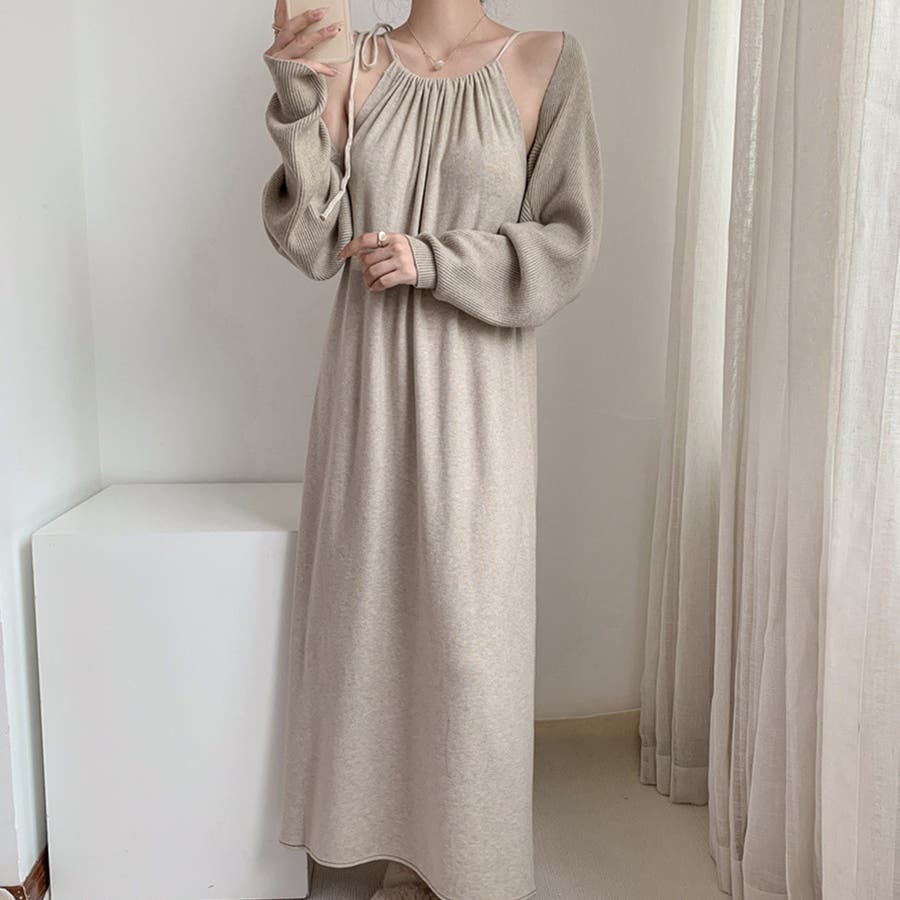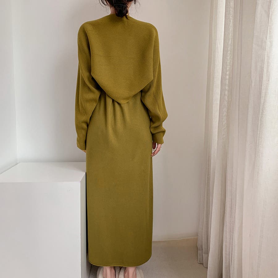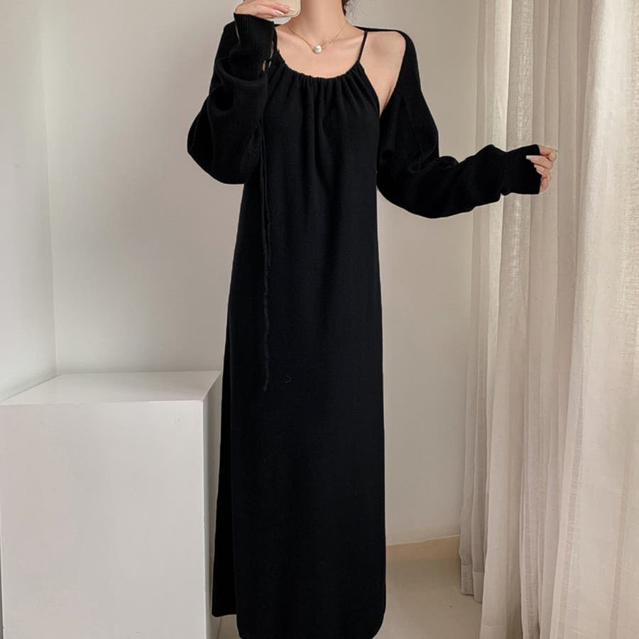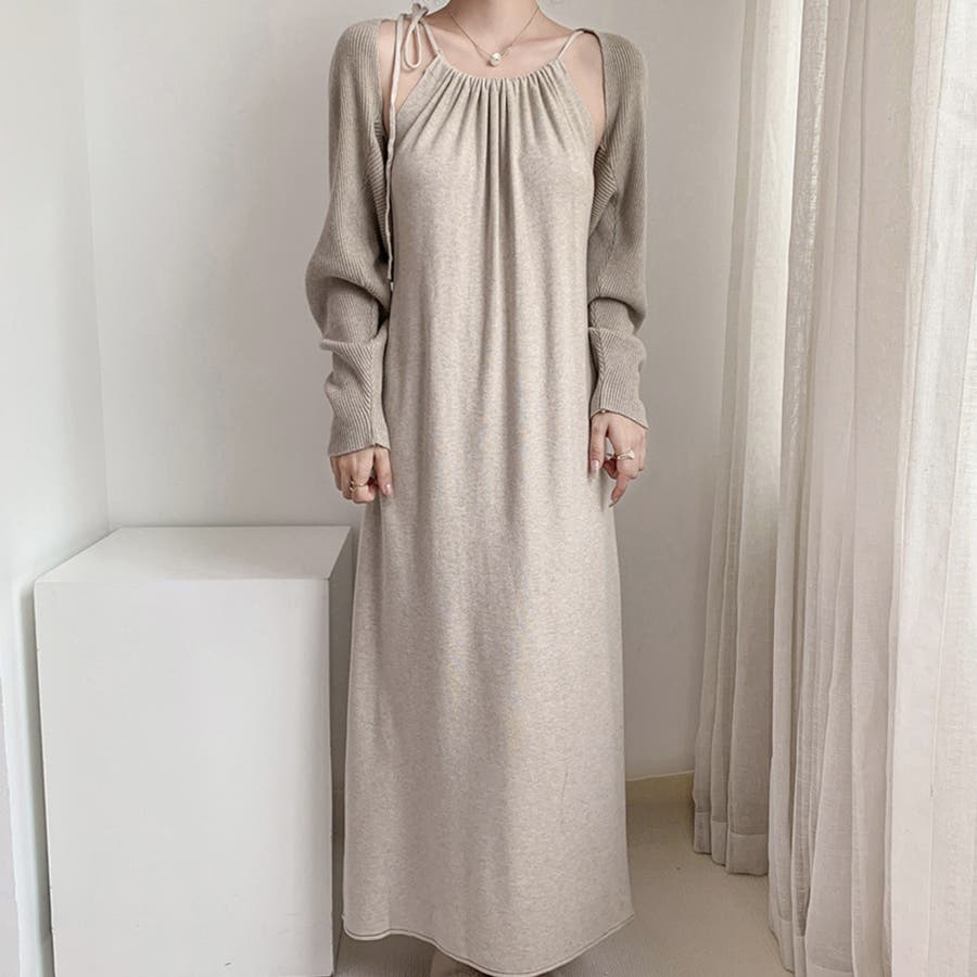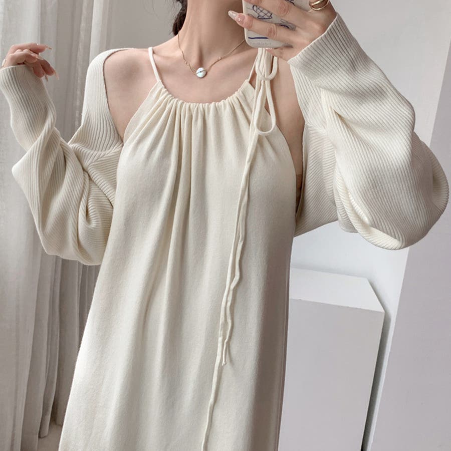 セクシーなニットワンピース+ショートカーディガンの2点セットアップ