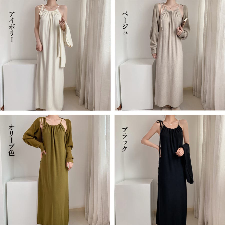 きれいめワンピ韓国 ニットワンピお洒落 クロップド丈ボレロ
