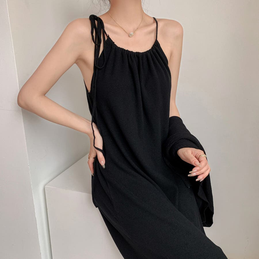 ホルターネックデザインでデコルテが見え女性らしいムード