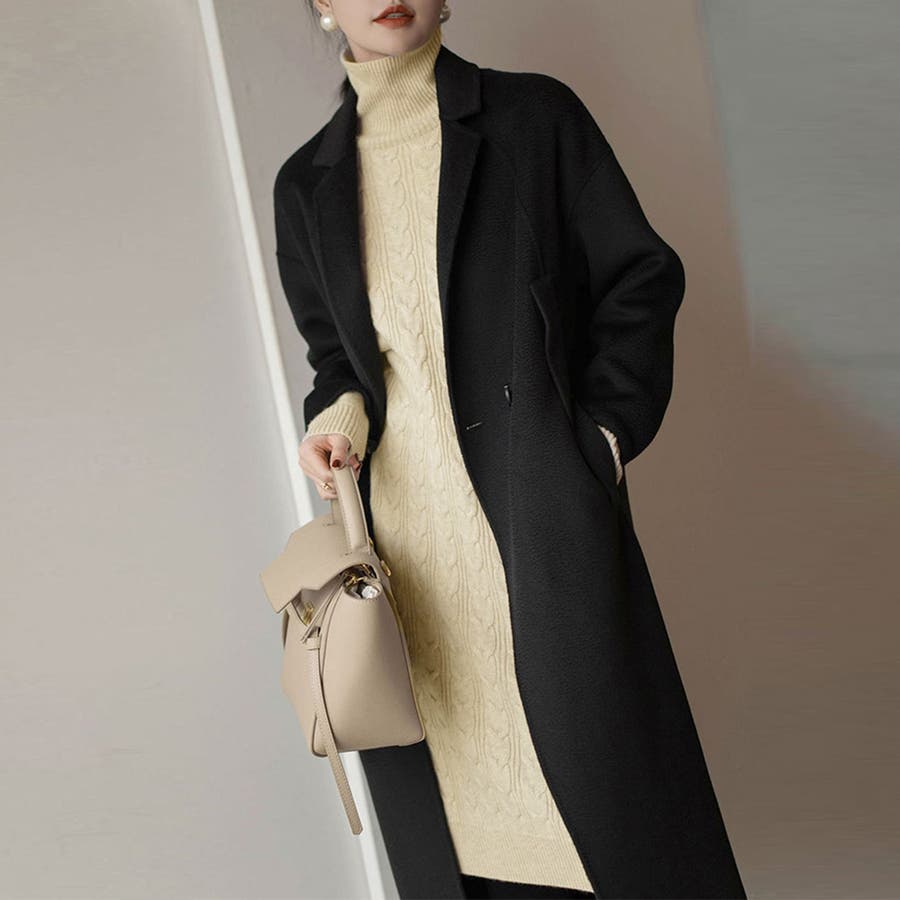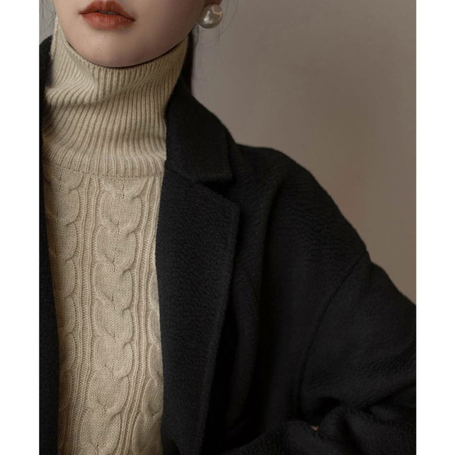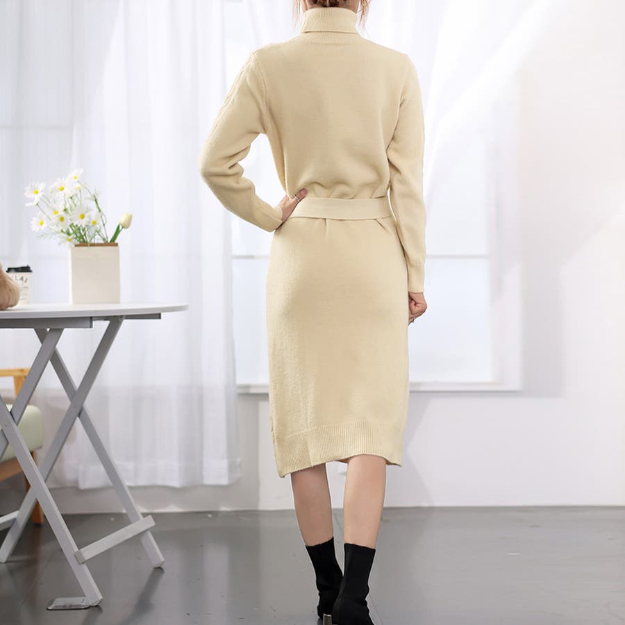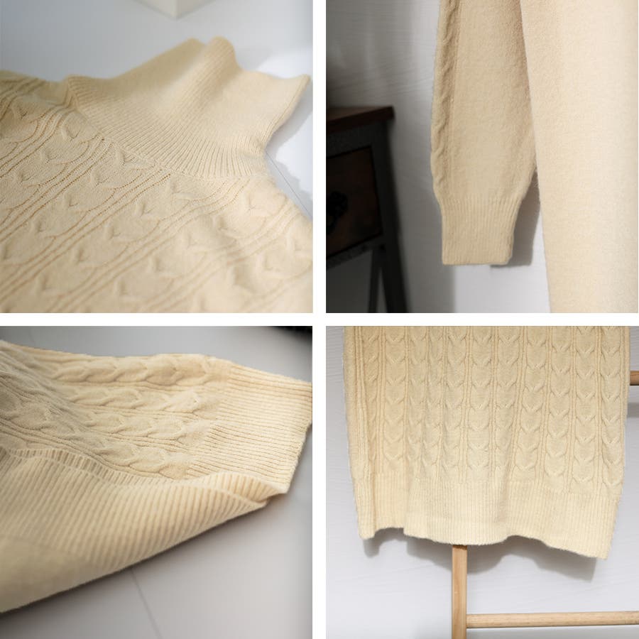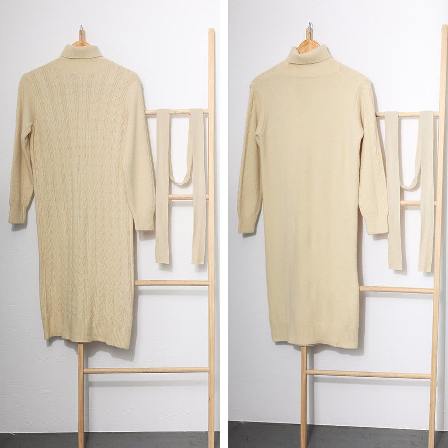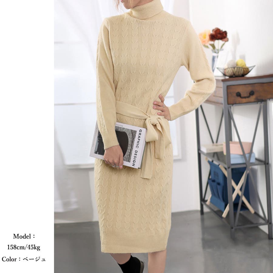 1枚で楽ちん&お洒落、フロントケーブル編みが大人可愛い韓国新作DESIGNのタートルネックニットワンピース